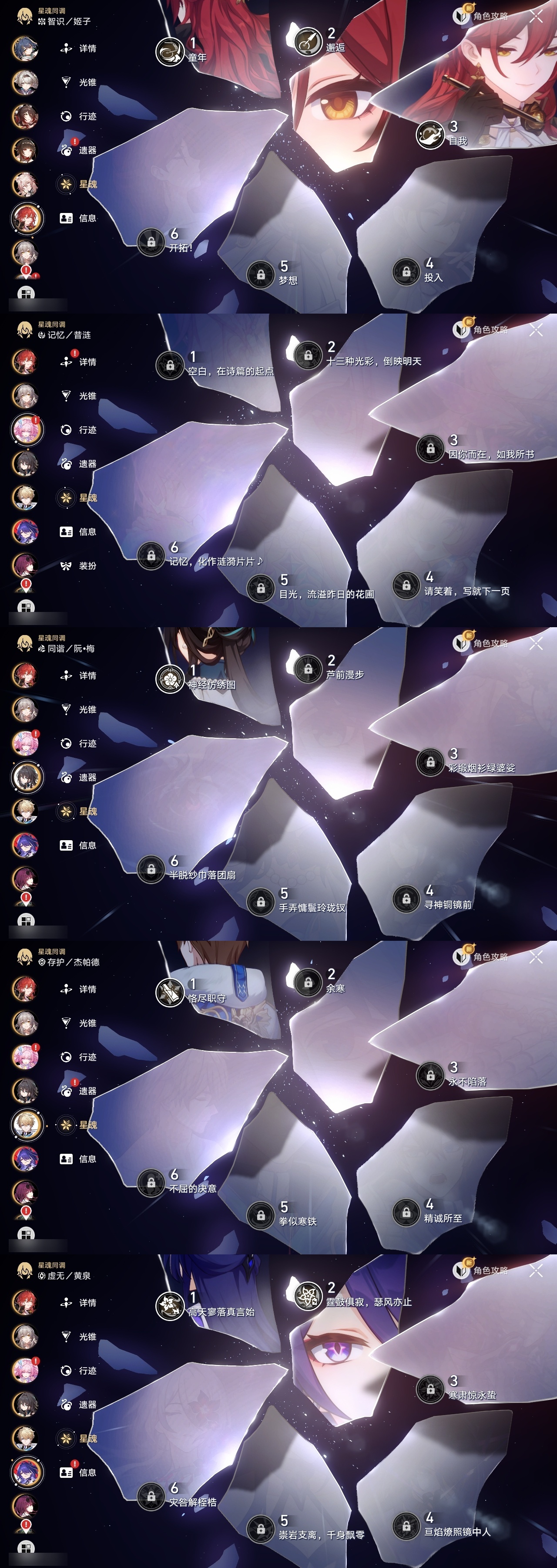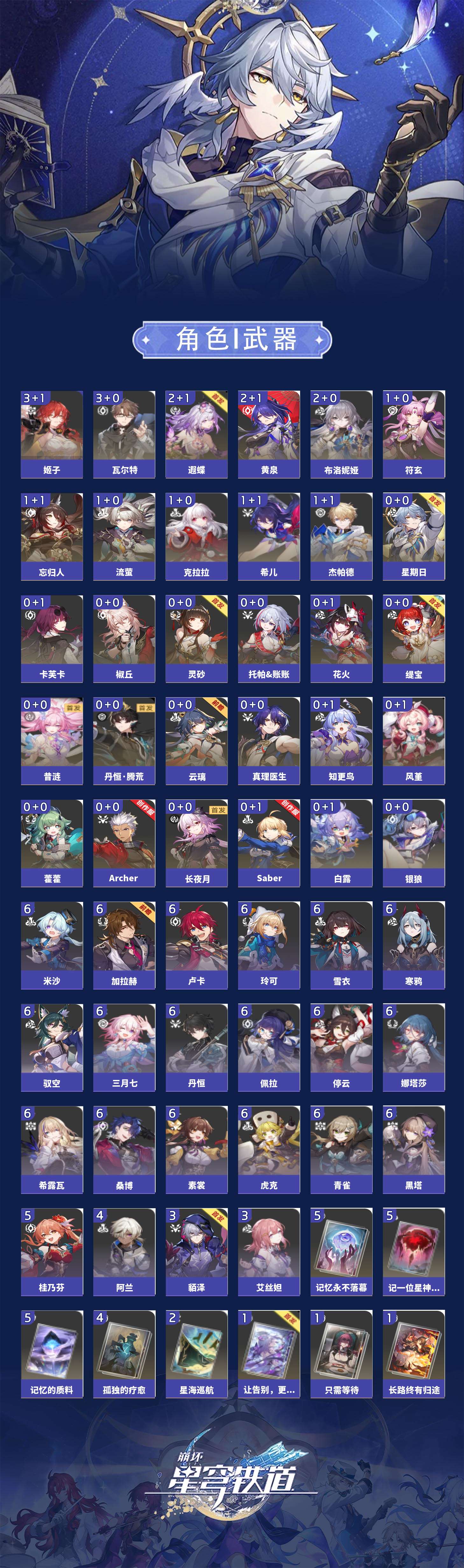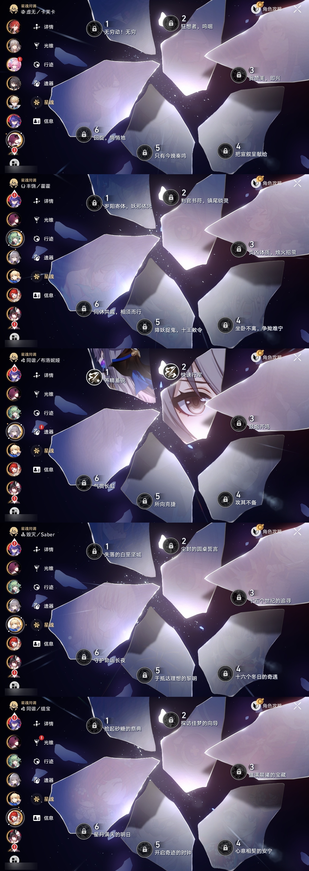 【崩坏·星穹铁道】【lyxq9806】冒险等级:70,女主,五星数量:51,五星角色:姬子 3命瓦尔特 3命布洛妮娅 2命遐蝶 2命黄泉 2命希儿 1命杰帕德 1命克拉拉 1命忘归人 1命符玄 1命流萤 1命云璃椒丘银狼白露灵砂星期日缇宝卡芙卡托帕账账藿藿真理医生花火风堇知更鸟saberarcher长夜月丹恒·腾荒昔涟__五星光锥:记忆的质料 5精记一位星神的陨落 5精记忆永不落幕 5精孤独的疗愈 4精星海巡航 2精制胜的瞬间银河铁道之夜时节不居如泥酣眠于夜色中长路终有归途将光阴织成黄金只需等待让告别,更美一些镜中故我游戏尘寰行于流逝的岸愿虹光永驻天空夜色流光溢彩没有回报的加冕勿忘她的火焰__四星角色:娜塔莎 6命虎克 6命黑塔 6命丹恒 6命希露瓦 6命停云 6命素裳 6命桑博 6命三月七 6命青雀 6命佩拉 6命驭空 6命卢卡 6命玲可 6命寒鸦 6命雪衣 6命米沙 6命加拉赫 6命桂乃芬 5命阿兰 4命貊泽 3命艾丝妲 3命二命遐蝶记忆战舰队 二命黄泉队伍
