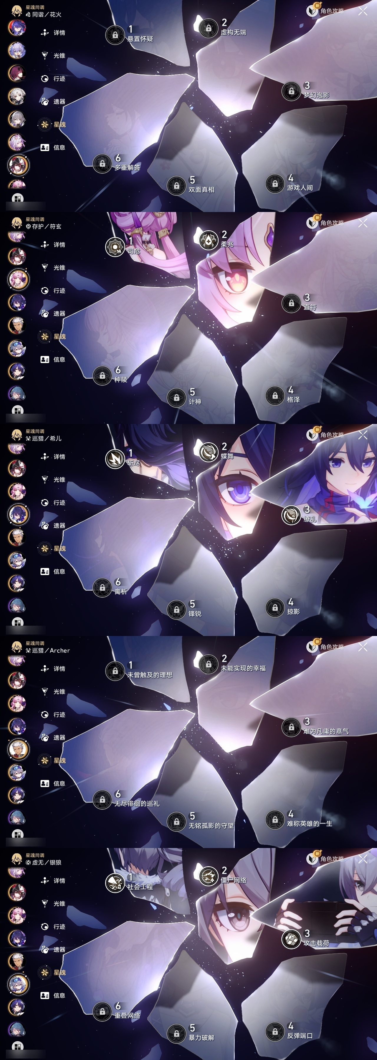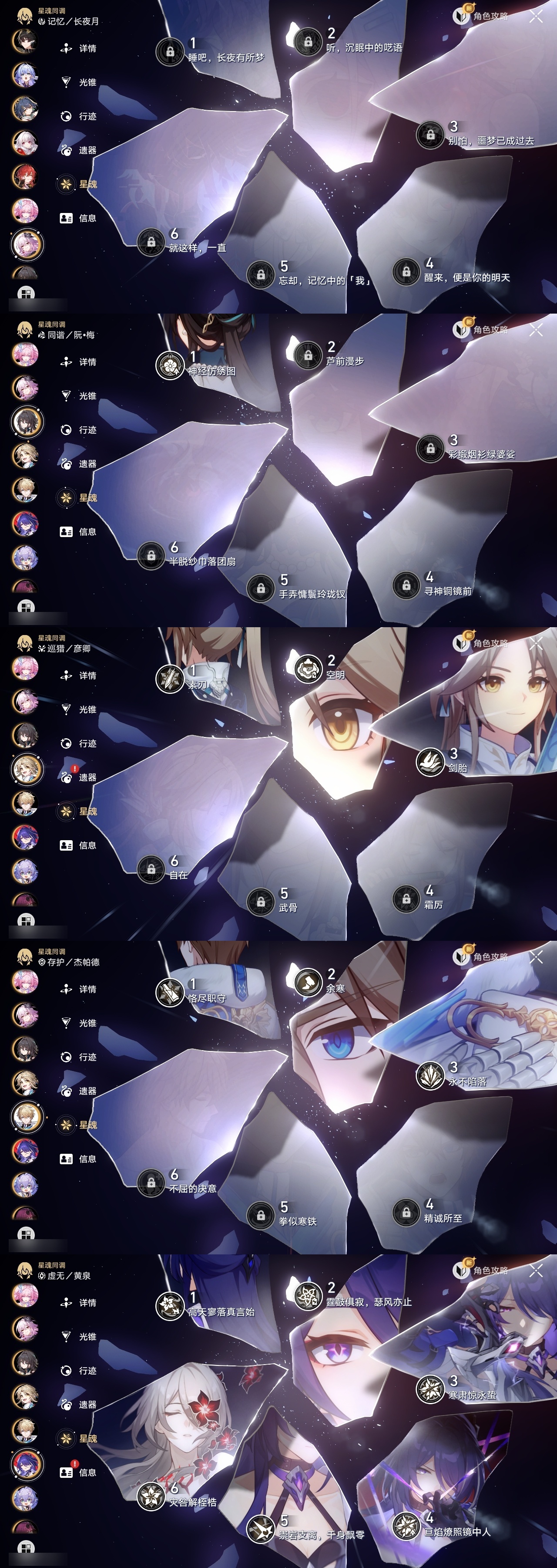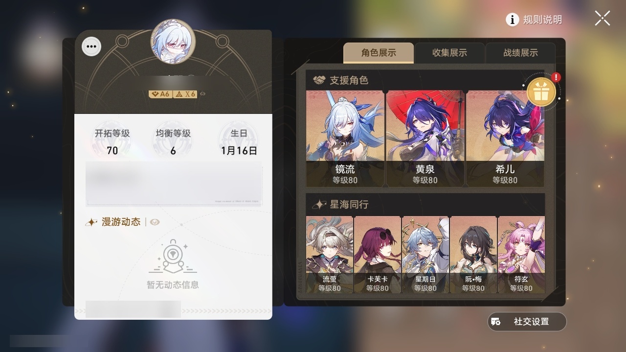 【崩坏·星穹铁道】【lyxq9853】冒险等级:70,女主,五星数量:45,五星角色:镜流 6命黄泉 6命布洛妮娅 4命银狼 3命希儿 3命杰帕德 3命彦卿 3命白露 2命姬子 2命瓦尔特 2命克拉拉 2命符玄 2命云璃飞霄星期日卡芙卡遐蝶真理医生花火风堇知更鸟archer长夜月丹恒·腾荒昔涟流萤__五星光锥:记忆的质料 5精此身为剑 5精记忆永不落幕 4精记一位星神的陨落 2精无可取代的东西 2精时节不居 2精星海巡航制胜的瞬间银河铁道之夜银河铁道之夜以世界之名以世界之名于夜色中我将,巡征追猎不息的演算孤独的疗愈让告别,更美一些镜中故我行于流逝的岸__四星角色:阿兰 6命娜塔莎 6命虎克 6命貊泽 6命黑塔 6命丹恒 6命艾丝妲 6命希露瓦 6命停云 6命素裳 6命桑博 6命三月七 6命青雀 6命佩拉 6命驭空 6命卢卡 6命玲可 6命桂乃芬 6命寒鸦 6命雪衣 6命米沙 6命加拉赫 6命61黄泉 65镜流