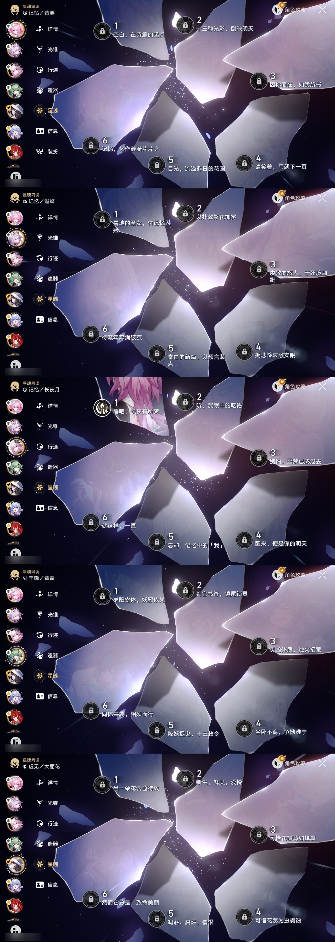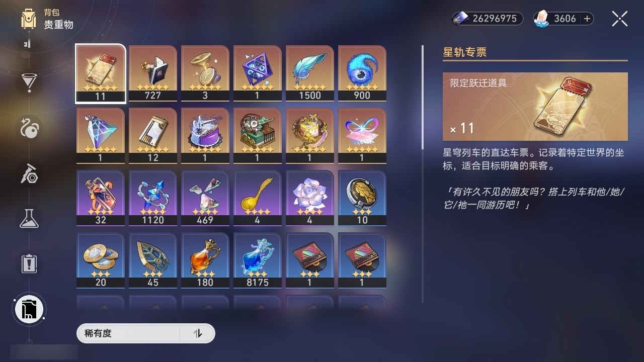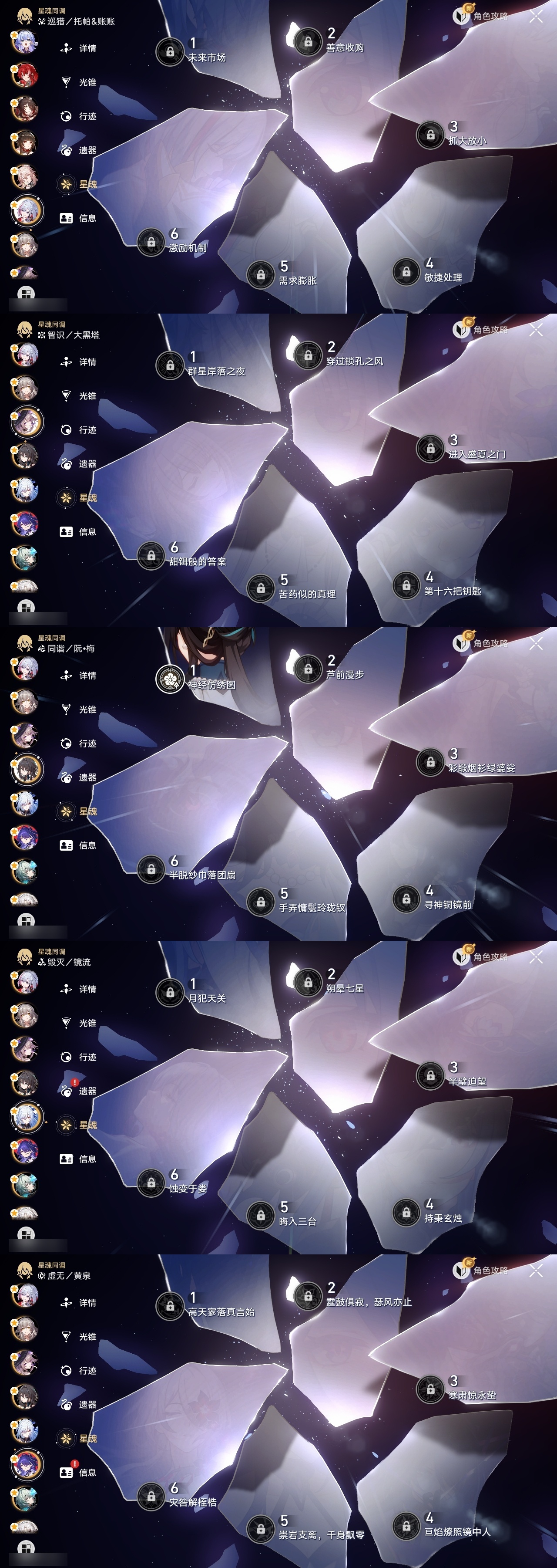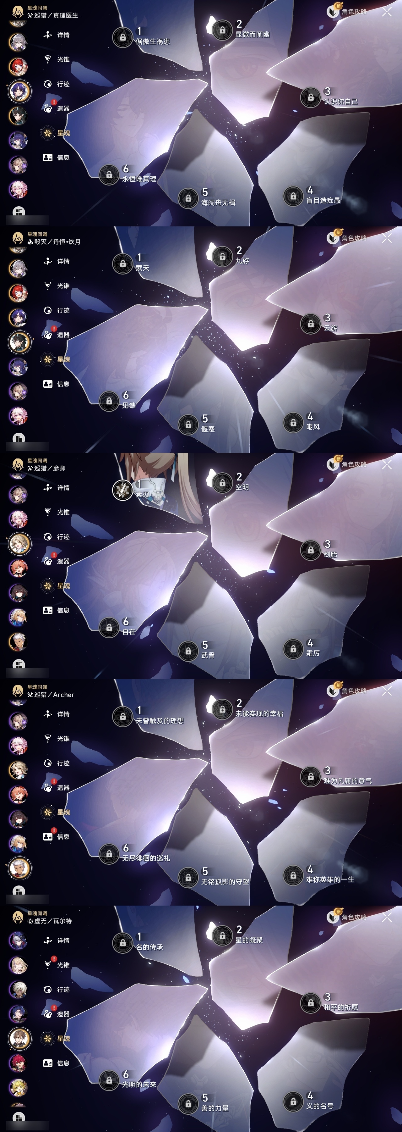 【崩坏·星穹铁道】【lyxq9834】冒险等级:70,女主,五星数量:50,五星角色:克拉拉 3命白露 2命布洛妮娅 1命姬子 1命杰帕德 1命彦卿 1命长夜月 1命椒丘飞霄景元灵砂瓦尔特乱破星期日大黑塔忘归人罗刹缇宝丹恒·饮月遐蝶符玄镜流托帕账账藿藿银枝真理医生花火那刻夏黄泉砂金知更鸟archer丹恒·腾荒昔涟大丽花流萤__五星光锥:记一位星神的陨落 5精制胜的瞬间无可取代的东西时节不居如泥酣眠但战斗还未结束我将,巡征追猎让告别,更美一些此身为剑烦恼着,幸福着片刻,留在眼底行于流逝的岸夜色流光溢彩爱如此刻永恒__四星角色:阿兰 6命娜塔莎 6命貊泽 6命黑塔 6命丹恒 6命艾丝妲 6命希露瓦 6命停云 6命素裳 6命桑博 6命三月七 6命青雀 6命佩拉 6命驭空 6命卢卡 6命玲可 6命桂乃芬 6命寒鸦 6命雪衣 6命米沙 6命加拉赫 6命虎克 2命记忆队,击破队,角色多