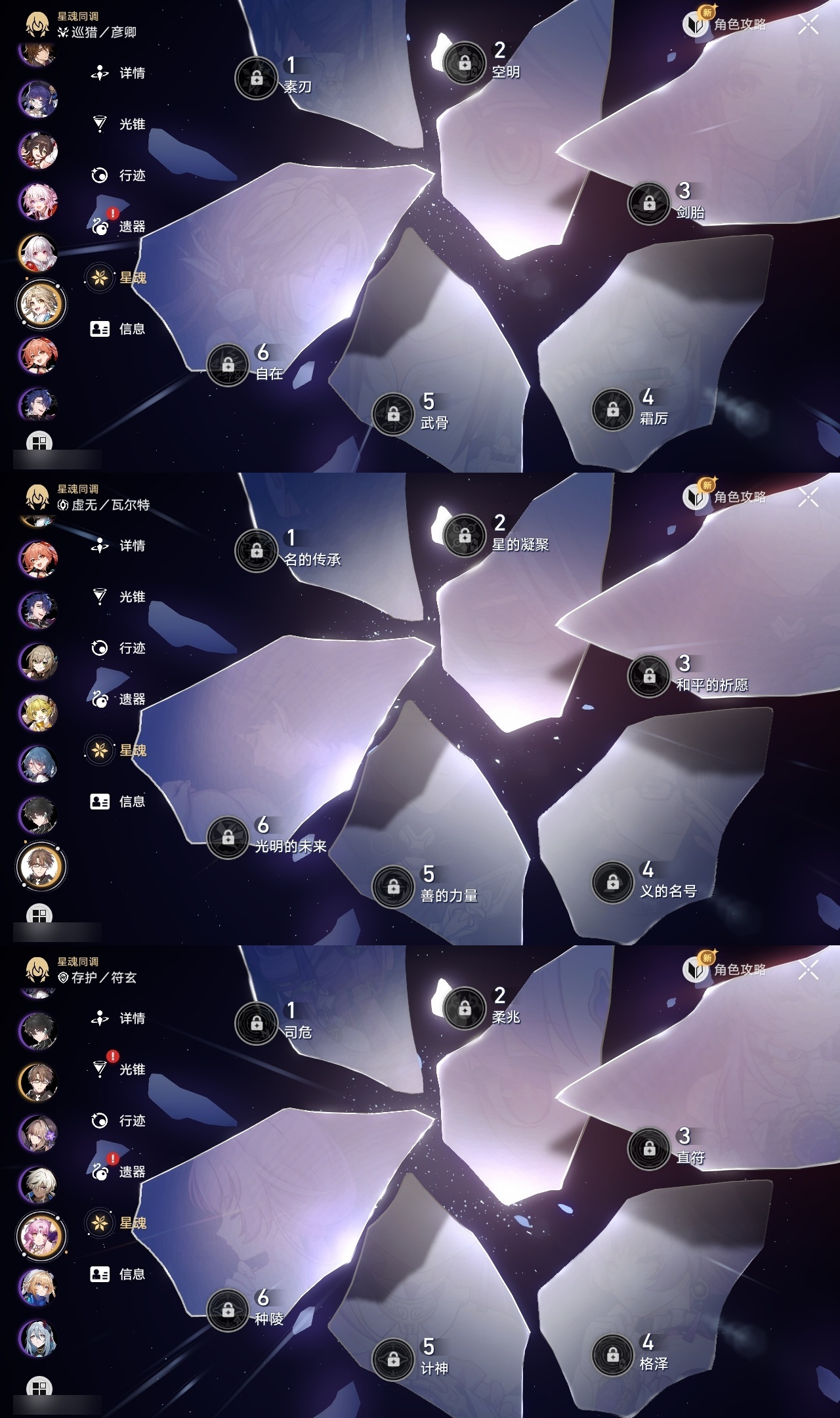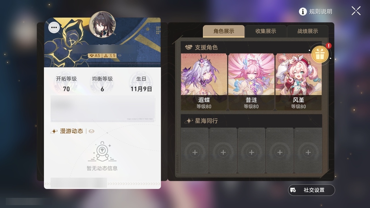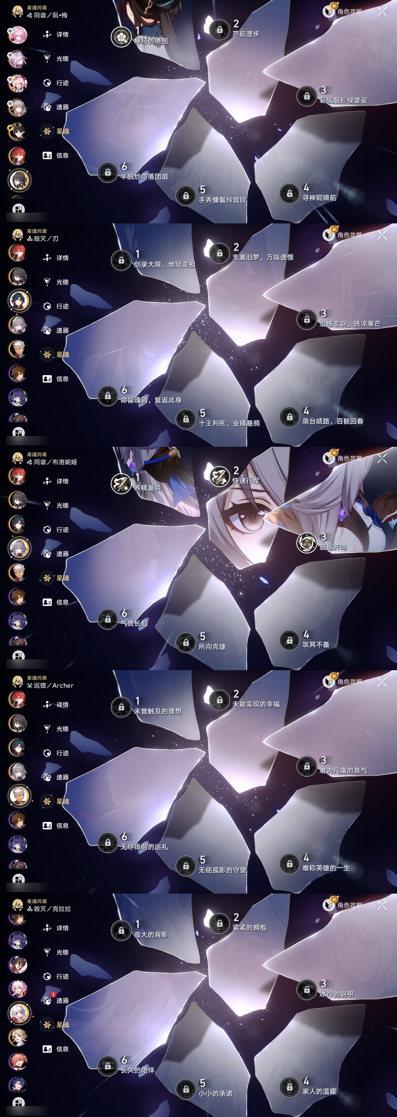 【崩坏·星穹铁道】【lyxq9761】冒险等级:70,女主,五星数量:21,五星角色:遐蝶 6命布洛妮娅 3命姬子彦卿瓦尔特克拉拉刃符玄风堇archer丹恒·腾荒昔涟__五星光锥:记忆永不落幕 5精星海巡航记一位星神的陨落以世界之名时节不居如泥酣眠让告别,更美一些理想燃烧的地狱爱如此刻永恒__四星角色:貊泽 6命黑塔 6命三月七 6命佩拉 6命玲可 6命加拉赫 6命停云 5命娜塔莎 4命丹恒 4命素裳 3命米沙 3命希露瓦 2命桑博 2命桂乃芬 2命雪衣 2命虎克 1命艾丝妲 1命驭空 1命卢卡 1命寒鸦 1命阿兰青雀满命遐蝶带辅助