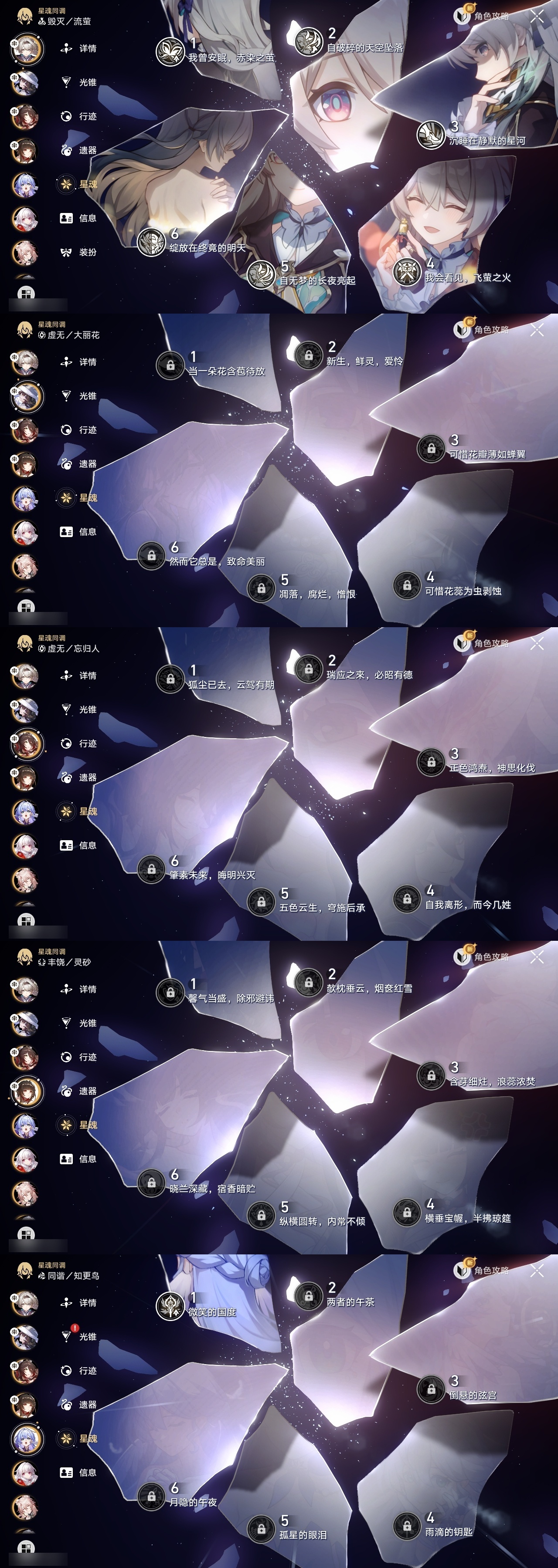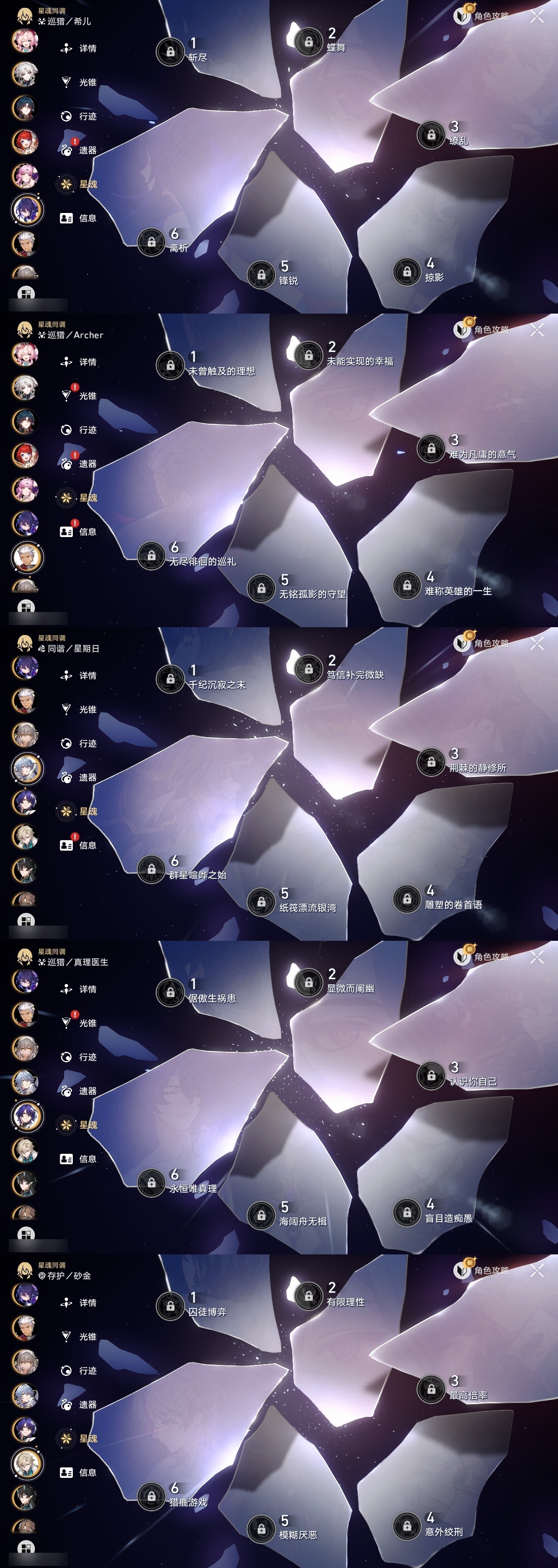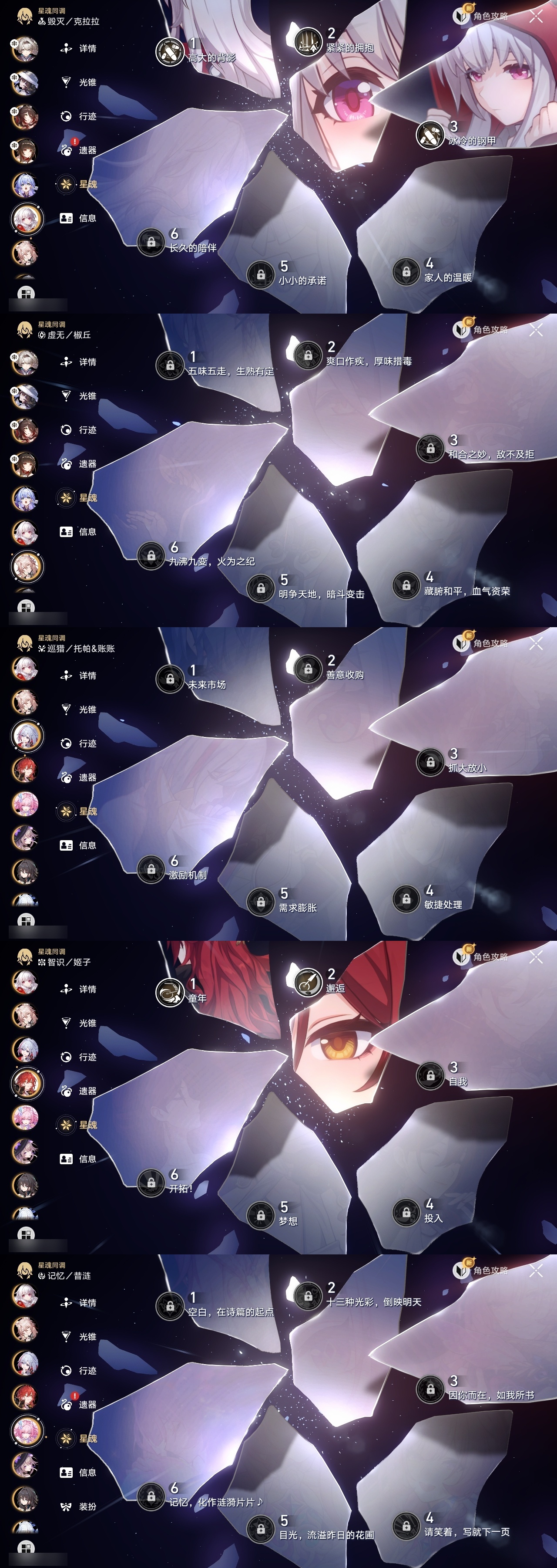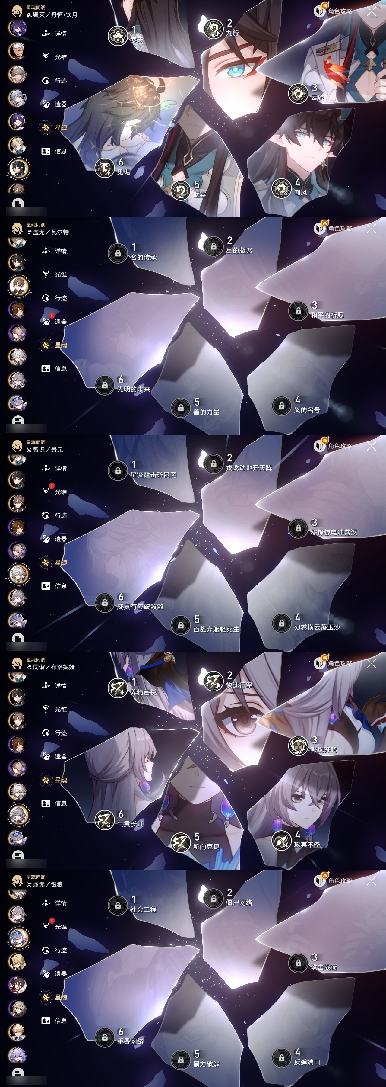 【崩坏·星穹铁道】【lyxq9830】冒险等级:70,女主,五星数量:60,五星角色:布洛妮娅 6命丹恒·饮月 6命镜流 6命流萤 6命杰帕德 4命克拉拉 3命白露 2命姬子 2命彦卿 2命黄泉 2命卡芙卡 1命知更鸟 1命椒丘飞霄银狼景元希儿灵砂瓦尔特星期日大黑塔忘归人罗刹缇宝刃符玄托帕账账真理医生风堇砂金archer丹恒·腾荒昔涟大丽花__五星光锥:星海巡航 5精记一位星神的陨落 5精制胜的瞬间银河铁道之夜以世界之名如泥酣眠如泥酣眠但战斗还未结束但战斗还未结束但战斗还未结束于夜色中拂晓之前我将,巡征追猎唯有香如故不息的演算向着不可追问处长路终有归途到不了的彼岸孤独的疗愈比阳光更明亮的此身为剑行于流逝的岸愿虹光永驻天空爱如此刻永恒勿忘她的火焰梦应归于何处__四星角色:阿兰 6命娜塔莎 6命虎克 6命貊泽 6命黑塔 6命丹恒 6命艾丝妲 6命希露瓦 6命停云 6命素裳 6命桑博 6命三月七 6命青雀 6命佩拉 6命驭空 6命卢卡 6命玲可 6命桂乃芬 6命寒鸦 6命雪衣 6命米沙 6命加拉赫 6命61流萤击破队 61镜流 61饮月丹恒 21黄泉队 01大黑塔队