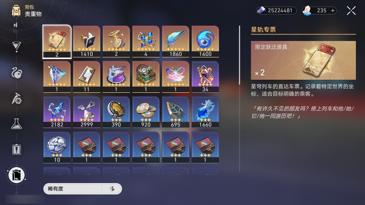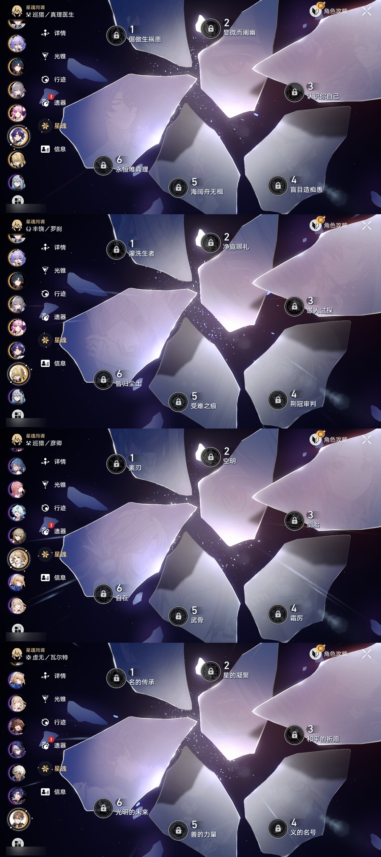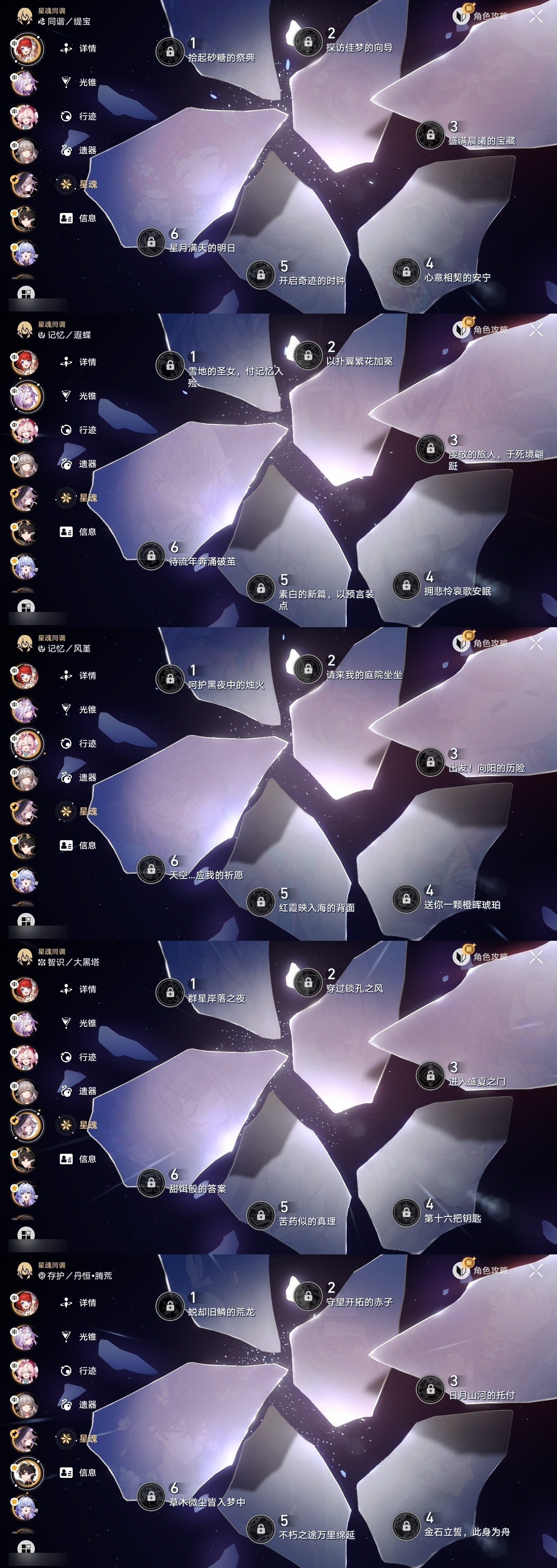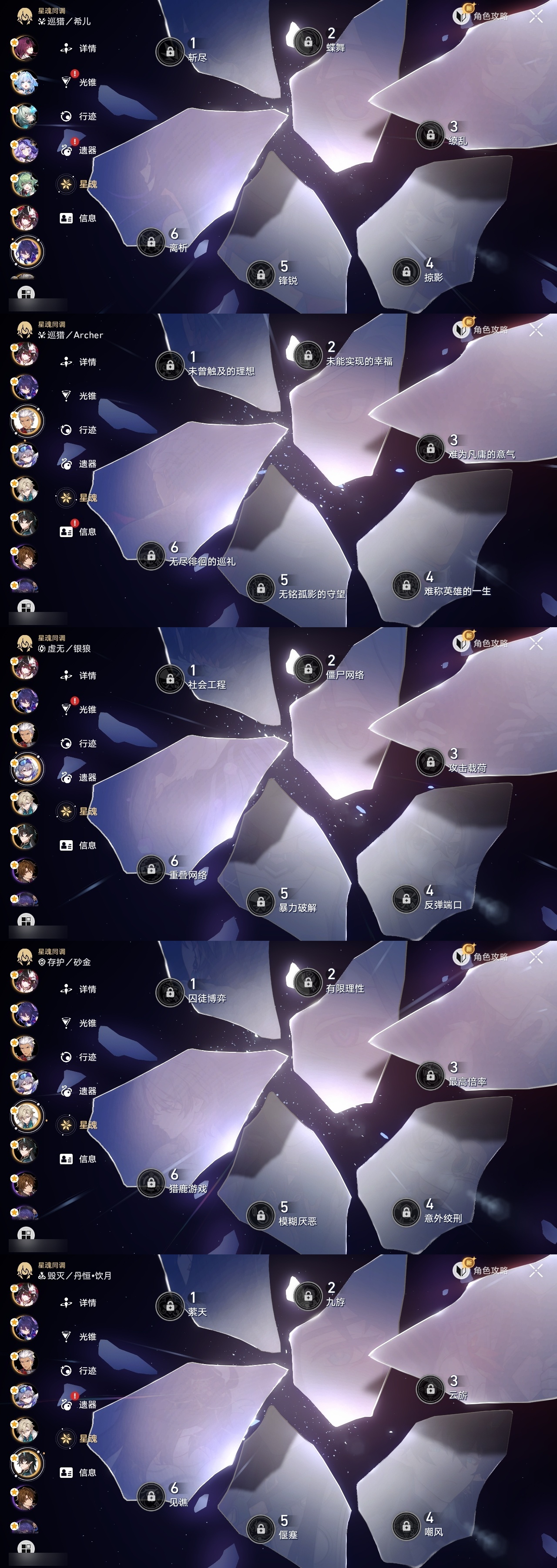 【崩坏·星穹铁道】【lyxq9876】冒险等级:70,女主,五星数量:47,五星角色:白露 6命布洛妮娅 5命姬子 3命黄泉 2命杰帕德 1命卡芙卡 1命符玄 1命椒丘银狼景元希儿彦卿瓦尔特克拉拉大黑塔罗刹缇宝刃丹恒·饮月遐蝶镜流藿藿真理医生黑天鹅花火那刻夏风堇砂金知更鸟archer刻律德菈丹恒·腾荒流萤__五星光锥:星海巡航 5精记一位星神的陨落 5精记忆永不落幕 5精如泥酣眠 3精时节不居 2精制胜的瞬间银河铁道之夜于夜色中拂晓之前不息的演算只需等待比阳光更明亮的让告别,更美一些行于流逝的岸__四星角色:阿兰 6命娜塔莎 6命虎克 6命黑塔 6命丹恒 6命艾丝妲 6命希露瓦 6命停云 6命素裳 6命桑博 6命青雀 6命佩拉 6命驭空 6命卢卡 6命玲可 6命桂乃芬 6命寒鸦 6命雪衣 6命米沙 6命加拉赫 6命三月七 3命貊泽 1命