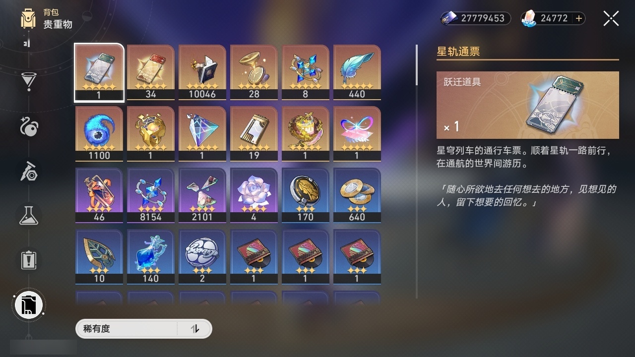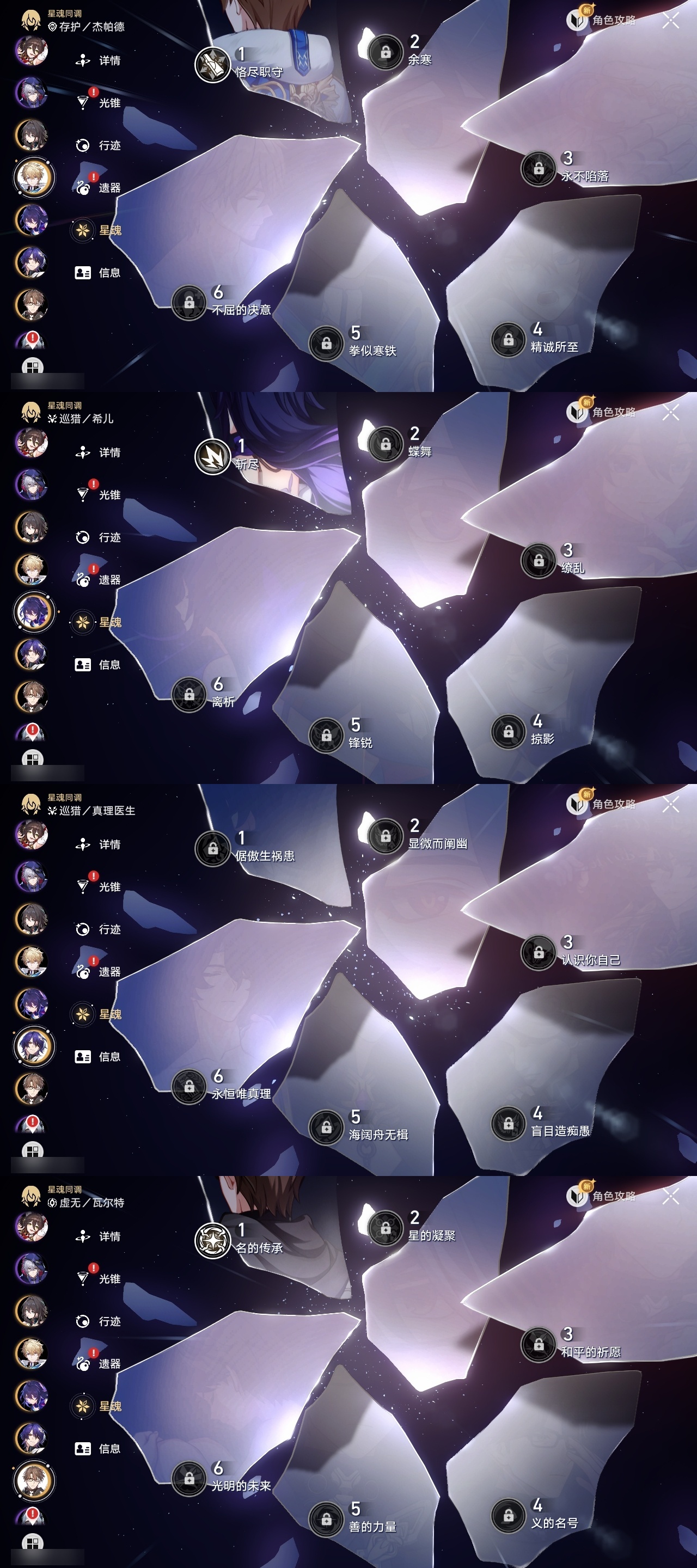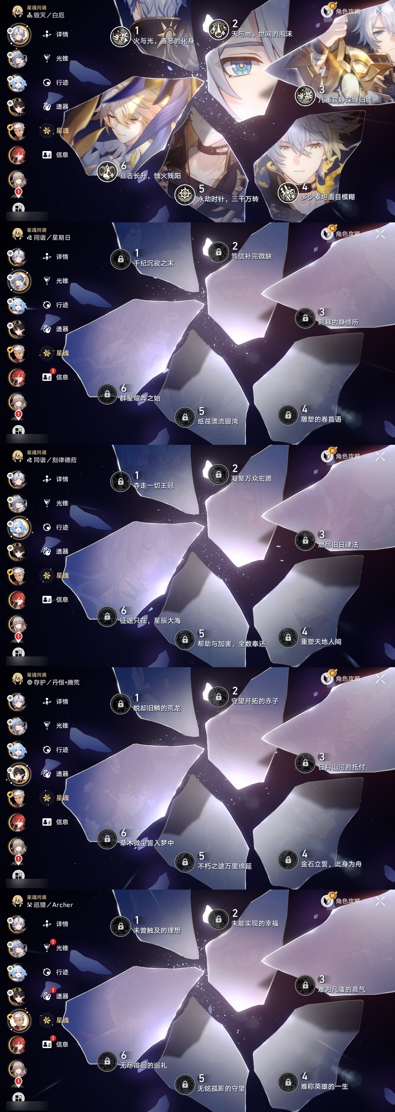 【崩坏·星穹铁道】【lyxq9840】冒险等级:70,女主,五星数量:19,五星角色:白厄 6命布洛妮娅 2命希儿 1命姬子 1命杰帕德 1命瓦尔特 1命符玄 1命星期日真理医生saberarcher刻律德菈丹恒·腾荒__五星光锥:记忆的质料 5精时节不居回到大地的飞行黎明恰如此燃烧理想燃烧的地狱没有回报的加冕__四星角色:貊泽 6命黑塔 6命停云 6命桑博 6命三月七 6命佩拉 6命驭空 6命玲可 6命桂乃芬 5命阿兰 4命娜塔莎 4命艾丝妲 3命素裳 3命青雀 3命卢卡 3命寒鸦 3命雪衣 3命丹恒 2命加拉赫 2命虎克 1命米沙 1命希露瓦