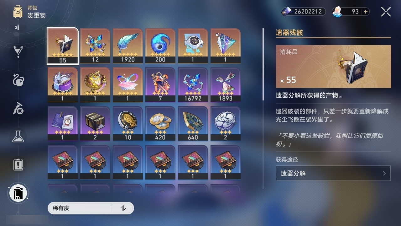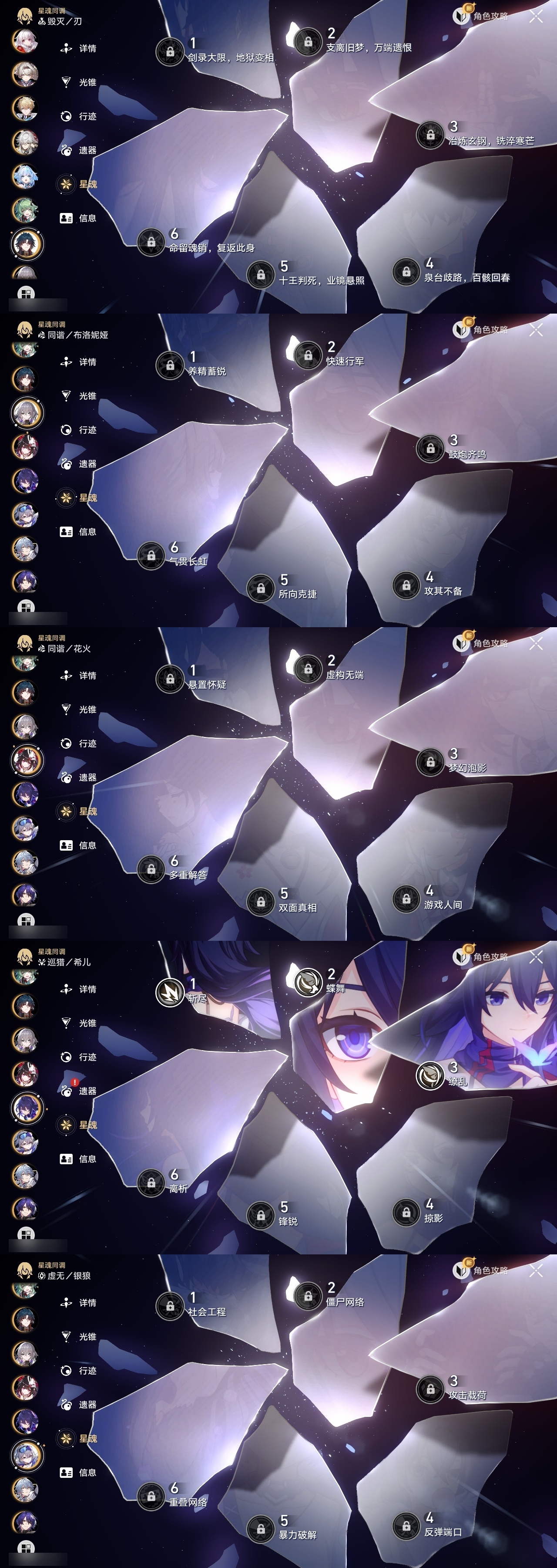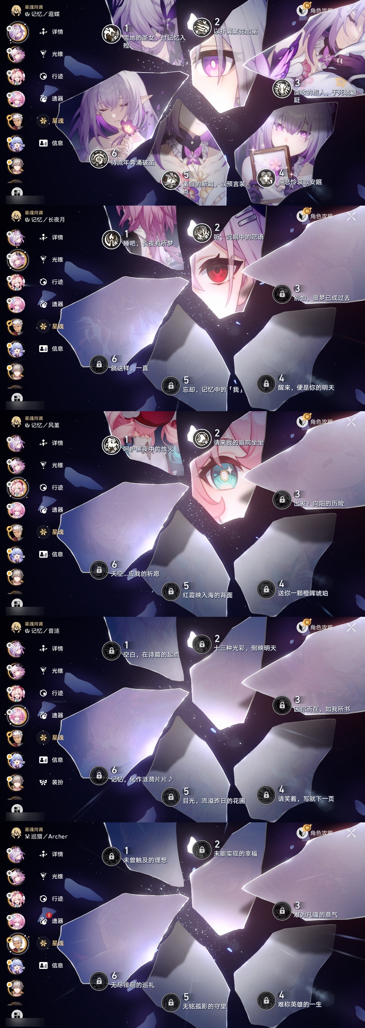 【崩坏·星穹铁道】【lyxq9893】冒险等级:70,男主,五星数量:43,五星角色:遐蝶 6命杰帕德 4命希儿 3命克拉拉 3命姬子 2命瓦尔特 2命风堇 2命长夜月 2命银狼景元布洛妮娅彦卿星期日缇宝刃符玄藿藿真理医生花火知更鸟archer刻律德菈丹恒·腾荒昔涟流萤__五星光锥:记忆的质料 5精记一位星神的陨落 5精不息的演算 5精以世界之名 2精镜中故我 2精制胜的瞬间时节不居但战斗还未结束但战斗还未结束于夜色中如果时间是一朵花让告别,更美一些纯粹思维的洗礼愿虹光永驻天空记忆永不落幕金血铭刻的时代致长夜的星光梦应归于何处__四星角色:娜塔莎 6命虎克 6命黑塔 6命丹恒 6命艾丝妲 6命希露瓦 6命停云 6命素裳 6命桑博 6命三月七 6命青雀 6命佩拉 6命驭空 6命玲可 6命桂乃芬 6命雪衣 6命米沙 6命加拉赫 6命阿兰 5命貊泽 3命寒鸦 3命卢卡 2命