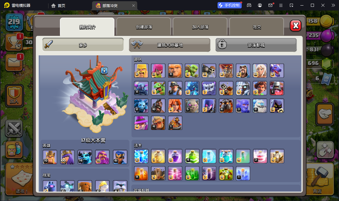 [12057682]【gpz_960334】 t11238 国服不分系统 q/v互通【 219级】17 本 10夜 场景11 皮肤 19 宝石1696五王等级:70 100 74 75 41装备技能: 27级拳套 2 级魔镜 5级火球 8级火箭 繁荣度等级:94场景:部落工坊 海上基地 冰天雪地 幽静丛林 狂野丛林 像素世界 原始秘地 皇家竞技场 魔法世界 史诗魔法世界 哥布林洞窟