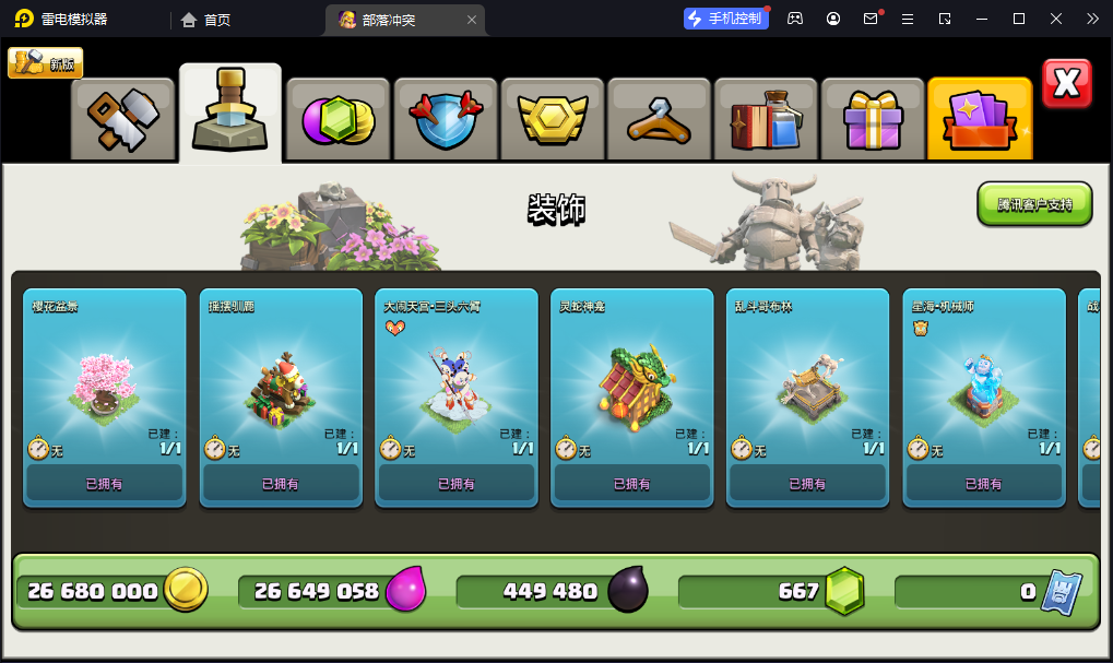 [13313966]t11768 国服不分系统 q/v互通【243 级】 17本 10夜 场景 10 皮肤39 宝石667五王等级:100 100 90 75 50装备技能: 8级魔镜 27 级火箭繁荣度等级:129场景:部落工坊 海上基地 冰天雪地 狂野丛林 像素世界 原始秘地 皇家竞技场 魔法世界 幽静丛林 缤纷乐园 哥布林洞窟
