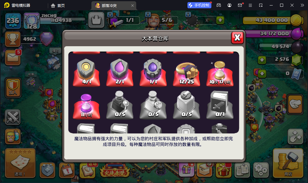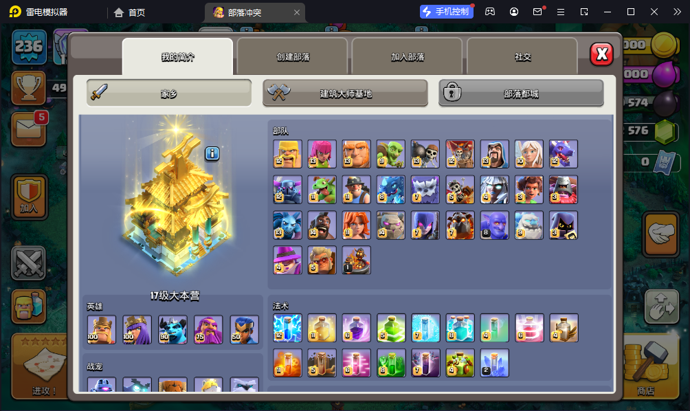 [13378957]t11783 国服不分系统 q/v互通【236 级】 17本 10夜 场景 15皮肤 55 宝石2576五王等级:100 100 90 75 50装备技能: 23级拳套 14 级冰箭 14级魔镜 17级火球 27级火箭繁荣度等级:128稀有皮肤:玉罗刹铁扇公主 挥舞热情蛮王 科学怪人守护者 托塔天王李靖 场景:太空幻境 魔法世界 南瓜墓园 9周岁生日 幽静丛林 部落工坊 海上基地 冰天雪地 狂野丛林 像素世界 原始秘地 皇家竞技场 缤纷乐园 哥布林洞窟 clash-a-rama