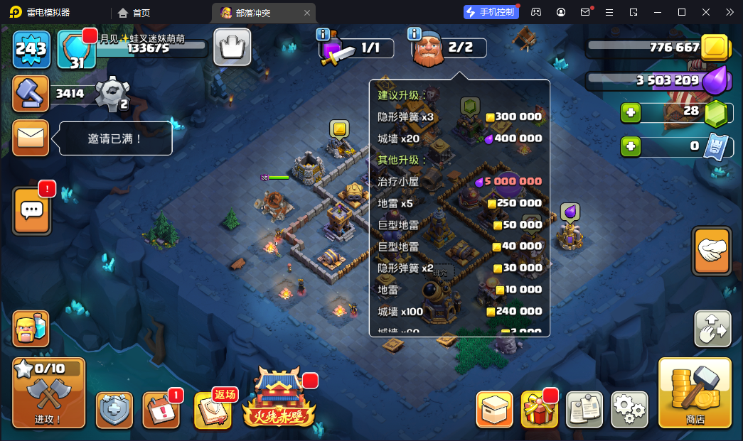 [13413970]t11793 国服不分系统 q/v互通【 243级】 17本 10夜 场景10 皮肤 12宝石28五王等级:100 100 90 75 50 装备技能: 27级拳套 27级冰箭 27 级魔镜 27级火球 27级火箭繁荣度等级:122稀有皮肤:未来领袖守护者 场景:部落工坊 海上基地 冰天雪地 狂野丛林 像素世界 原始秘地 皇家竞技场 魔法世界 哥布林洞窟