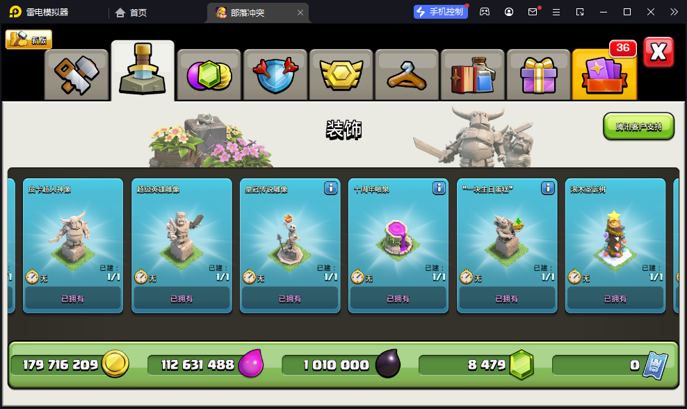 [13568727]t11867 天宫场景 国服不分系统 q/v互通【 239级】 17本 夜 10 场景 12 皮肤 31 宝石8479五王等级:100 100 90 75 50装备技能:27 级拳套 27级冰箭 27级魔镜 27级火球 27级火箭繁荣度等级:129稀有皮肤:凰鸣千秋女皇 未来领袖守护者 场景:部落工坊 海上基地 冰天雪地 幽静丛林 狂野丛林 像素世界 原始秘地 皇家竞技场 魔法世界 哥布林洞窟 clash-a-rama 天宫天宸九霄