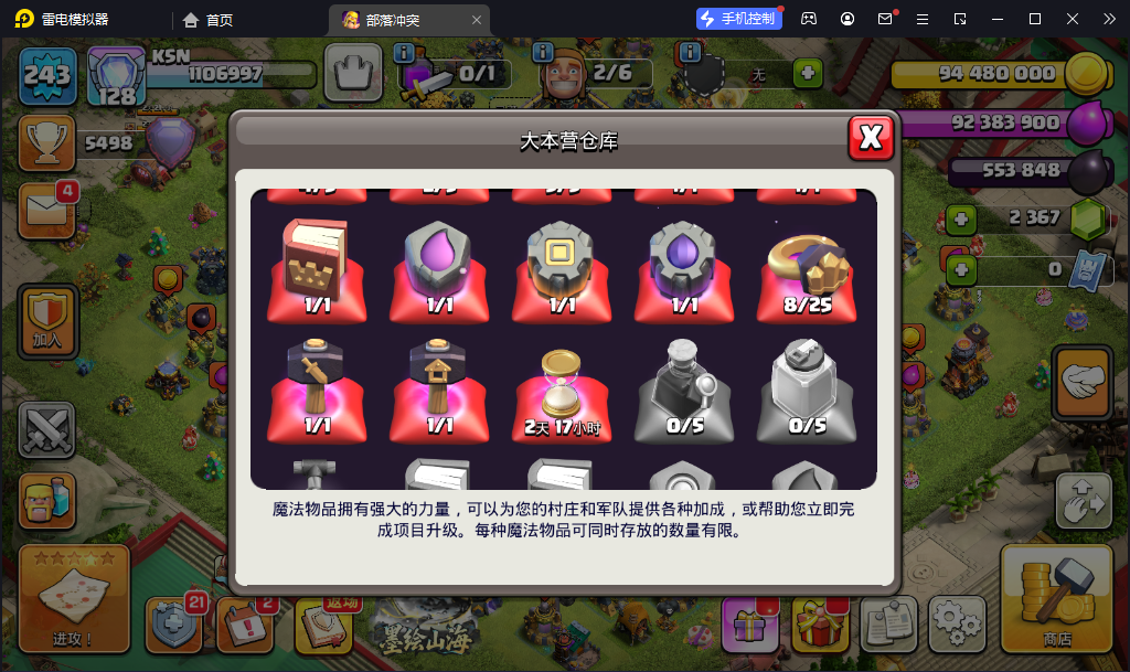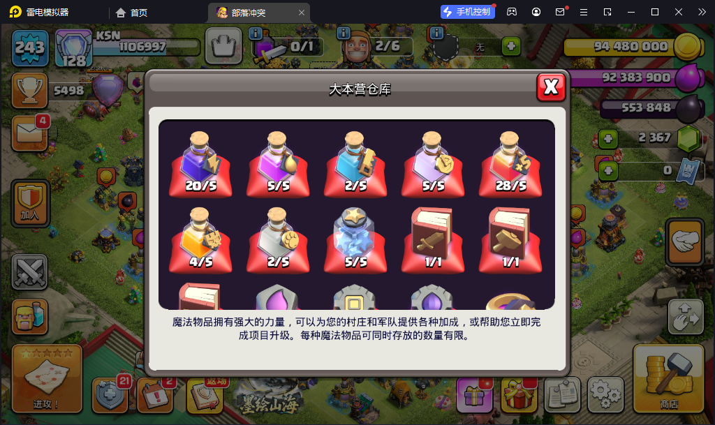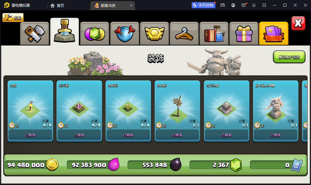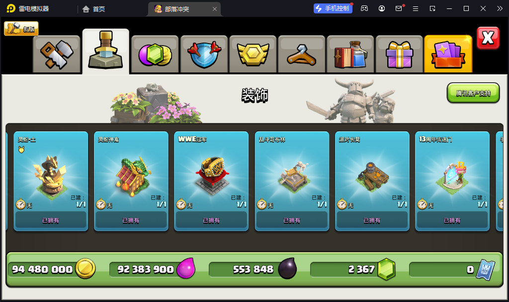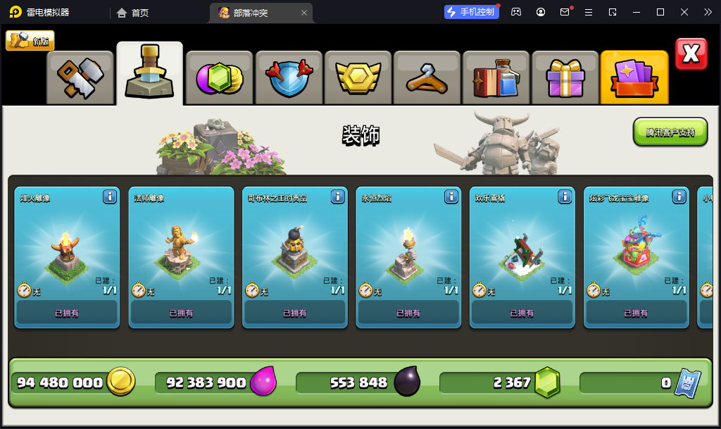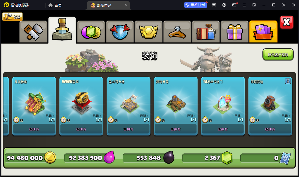 [13760481]t11964 国服不分系统 q/v互通【 243级】 17本 夜10 场景10 皮肤16 宝石2367五王等级:100 100 90 75 50装备技能: 27级拳套 8级冰箭 8级魔镜 26级火球 27级火箭繁荣度等级:128场景:部落工坊 海上基地 冰天雪地 幽静丛林 狂野丛林 像素世界 原始秘地 皇家竞技场 魔法世界 哥布林洞窟