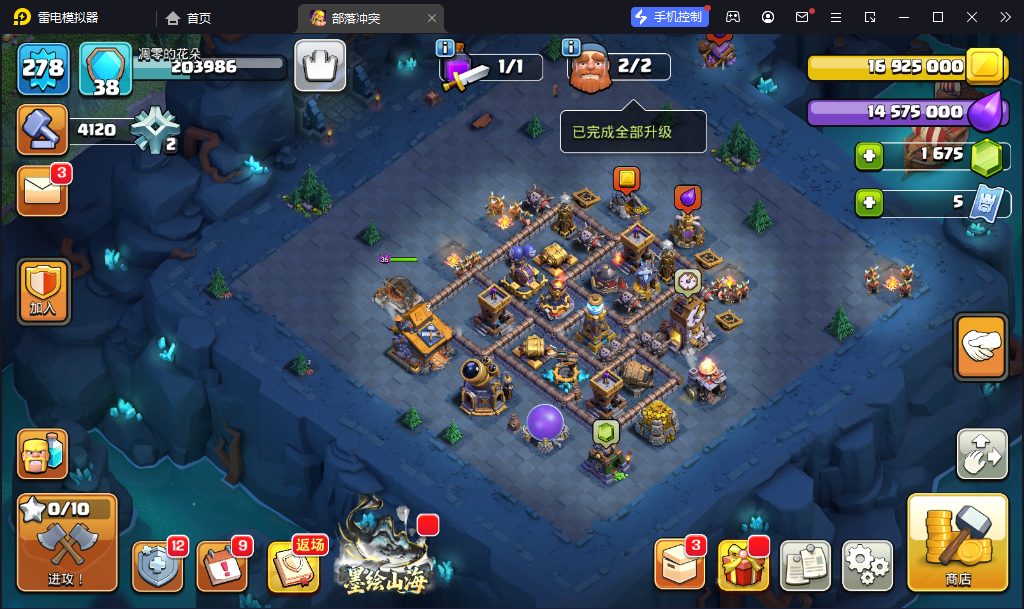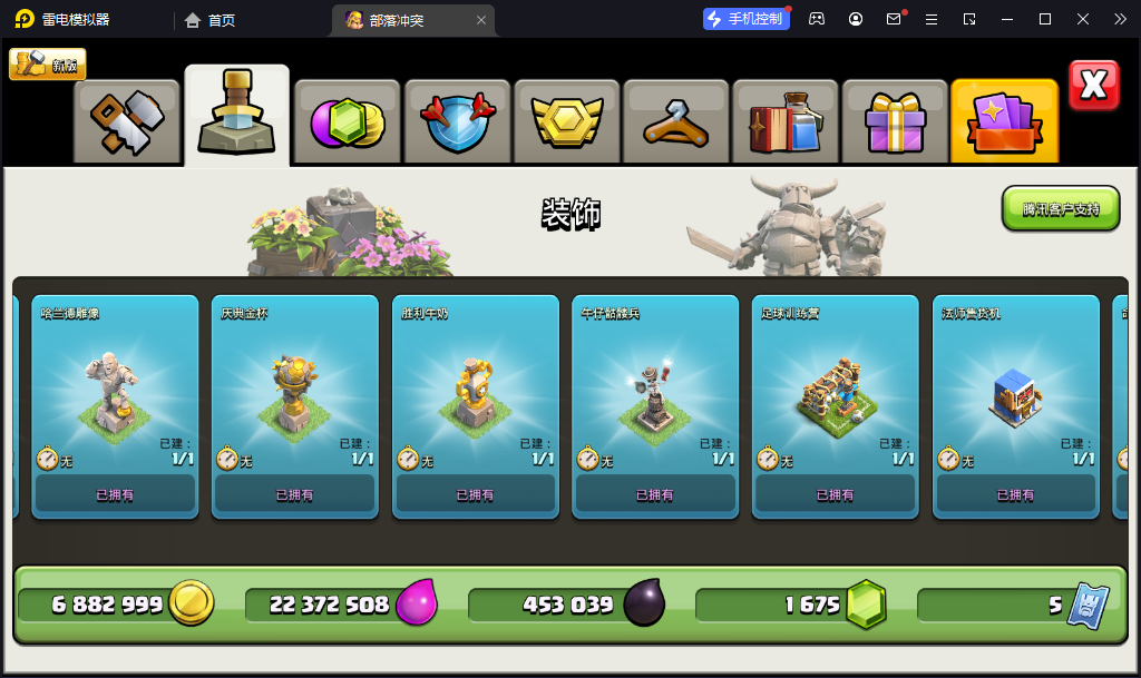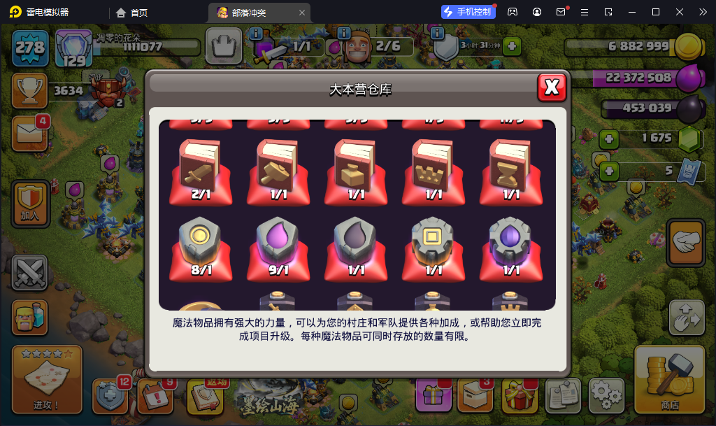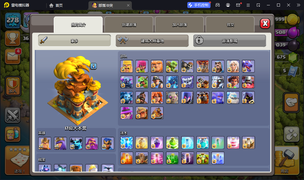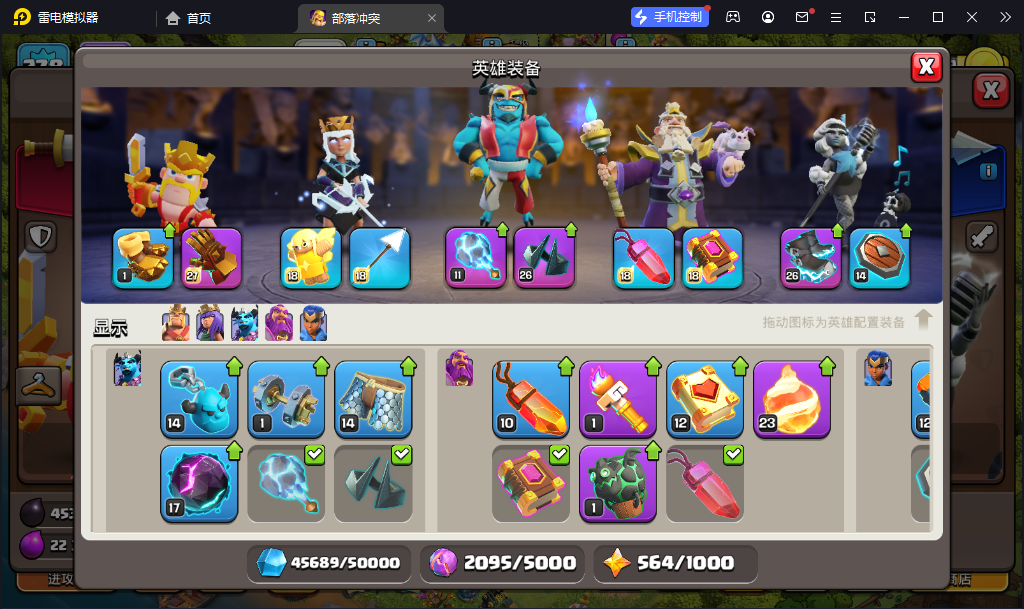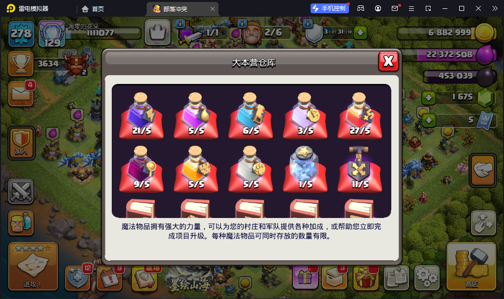 [13765514]t11955 国服不分系统 q/v互通【 278级】 17本 10夜 场景9 皮肤 39 宝石1675五王等级:100 100 90 75 50装备技能: 27级拳套 27级冰箭 23级魔镜 23级火球 1级火箭繁荣度等级:129场景:部落工坊 海上基地 冰天雪地 狂野丛林 像素世界 原始秘地 皇家竞技场 缤纷乐园 哥布林洞窟