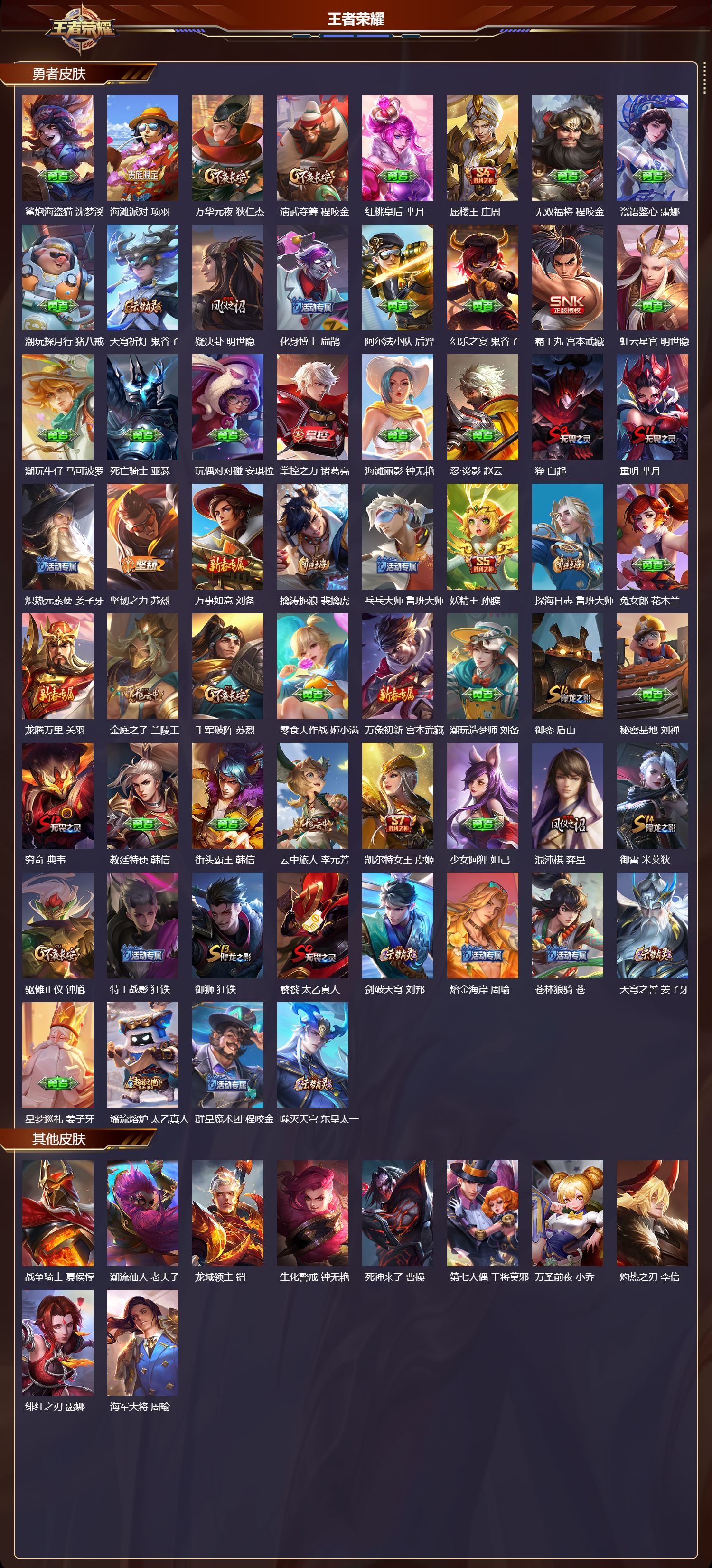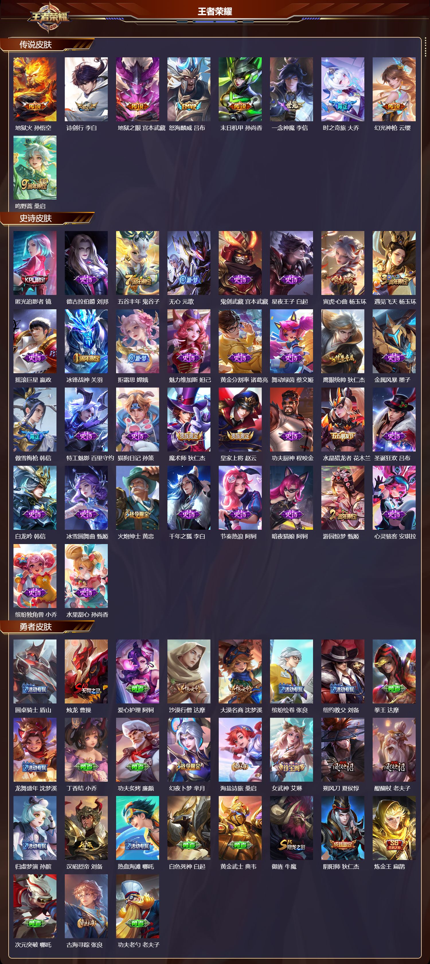 hst100543502-不可二次-121英雄-166皮肤-8传说-34史诗 冰锋战神-关羽 女武神-艾琳 街头霸王-韩信