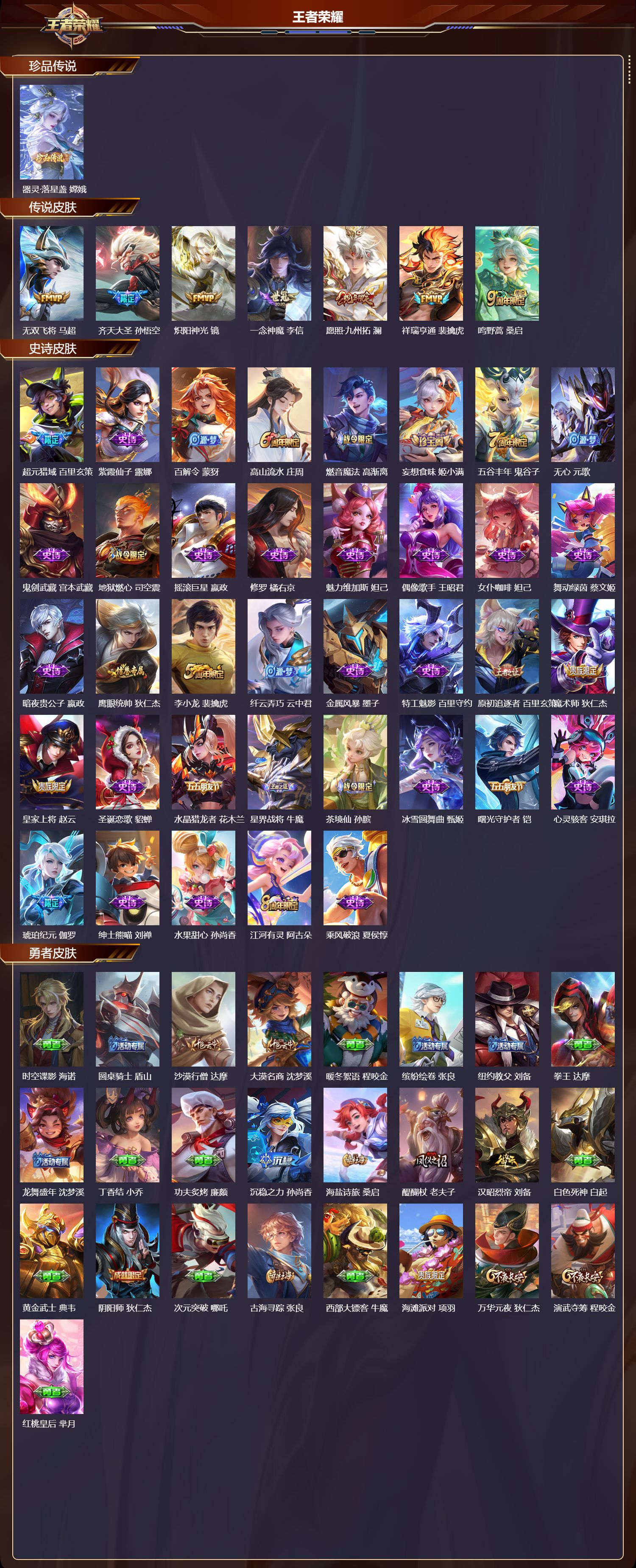 hst100846188嫦娥珍传澜蛇年限紫霞-可二次-121英雄-171皮肤-7传说-36史诗 炽阳神光-镜 齐天大圣-孙悟空 街头霸王-韩信