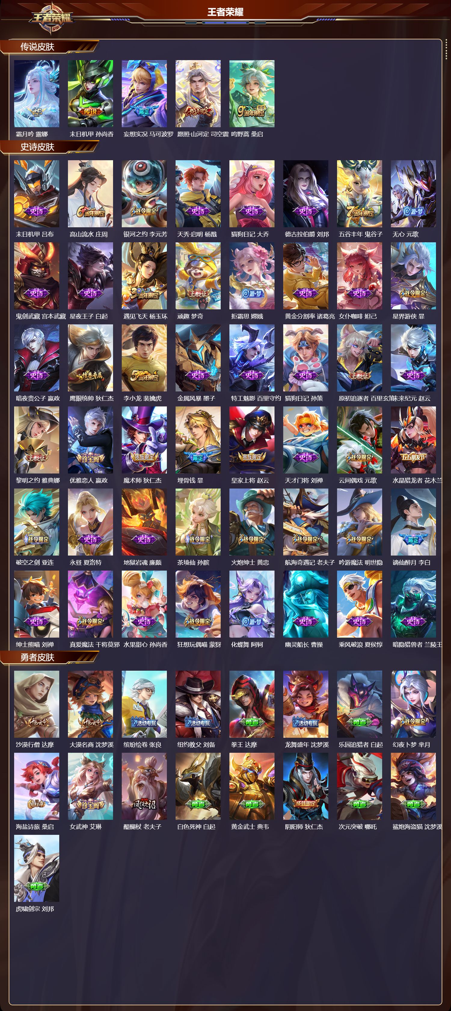 hst100809867司空震蛇年限霜月吟-可二次-122英雄-149皮肤-5传说-48史诗 女武神-艾琳 街头霸王-韩信