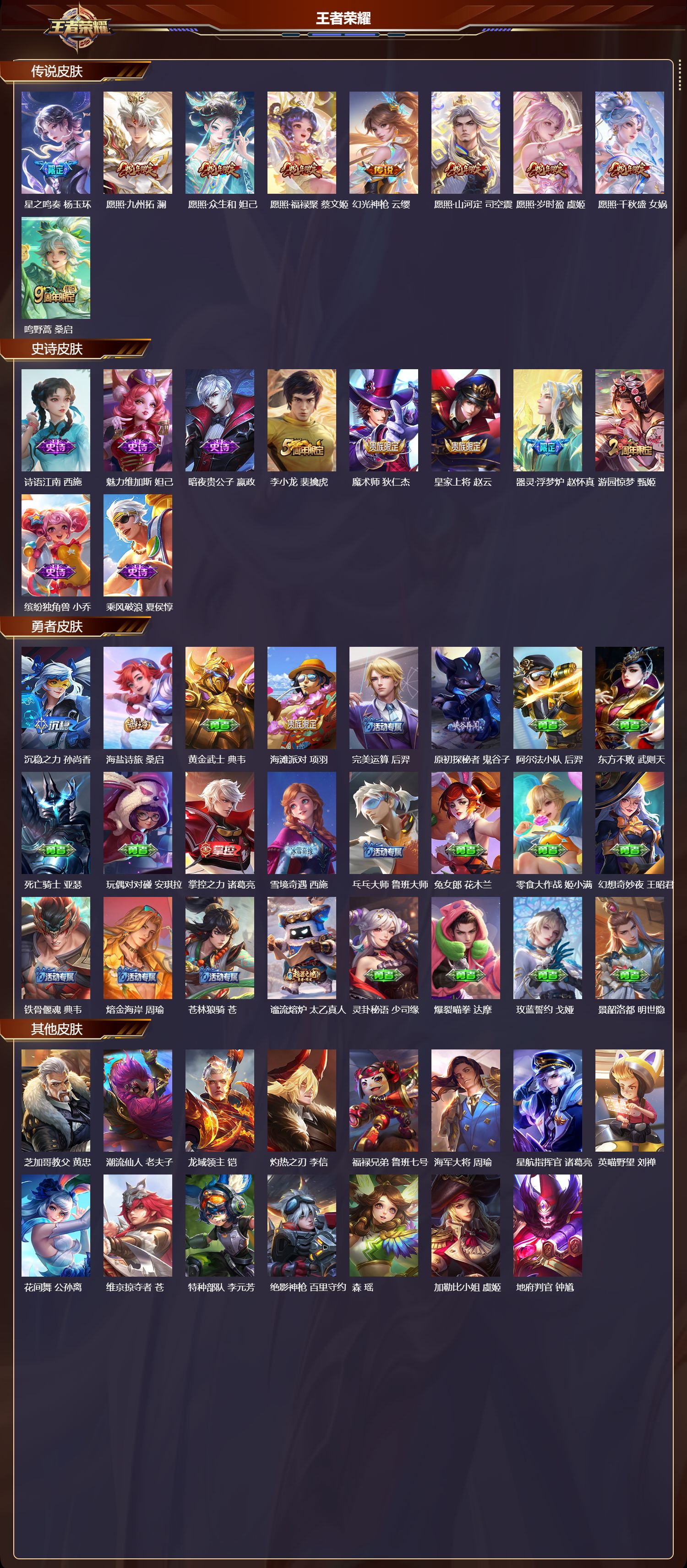 hst100800460蛇年限定全武则天虞姬蛇年限蔡文姬蛇年限女娲蛇年限妲己蛇年限澜蛇年限司空震蛇年限-可二次-69英雄-60皮肤-9传说-10史诗