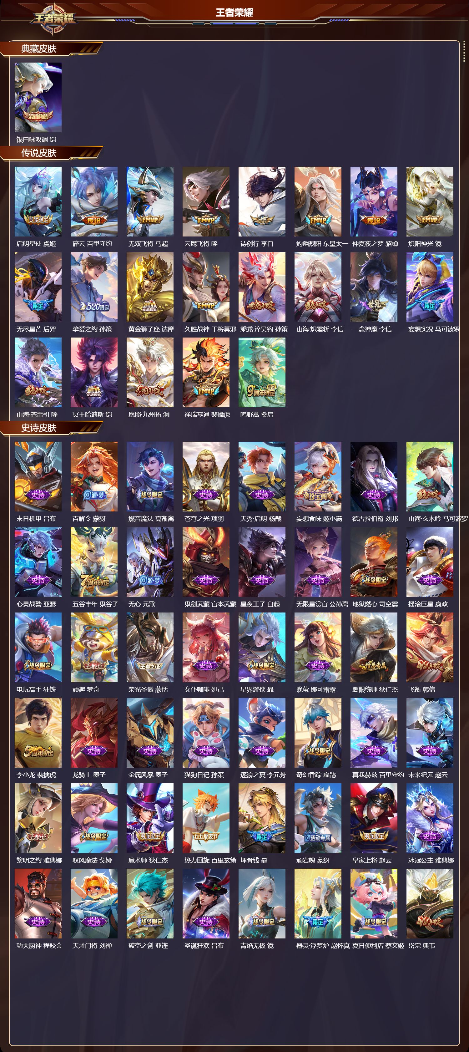 hst100887135-可二次-123英雄-242皮肤-1典藏-21传说-69史诗 炽阳神光-镜 山海·苍雷引-曜 山海·炽霜斩-李信 无尽星芒-后羿 山海·玄木吟-马可波罗 岱宗-典韦 冰冠公主
