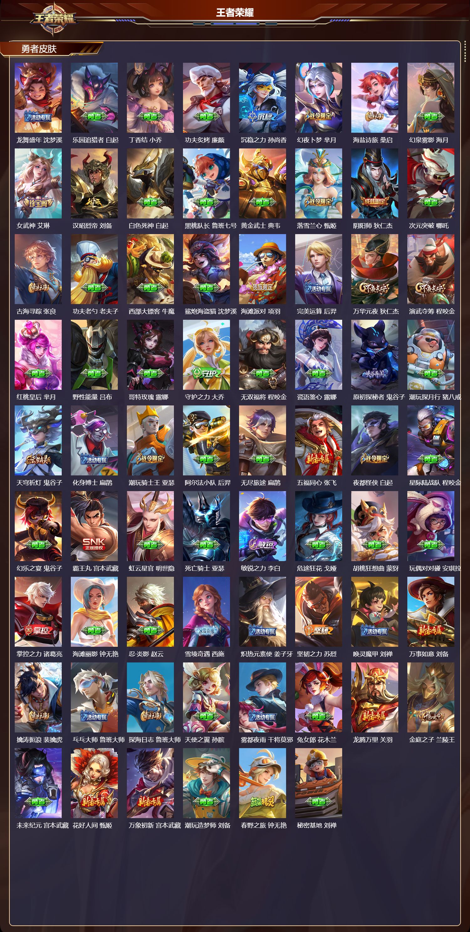hst100973537铠典藏基德澜蛇年限李久胜马可年限小青龙澜逐花归海至尊宝深海之息仲夏夜紫霞-可二次-122英雄-295皮肤-1典藏-39传说-92史诗 游龙清影-西施