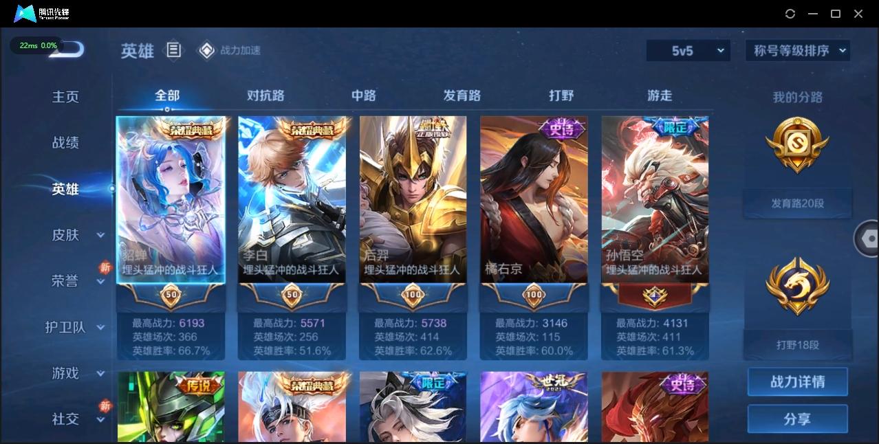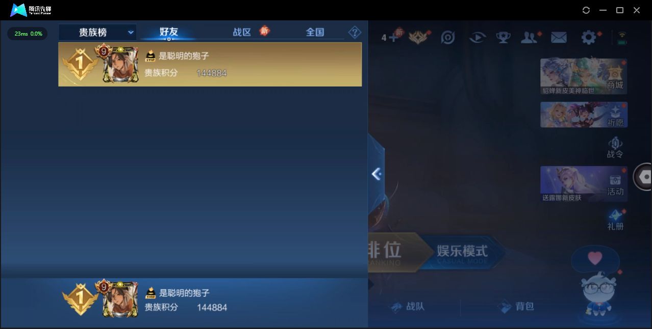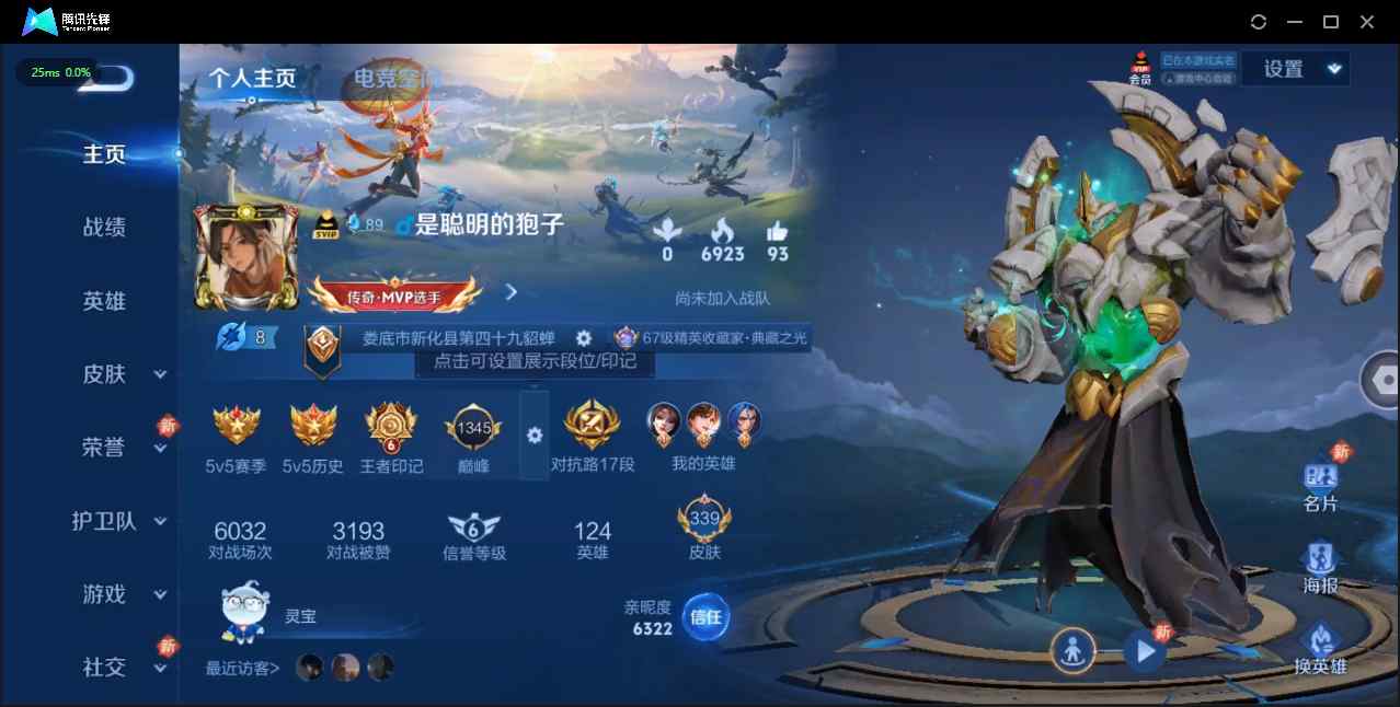 [9229260]贵族等级:v9 皮肤价值:295622 荣耀典藏:3 无双皮肤:0 传说皮肤:36 史诗皮肤:91 英雄数量:124 皮肤数量:339 游戏区服:安卓qq276区