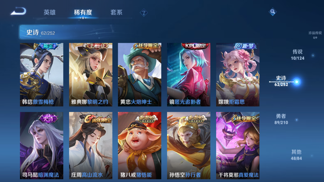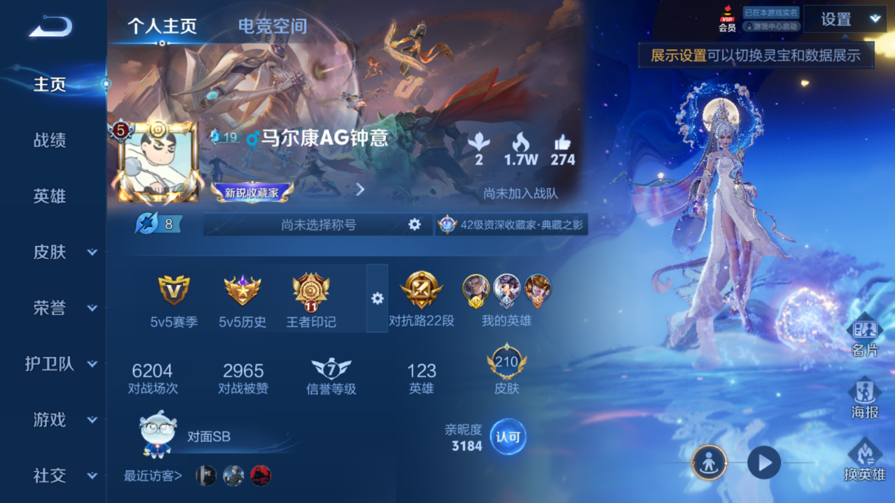 [8999108]实名: 可修改 性别: 男号 贵族等级: v7 英雄数: 122 皮肤数: 210 荣耀水晶: 九霄神辉 传说皮: 云鹰飞将一念神魔末日机甲-孙尚香时之恋人-刘备山海·炽霜斩浮生妄霜月吟 限定皮: 李小龙御风骁将龙胆青春决赛季寅虎·御盾朱雀志至尊宝如梦令-后羿高山流水孙行者猪悟能匿光追影者傲雪梅呛五谷丰年怒海麟威山海·玄木吟鸣野蒿愿照·千秋盛