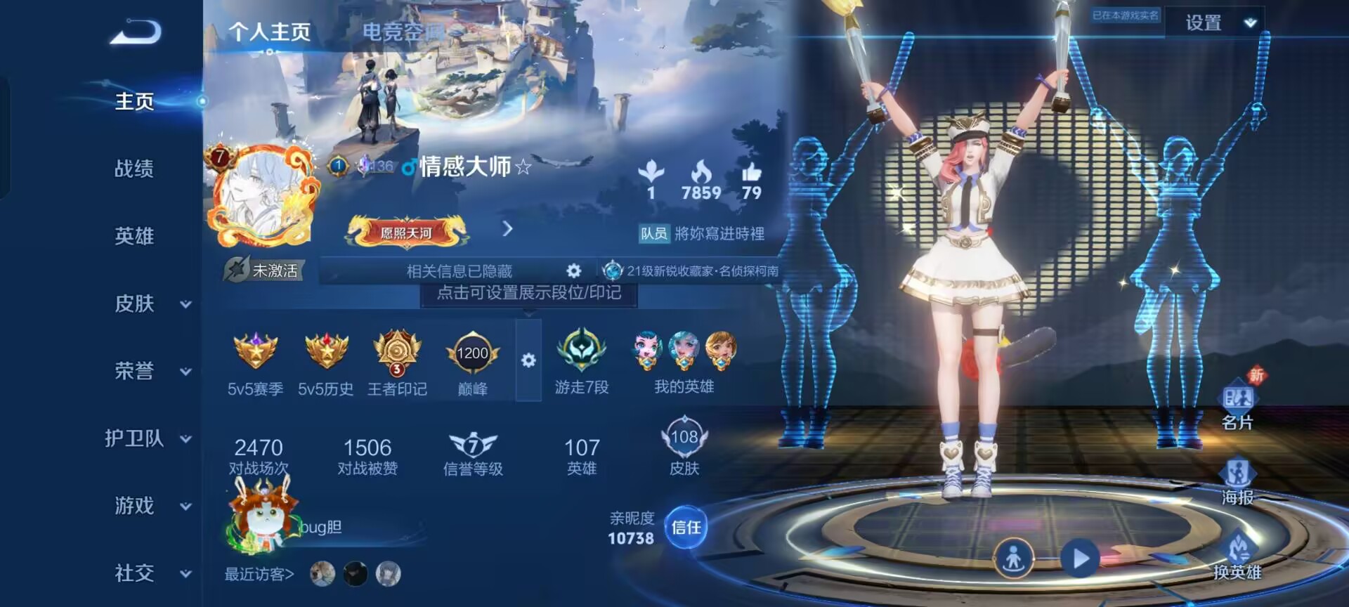 hswz9539 安卓qq/ 108皮肤/ 107英雄 贵族7级 【3 珍品传说】怪盗基德 马可波罗时之奇旅 孙策江户川柯南 鲁班七号 【12 传说皮肤】齐天大圣 孙悟空时之恋人 刘备久胜战