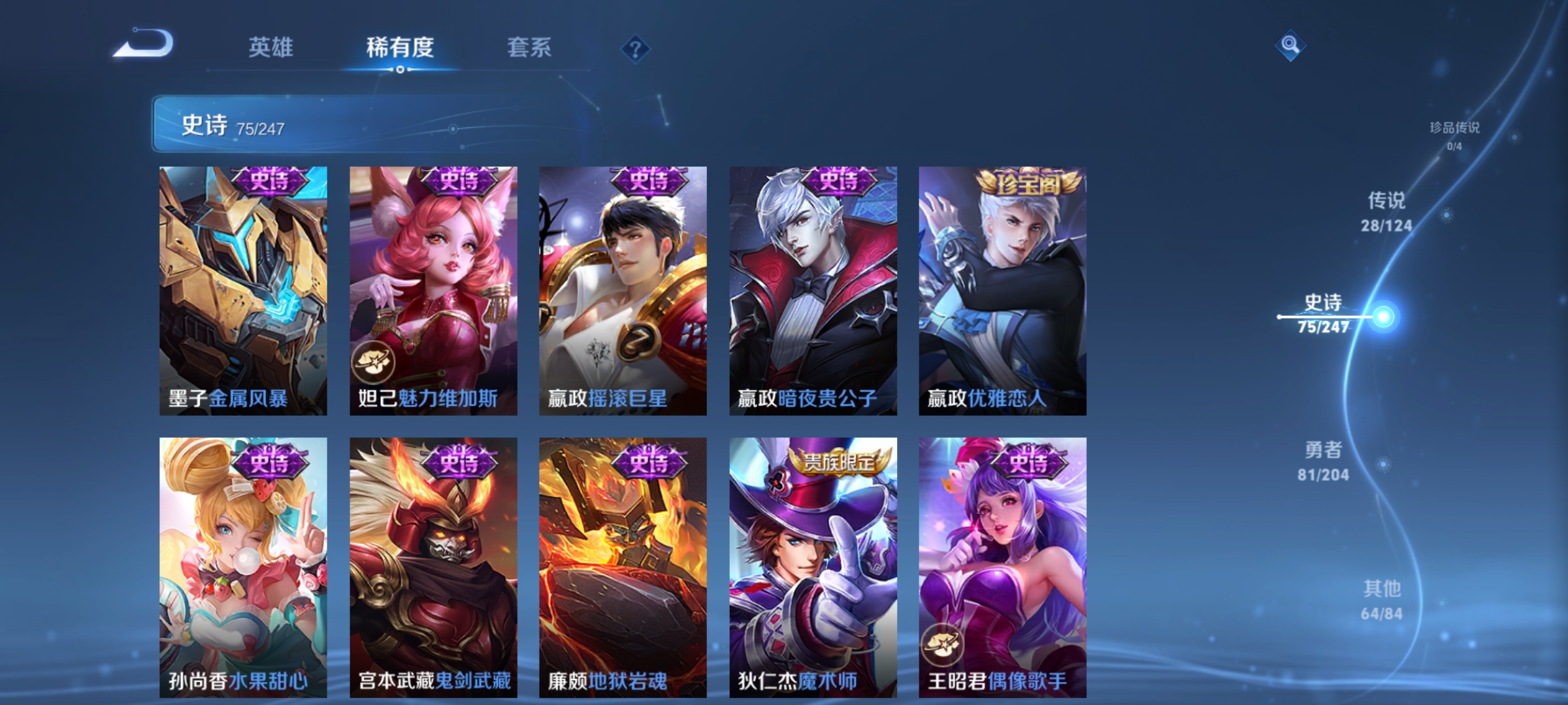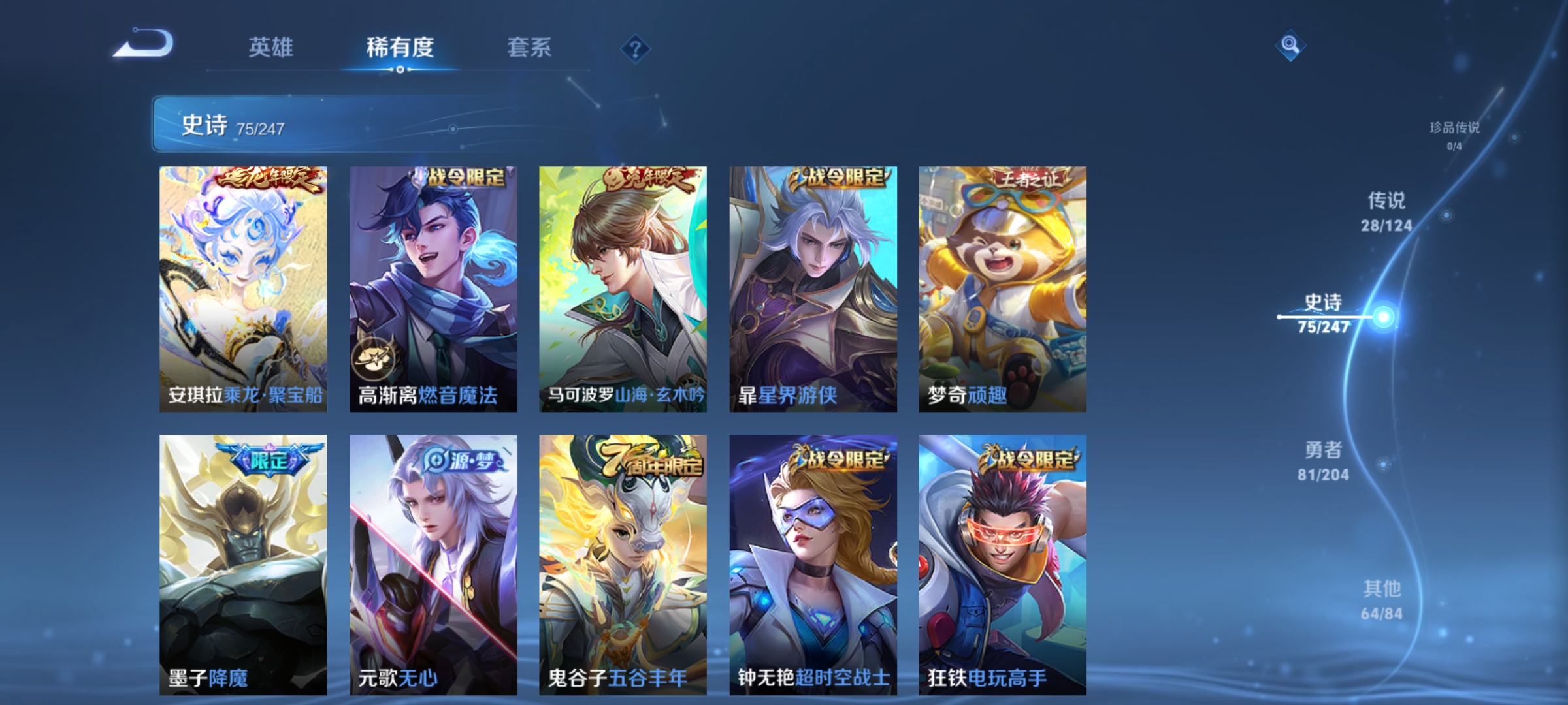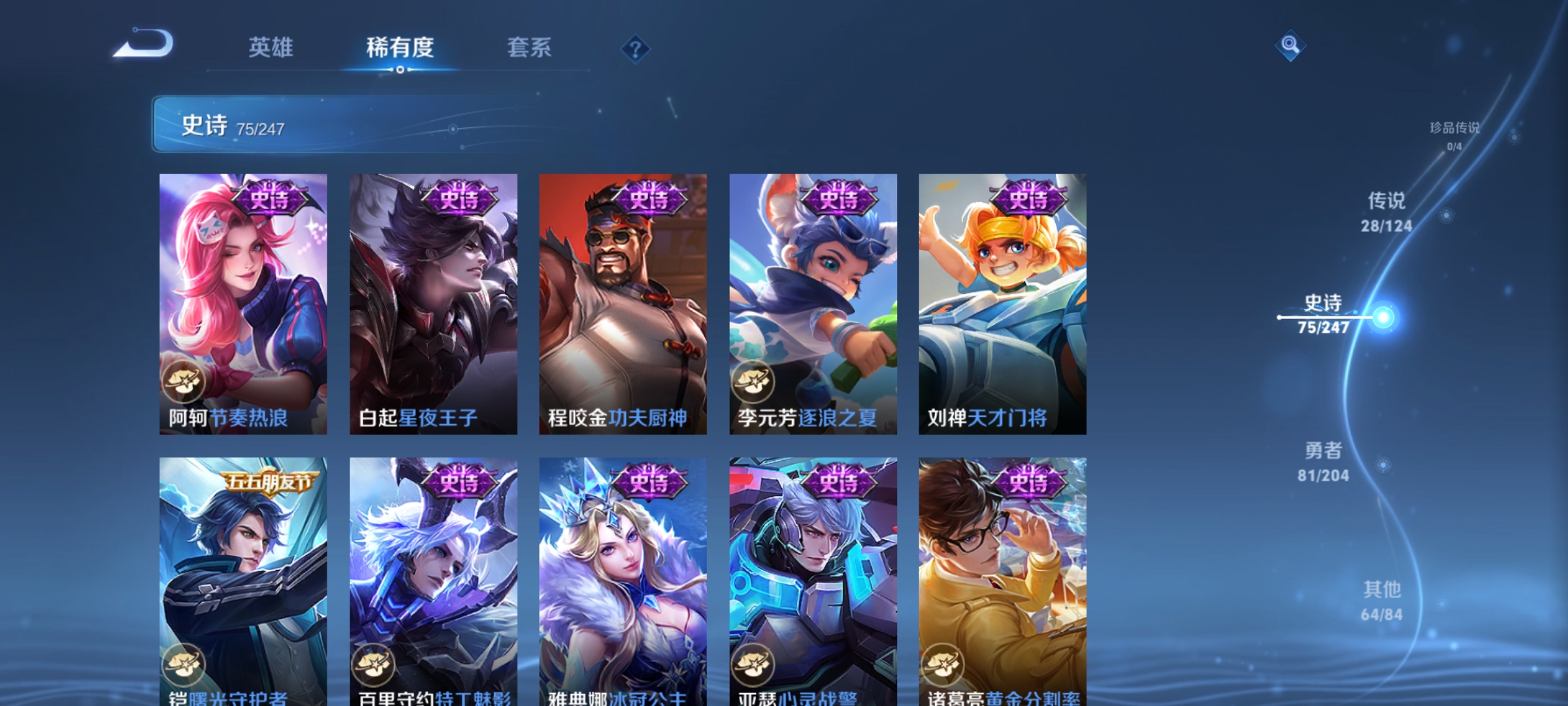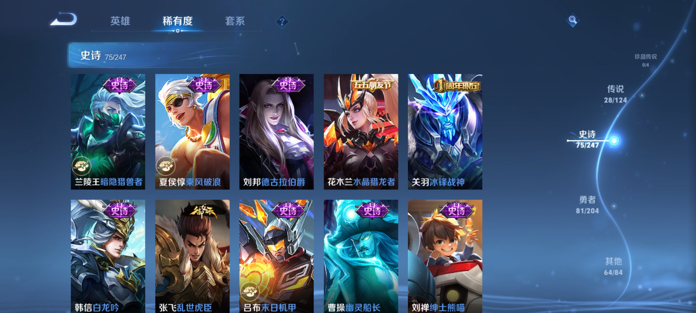 [9646050]韩信典藏李白无双龙年限定全武则天虞姬蛇年限久胜小将军孙尚香年限小青龙澜逐花归海玉兔公主白晶晶紫霞马可年限-不可二次-122英雄-250皮肤-1典藏-1无双-28传说-75史诗 游龙清影-西施 炽阳神光-镜 山海·苍雷引-曜 寅虎·赤拳-裴擒虎 山海·炽霜斩-李信 枫霜尽-橘右京 浮生妄-夏洛特 降魔-墨子 山海·玄木吟-马可波罗 冰锋战神-关羽 冰冠公主-雅典娜 白晶晶-芈月 街头霸王-韩信