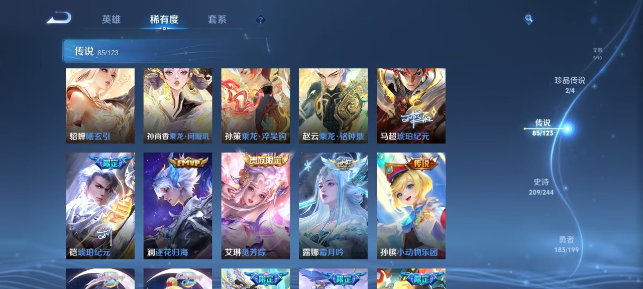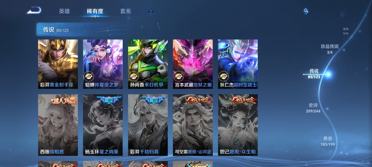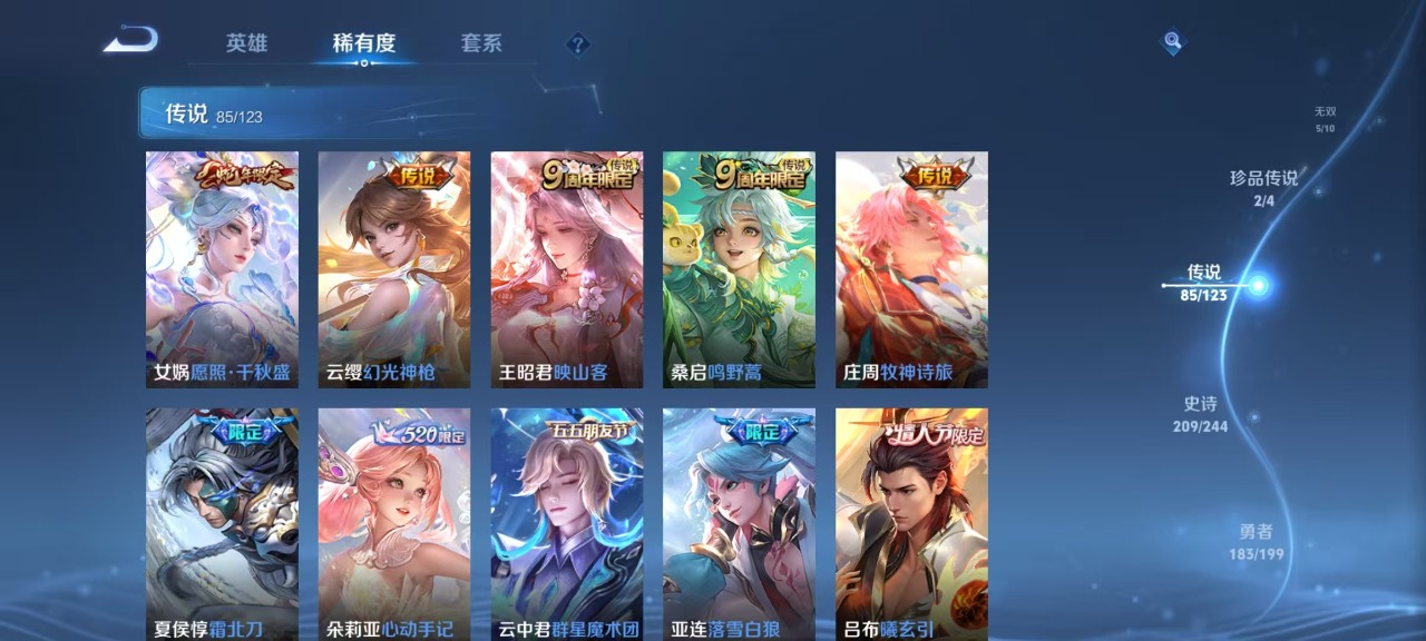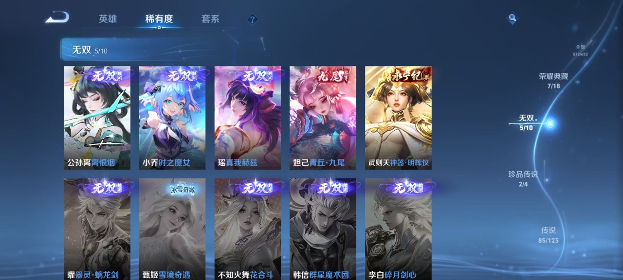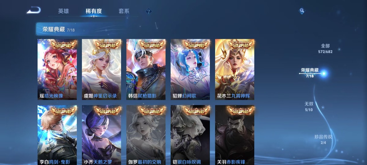 v10 7典藏 5无双 2珍品传说 85传说 123英雄 572皮肤 典藏英雄武则天 可修改实名 荣耀水晶:拾光映像瑶典藏神鉴启示录鸣剑·曳影九霄神辉木兰典藏弑呛猎影韩信典藏幻阙歌貂蝉典藏天鹅之梦小乔典藏 无双皮:离恨烟公孙离无双小乔时之魔女小乔无双真我赫