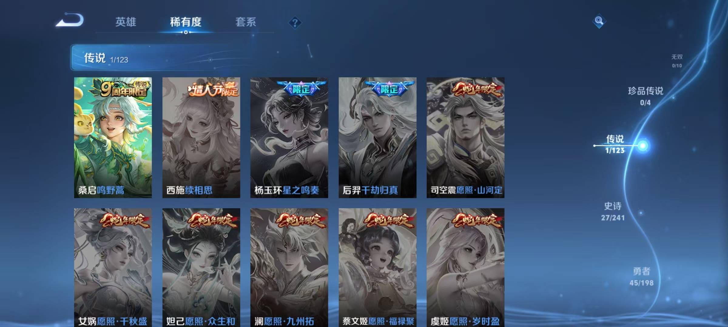 [9696320]v5 1传说 113英雄 102皮肤 可修改实名 珍宝阁皮:蔷薇恋人 限定皮:鸣野蒿五谷丰年朱雀志守约年限匿光追影者 史诗皮:紫霞仙子黄金分割率特工魅影千年之狐魅语偶像歌手猫狗日记-孙策修罗天才门将星夜王子幽灵船长鬼剑武藏金属风暴原初追逐者圣诞狂欢圣诞恋歌鹰眼统帅魅力维加斯黎明之约赏金猎手无心