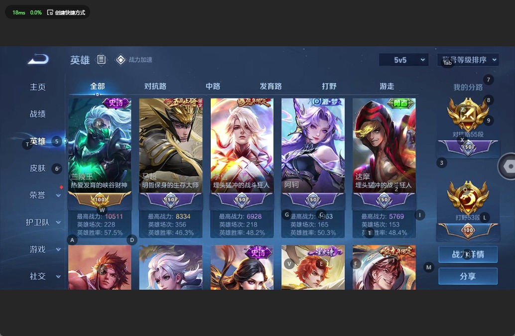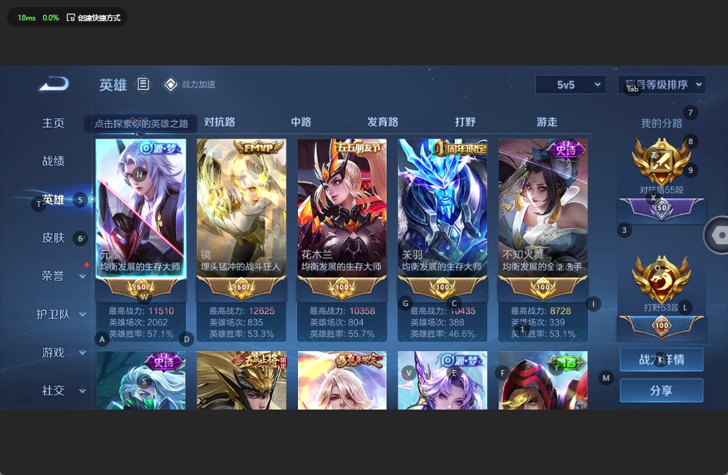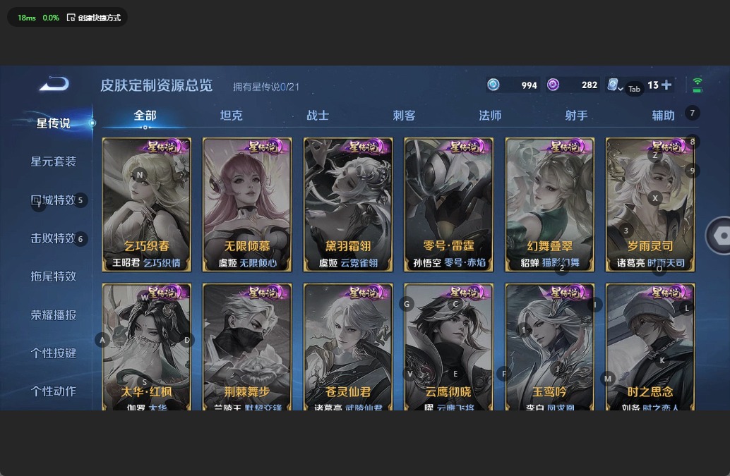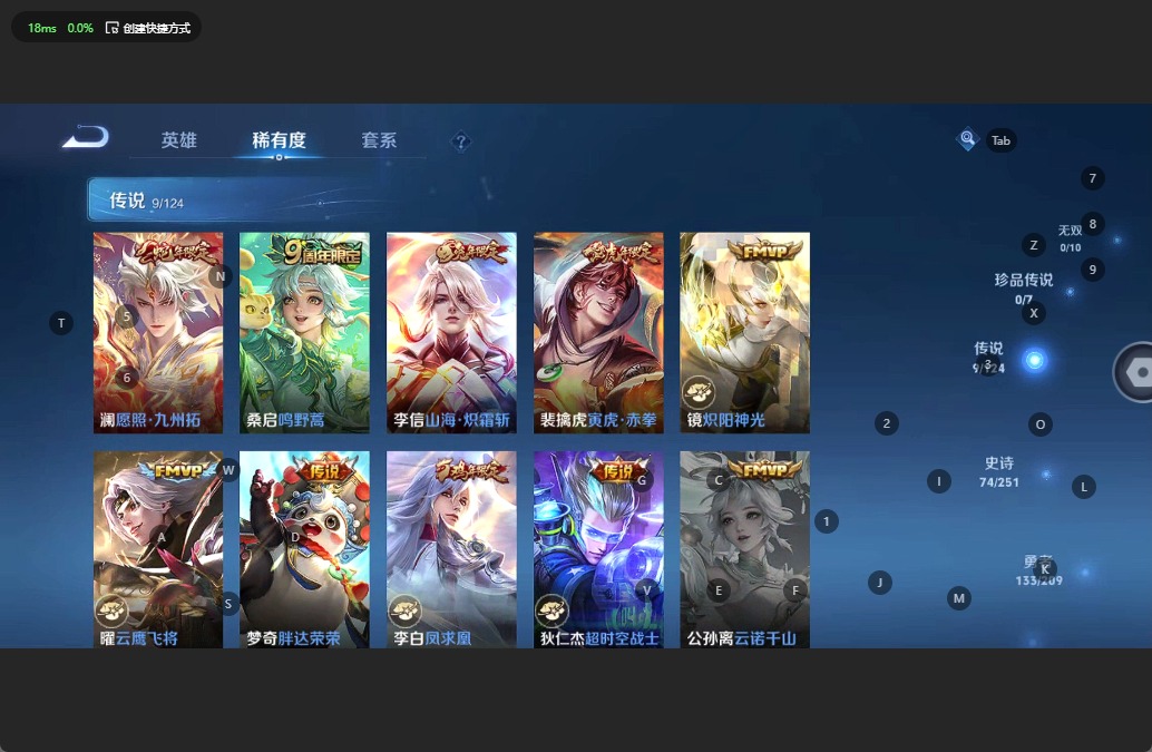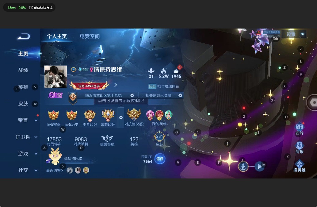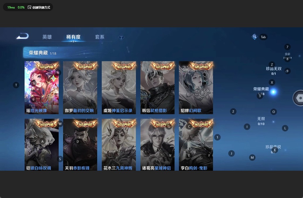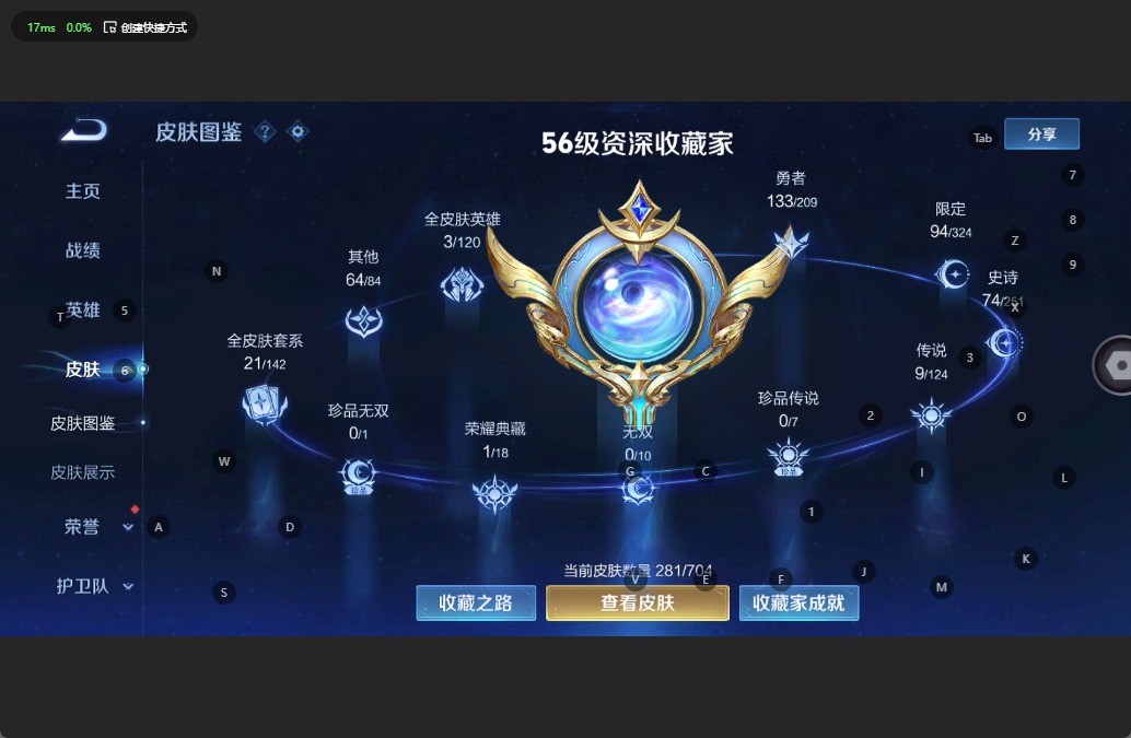 v7 1典藏 9传说 123英雄 281皮肤 可修改实名 荣耀水晶:拾光映像瑶典藏 传说皮:山海·炽霜斩李信年限云鹰飞将小将军炽阳神光胖达荣荣超时空战士-狄仁杰 珍宝阁皮:妄想食味优雅恋人蔷薇恋人女武神 限定皮:愿照·九州拓澜年限鸣野蒿凤求凰白切鸡神威电光马