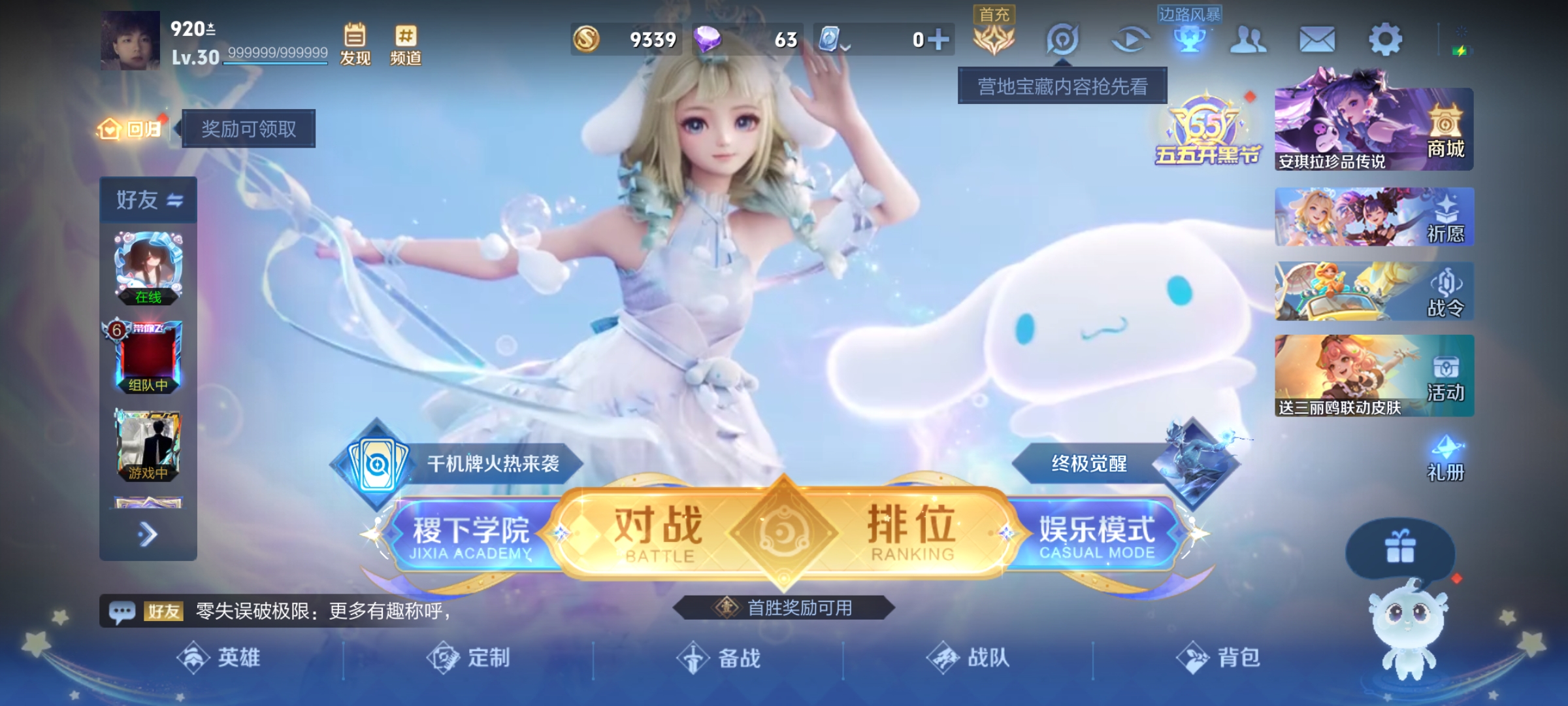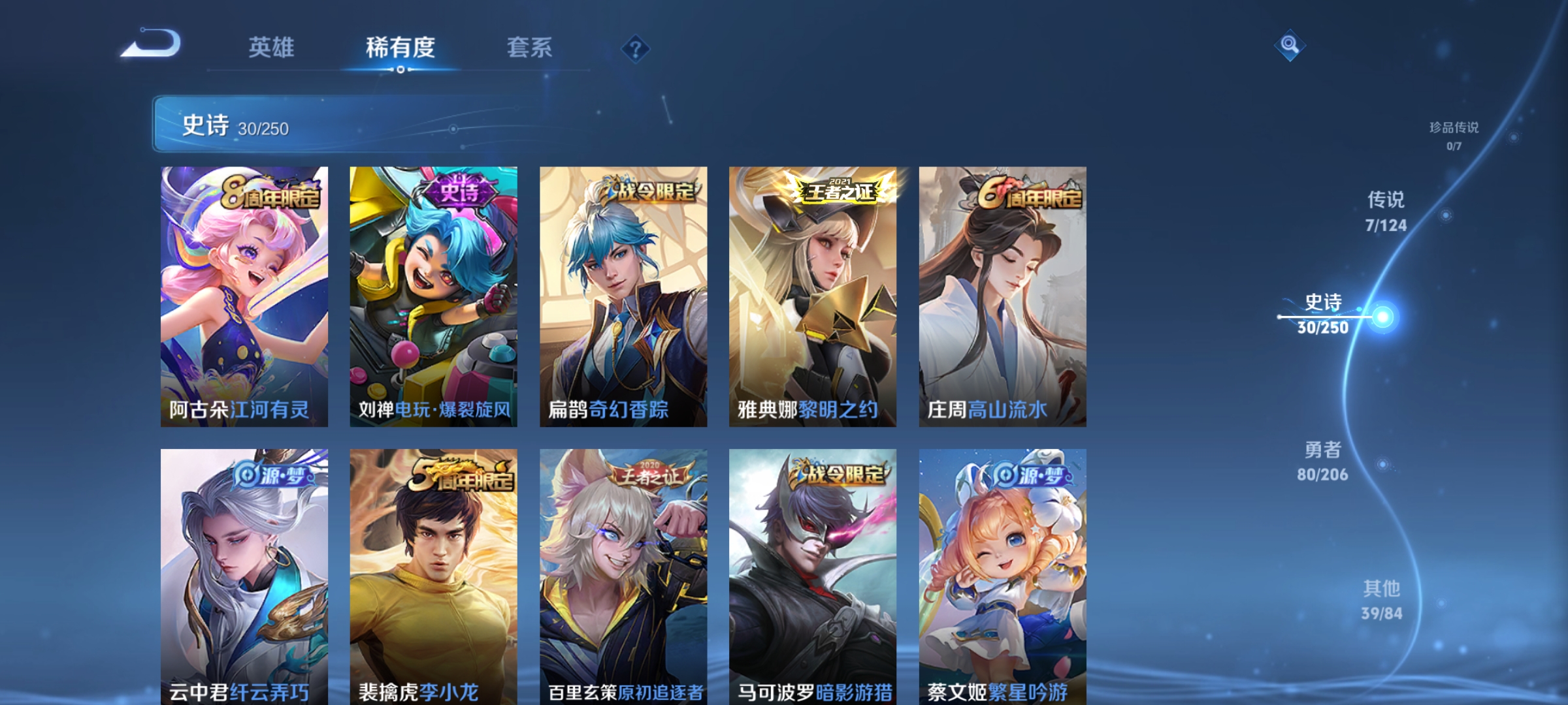 -可二次-120英雄-156皮肤-7传说-30史诗 冰冠公主-雅典娜 街头霸王-韩信