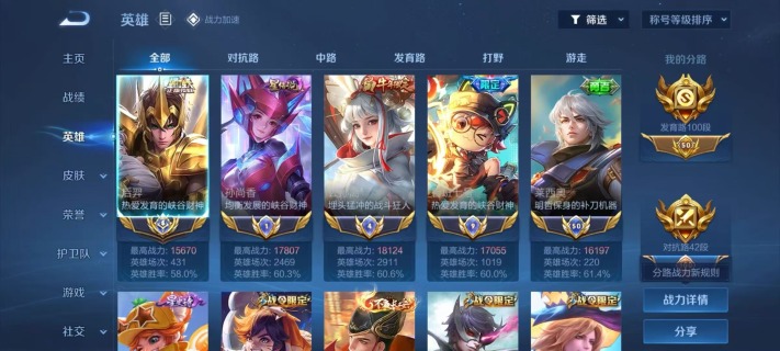 安卓qq 100段发育路 大国后羿 1.7w数字标1孙尚香 1.8w数字标4公孙离 1.7w数字标9鲁班七号 小国莱西奥 小国李元芳 小国蒙犽 有魔方