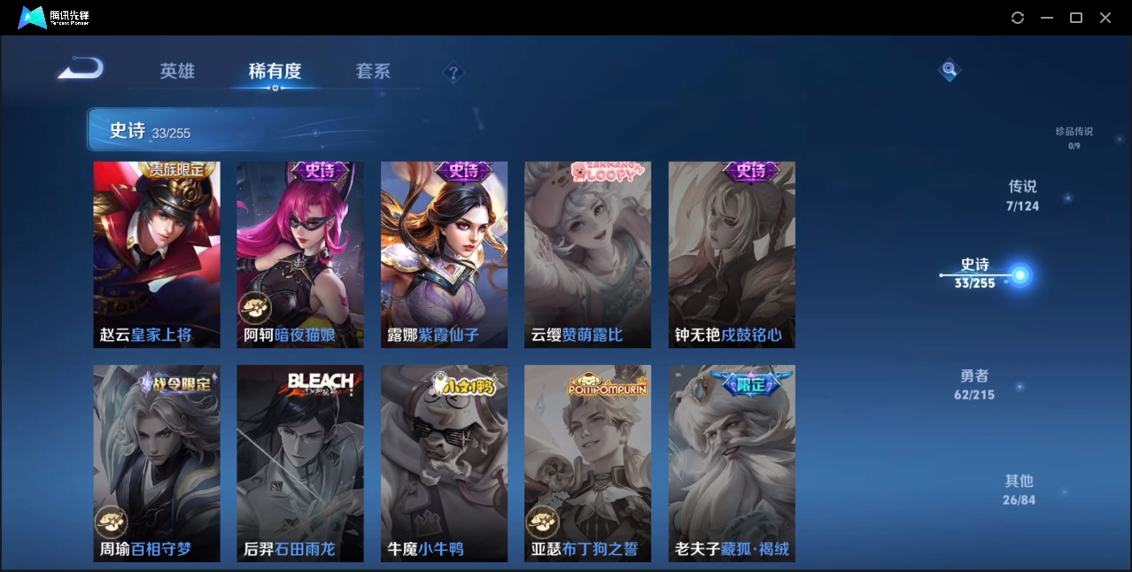 【可二次-7传说/33史诗】安卓q-贵族积分17989-v6-128皮肤-118英雄 【传说皮肤】 澜-愿照·九州拓 虞姬-愿照·岁时盈 澜-逐花归海 马超-无双飞将 镜-炽阳神光 刘备-时之恋人 桑启-鸣野蒿 【史诗皮肤】 大司命-东方月初 盘古-敬我三分 阿轲-暗夜猫娘 刘禅-鸭鸭历险记 狄仁杰-绮世丹青 露娜-紫霞仙子 甄姬-冰雪圆舞曲 貂蝉-唤灵魅影 瑶-遇见神鹿 蔡文姬-舞动绿茵 亚瑟-心灵战警 兰陵王-暗隐猎兽者 小乔-缤纷独角兽 夏侯惇-乘风破浪 花木兰-水晶猎龙者 吕布-末日机甲 曹操-幽灵船长 孙尚香-水果甜心 貂蝉-圣诞恋歌 宫本武藏-鬼剑武藏 赵云-未来纪元 狄仁杰-鹰眼统帅 孙尚香-蔷薇恋人 伽罗-箭羽风息 张飞-乱世虎臣 狄仁杰-魔术师 赵云-皇家上将 sf11868 营地id:522675169