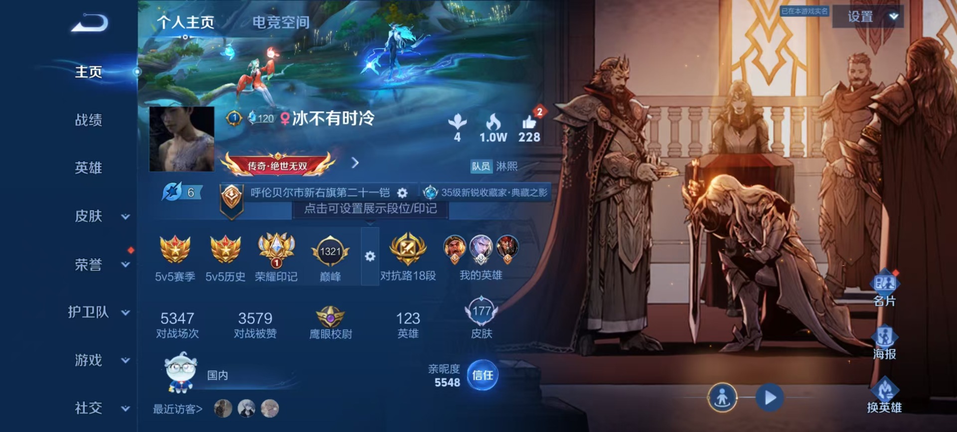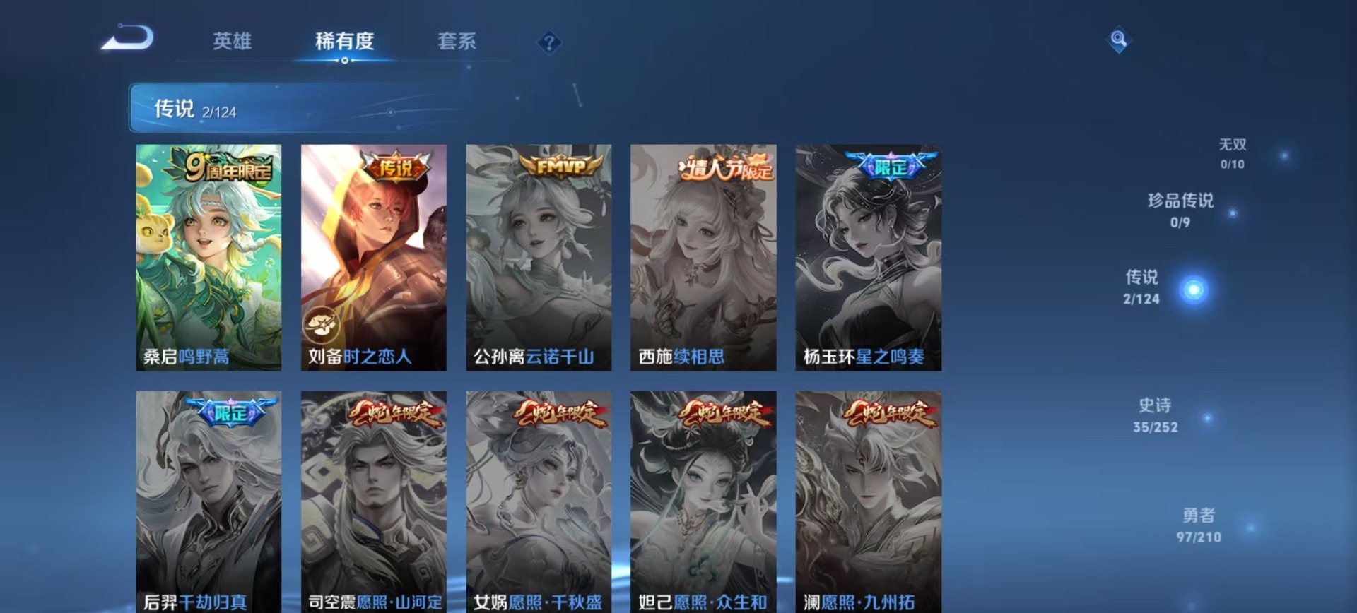 v5 1典藏 2传说 123英雄 177皮肤 可修改实名 女号 荣耀水晶:银白咏叹调倪克斯侍卫 传说皮:时之恋人-刘备电焊工 珍宝阁皮:胡桃夹子蔷薇恋人 限定皮:鸣野蒿魔法小厨娘高山流水李小龙猪悟能山海·玄木吟马可年限 史诗皮:星界战将龙之律动蔬乡物语鲁班七号战舞者