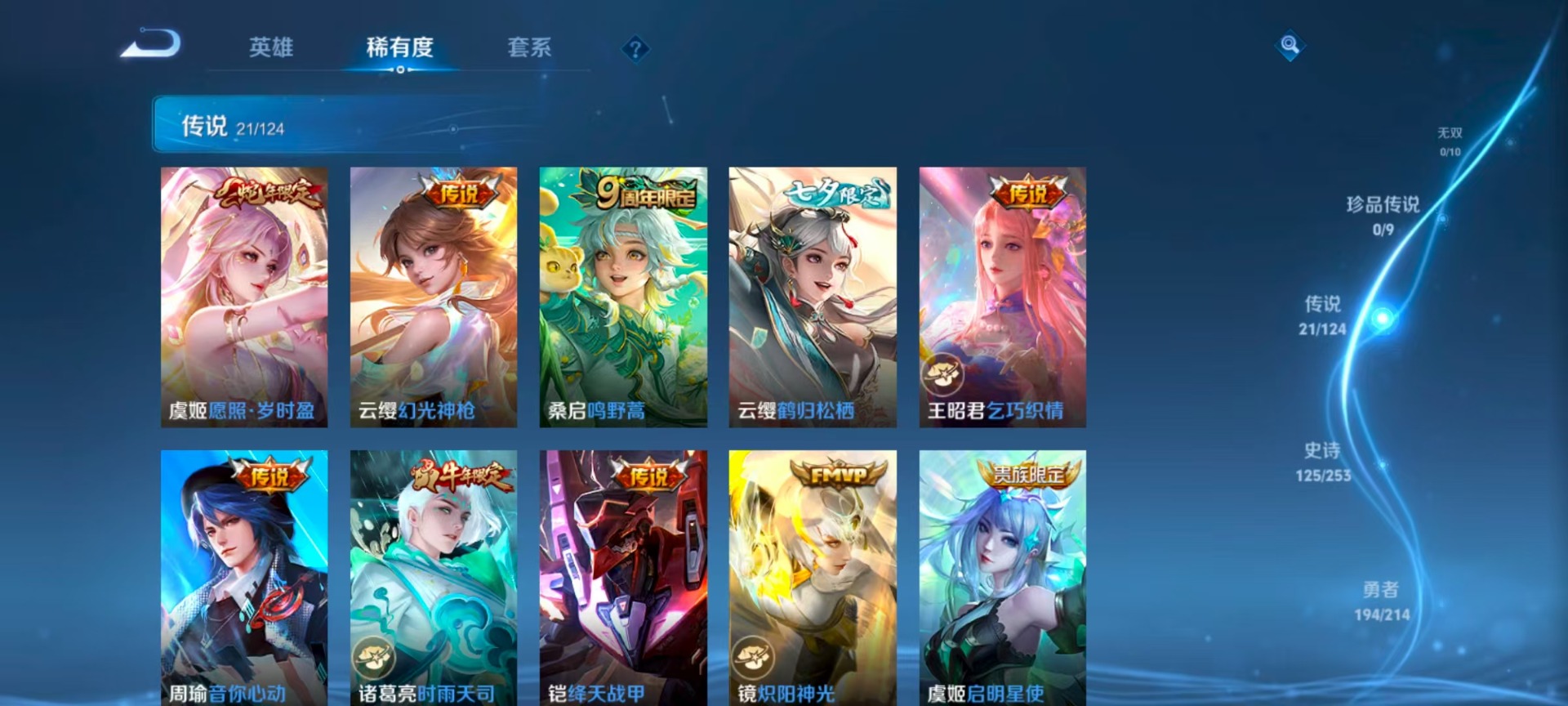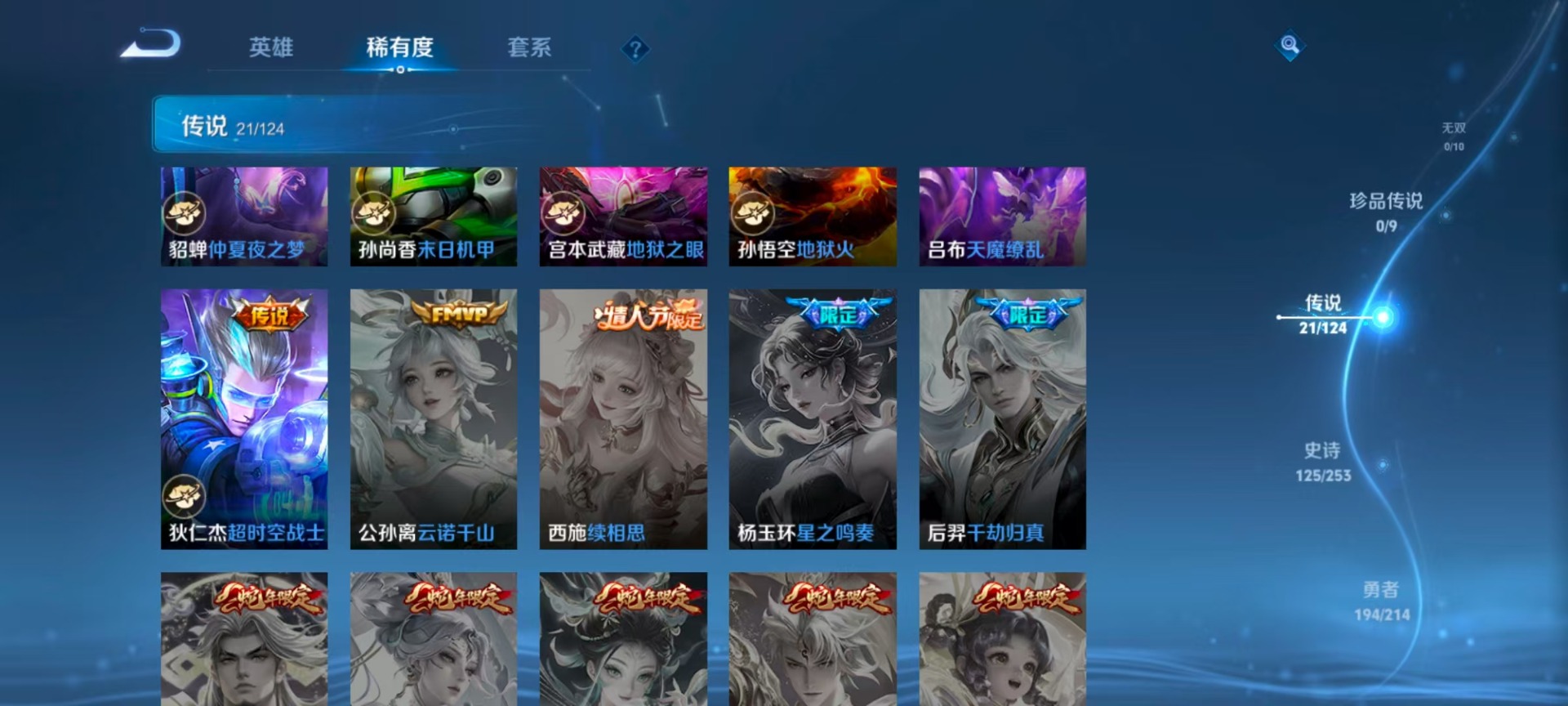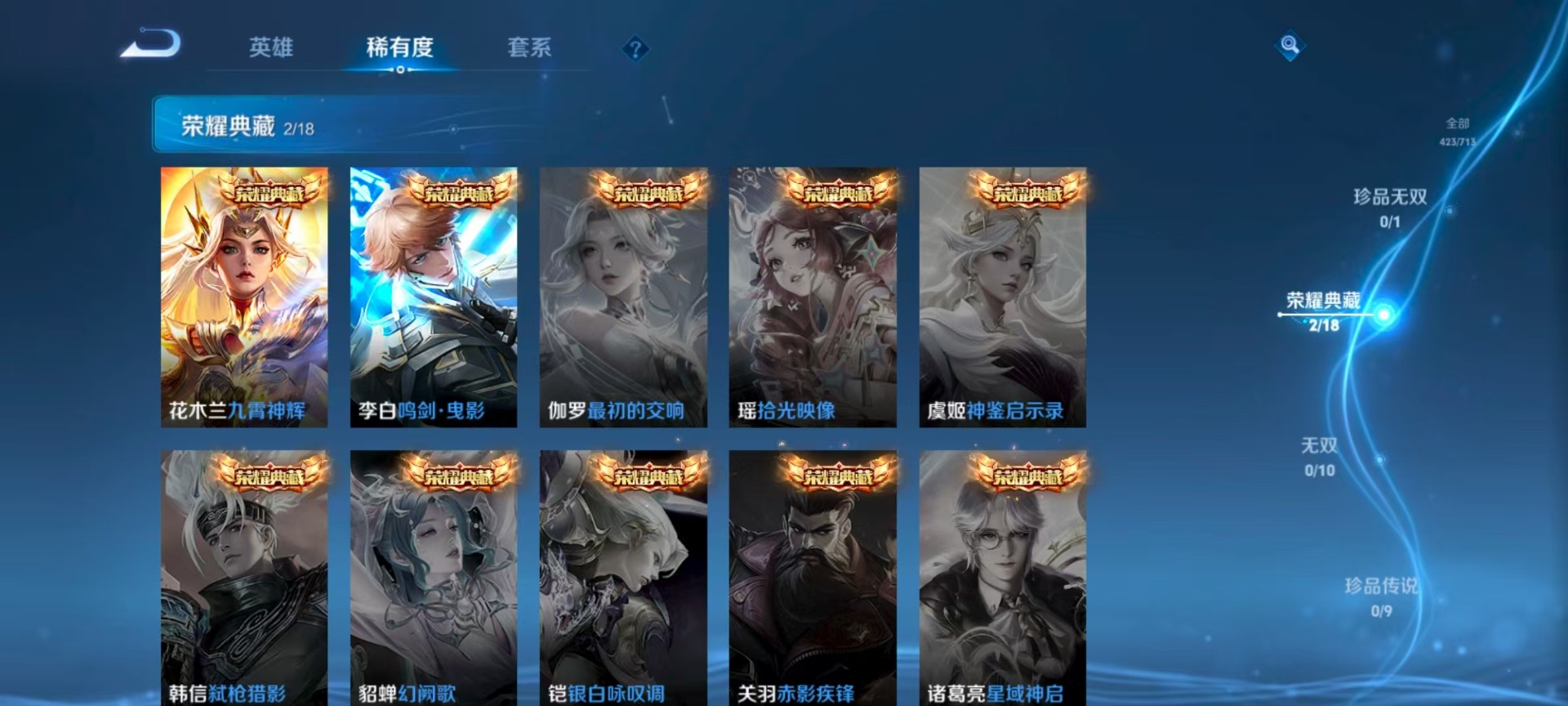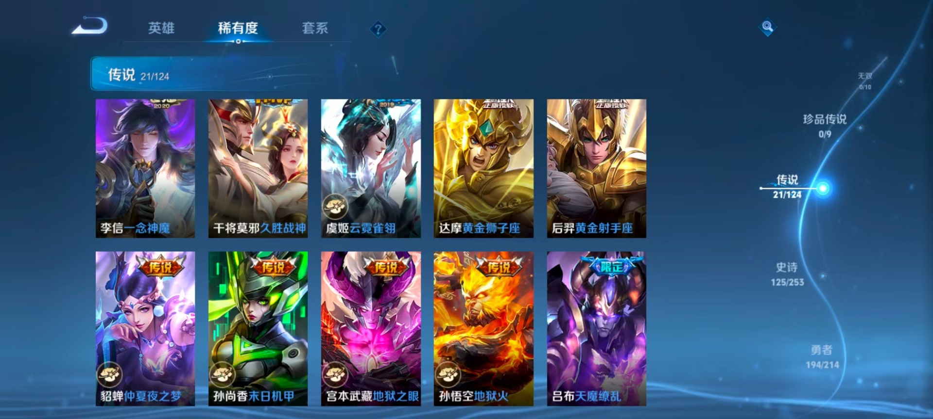 v8 2典藏 21传说 124英雄 423皮肤 可修改实名 荣耀水晶:鸣剑·曳影九霄神辉木兰典藏 传说皮:幻光神呛黄金狮子座黄金射手座地狱火仲夏夜之梦大飞蛾地狱之眼末日机甲-孙尚香绿蚂蚱云霓雀翎一念神魔久胜战神炽阳神光音你心动-周瑜乞巧织情绛天战甲鸡嘴战神