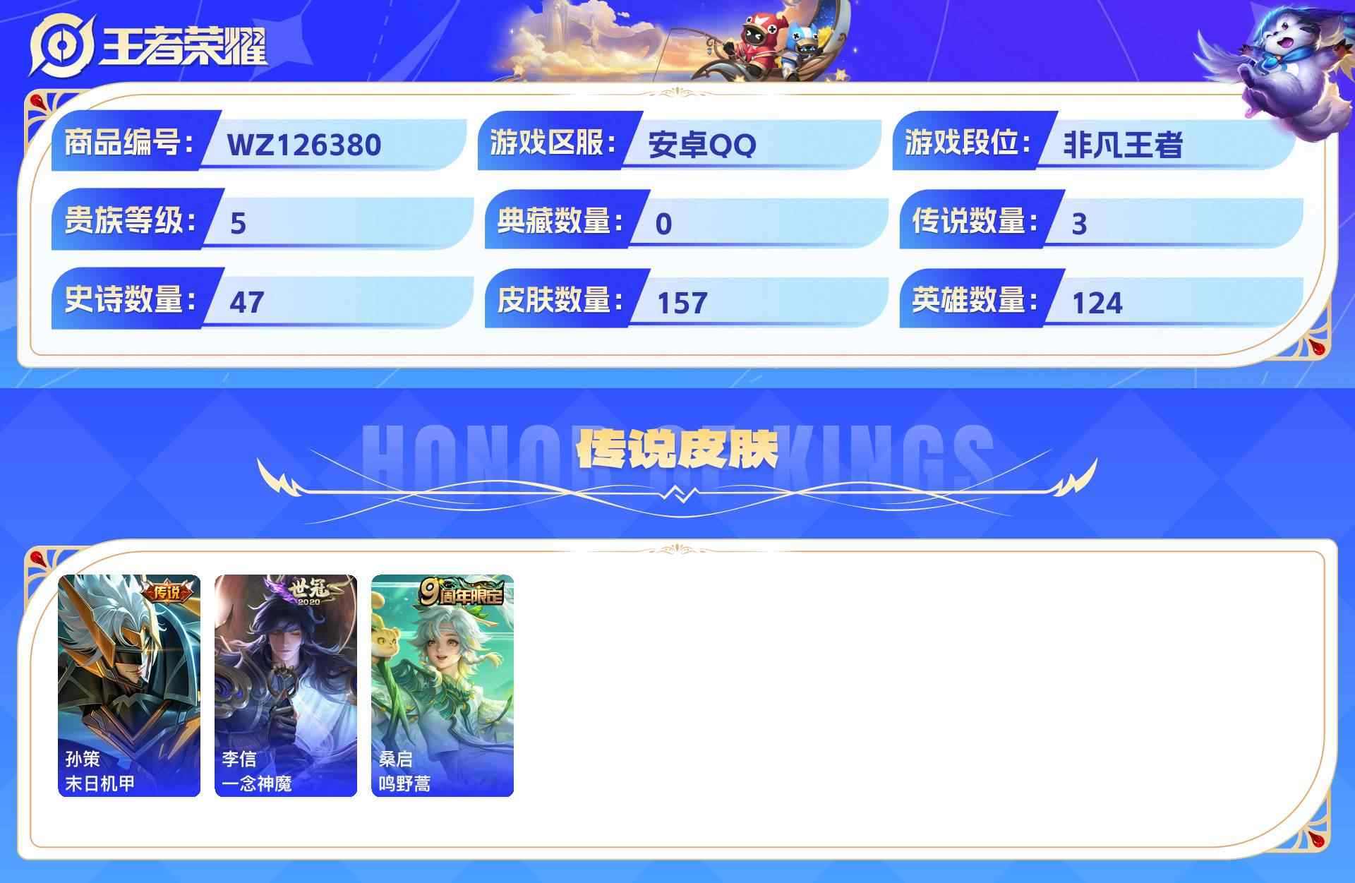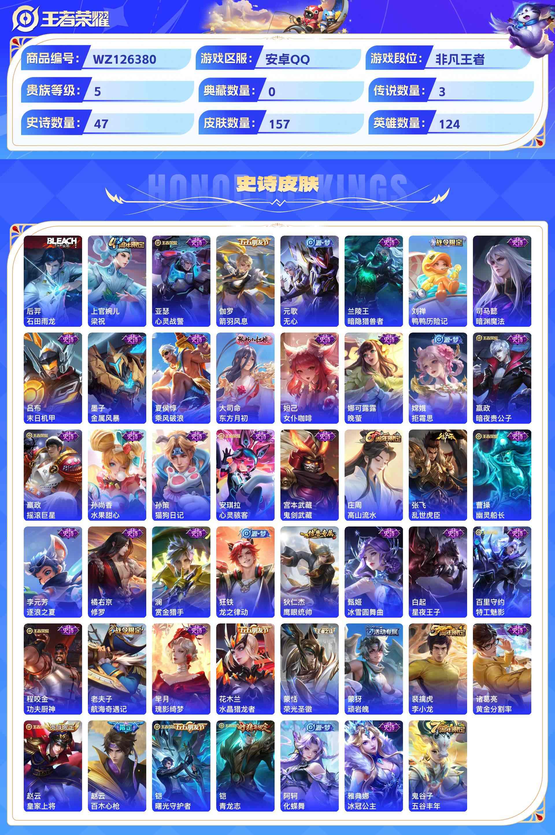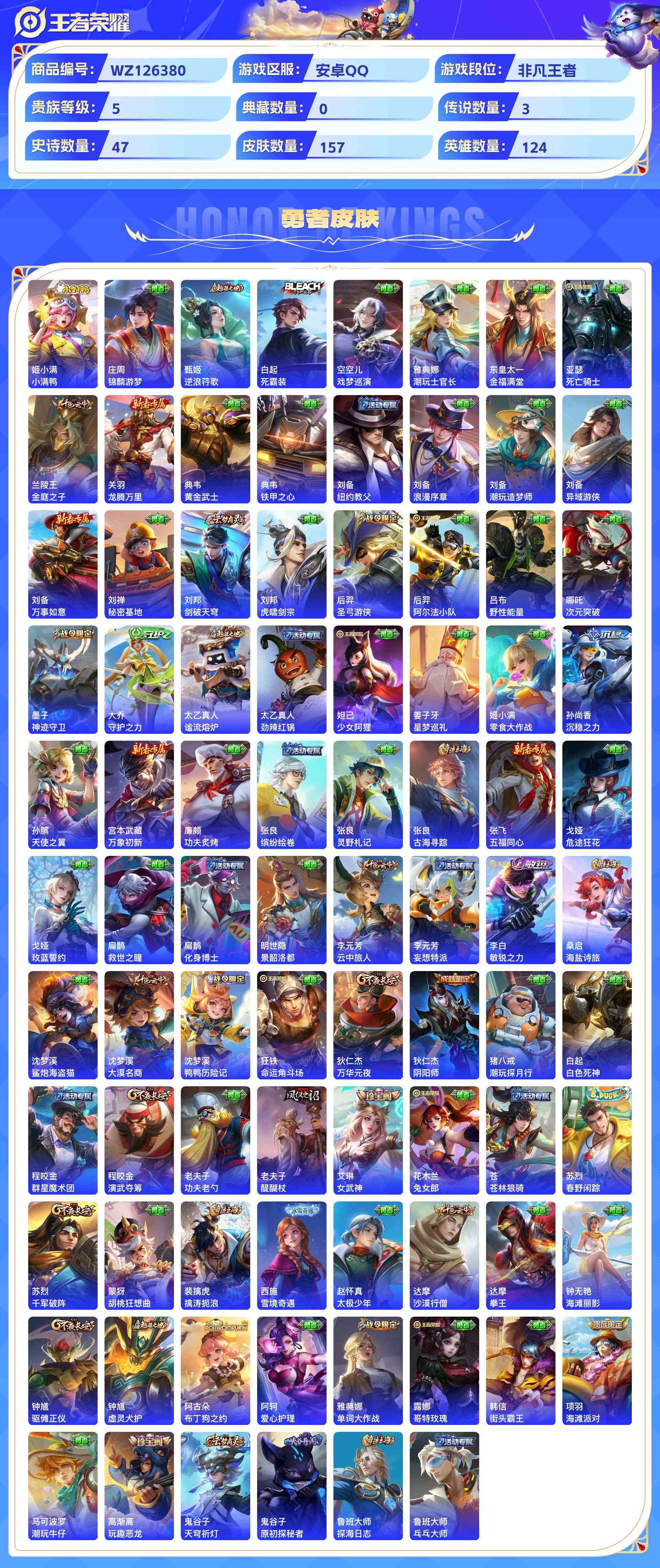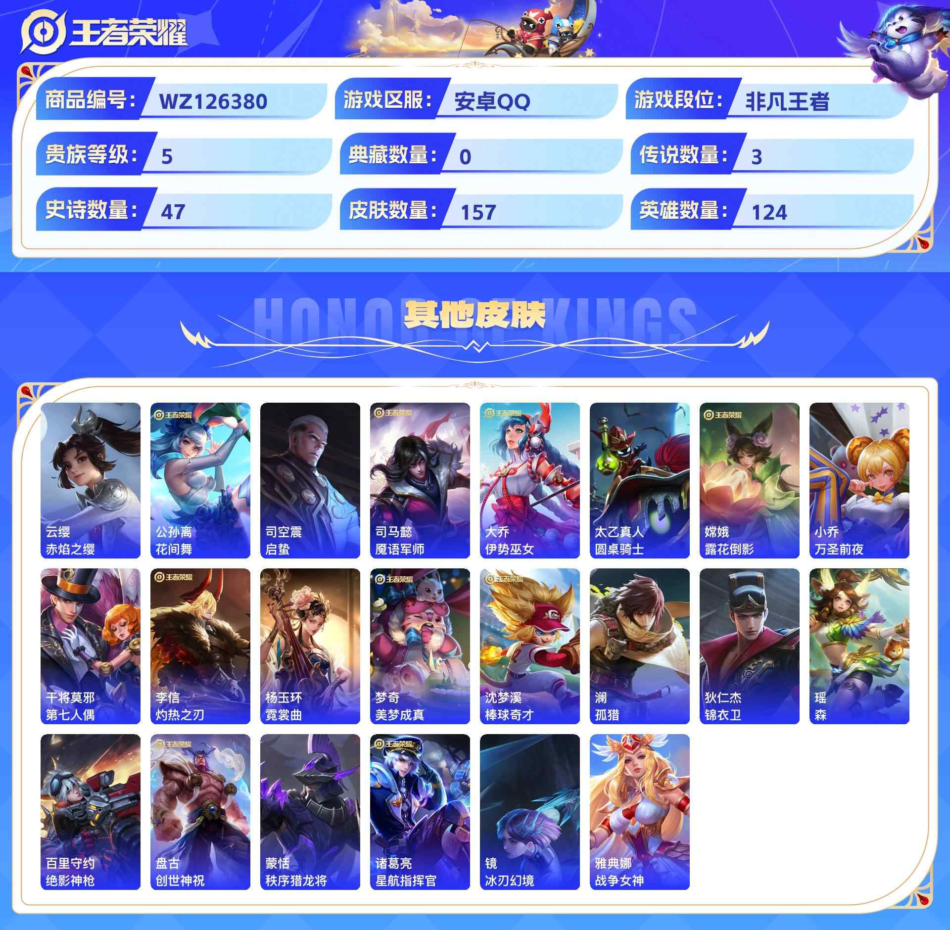 wz126380|安卓qq 157皮 贵族5级 3传说 4个性按键