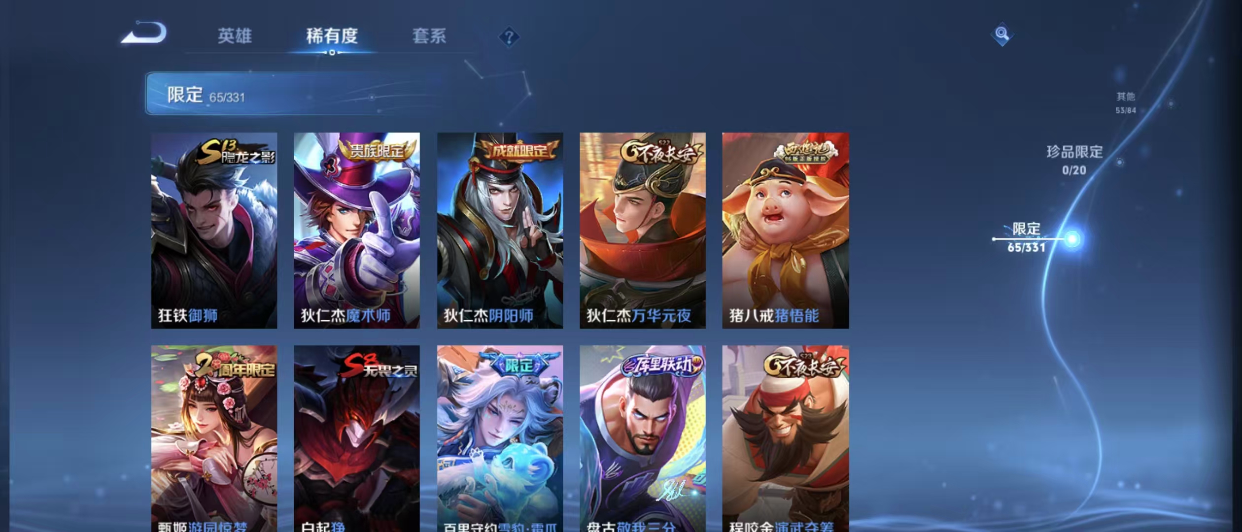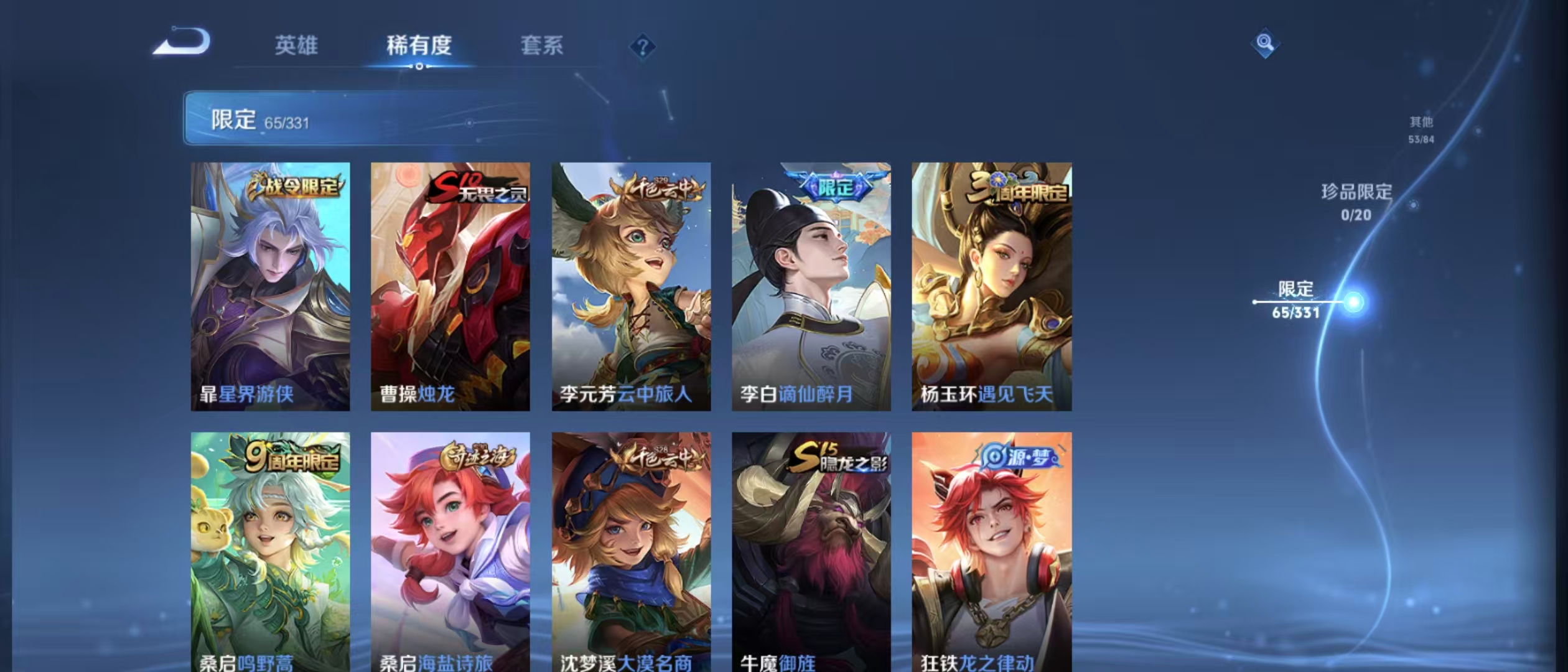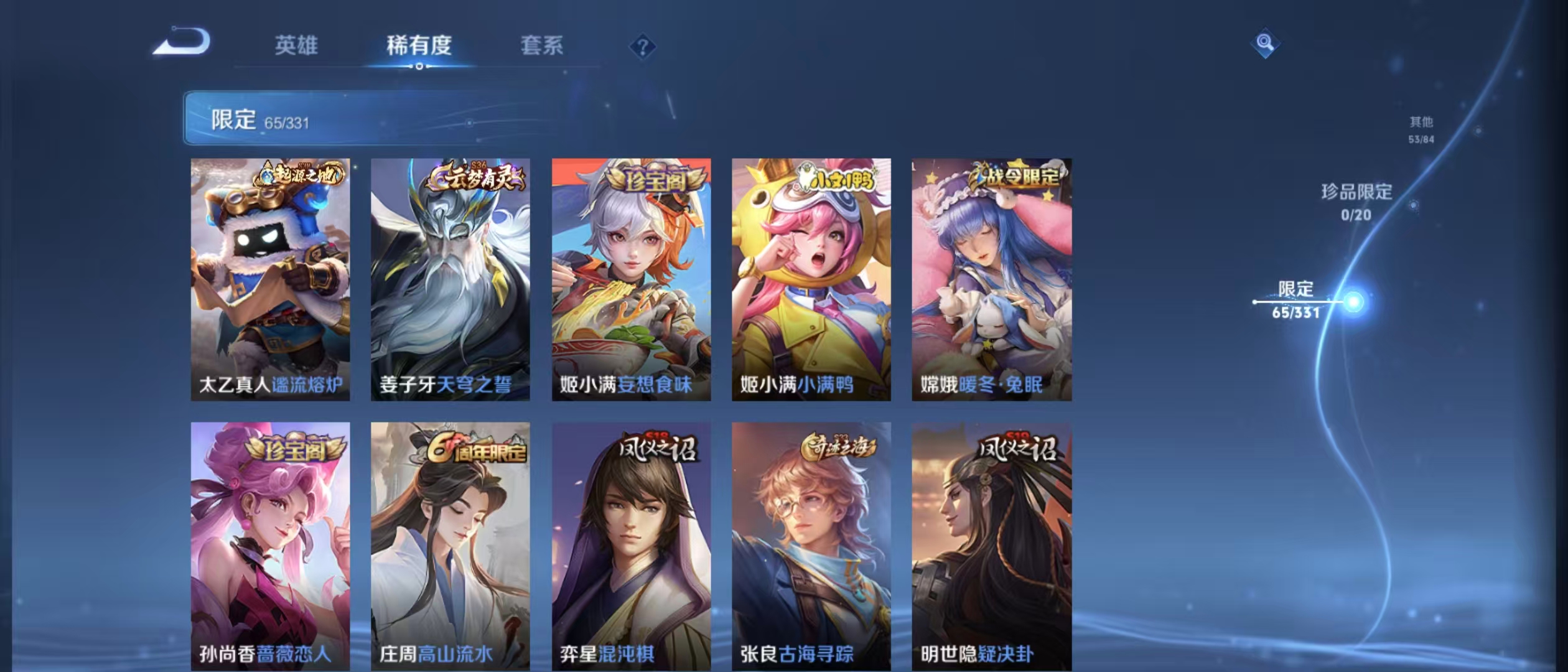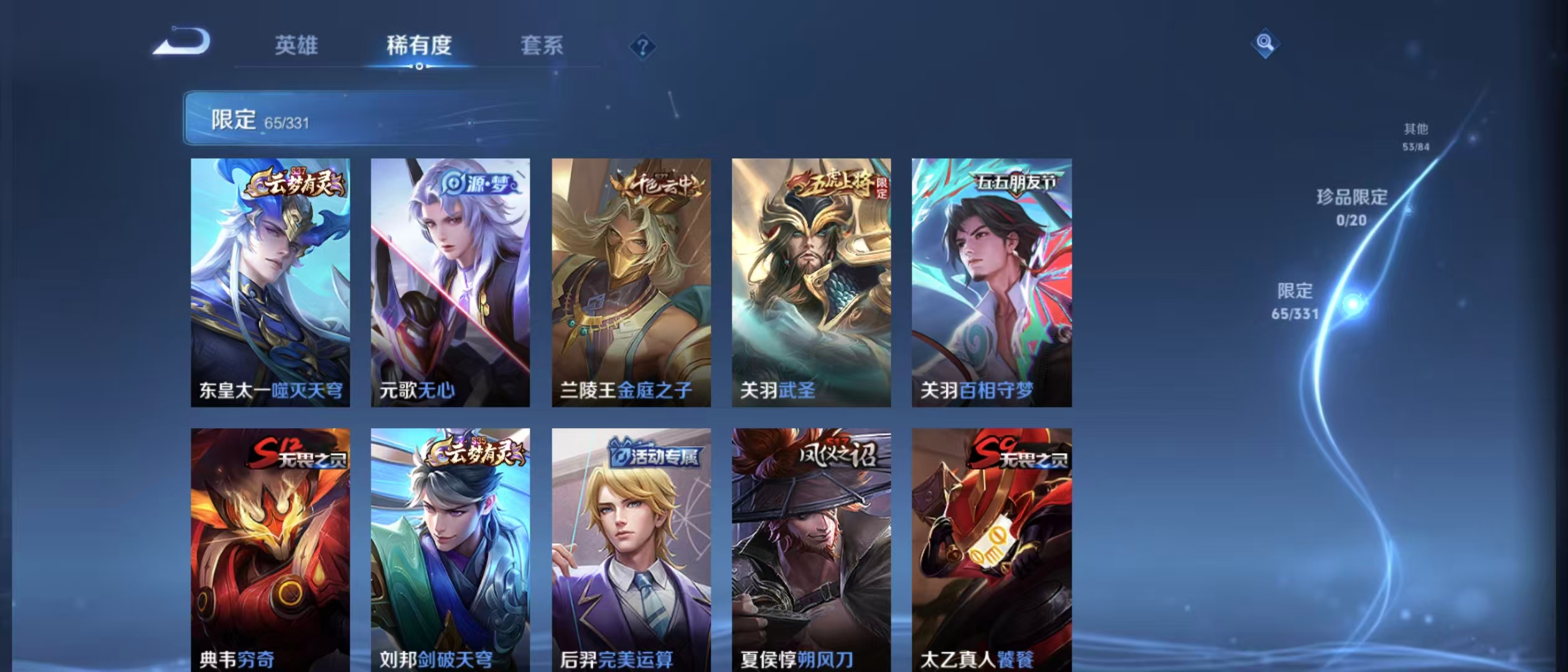 安卓qq/v7/尊贵铂金/221皮肤/125英雄/1典藏/0珍品无双/0无双/0珍品传说/8传说/45史诗/9稀有英雄