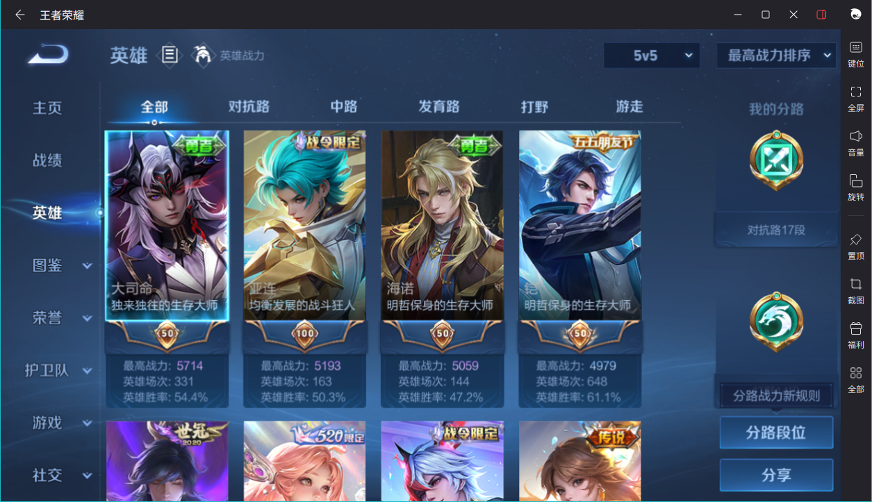 [10191527]实名: 可修改 性别: 男号 贵族等级: v5 英雄数: 70 皮肤数: 78 传说皮: 一念神魔朵莉亚心动手记幻光神呛 限定皮: 鸣野蒿