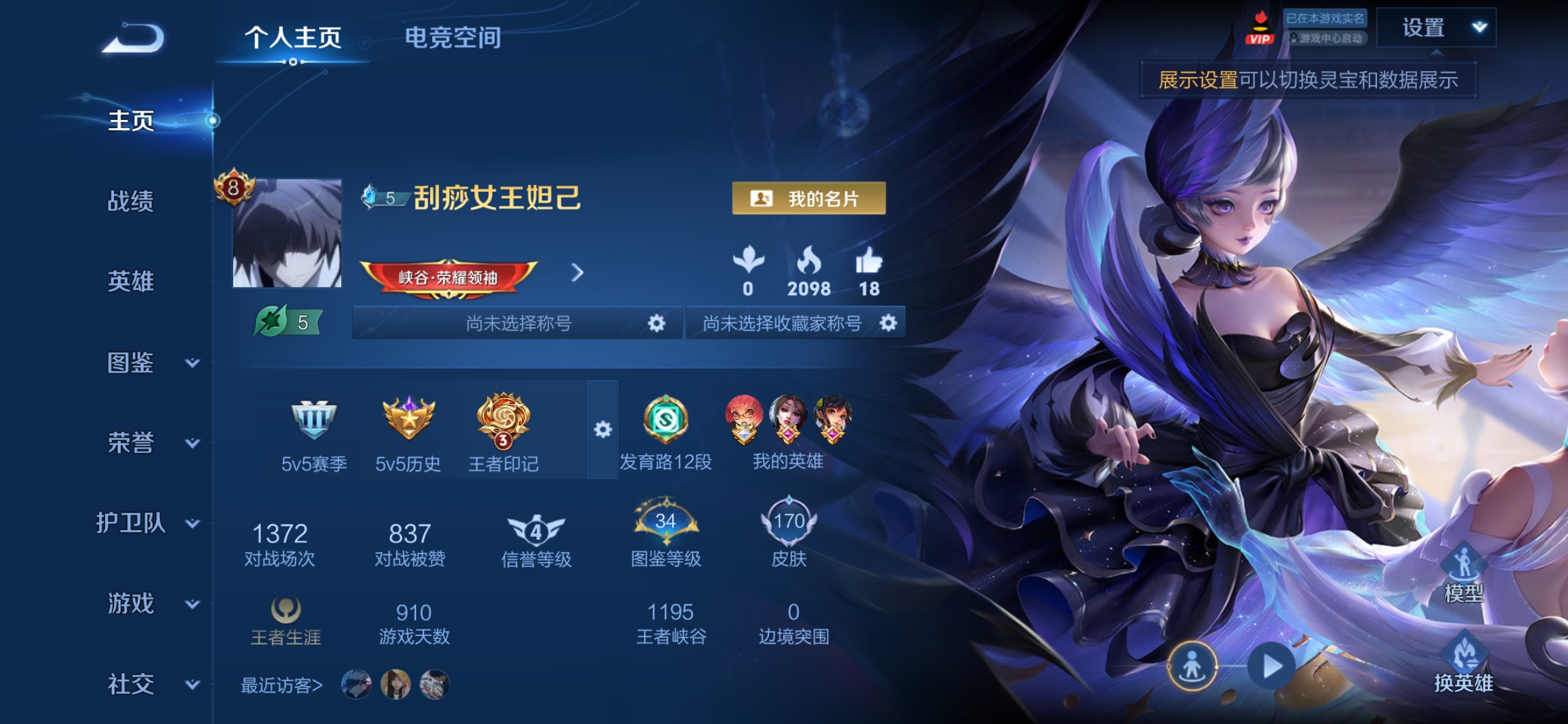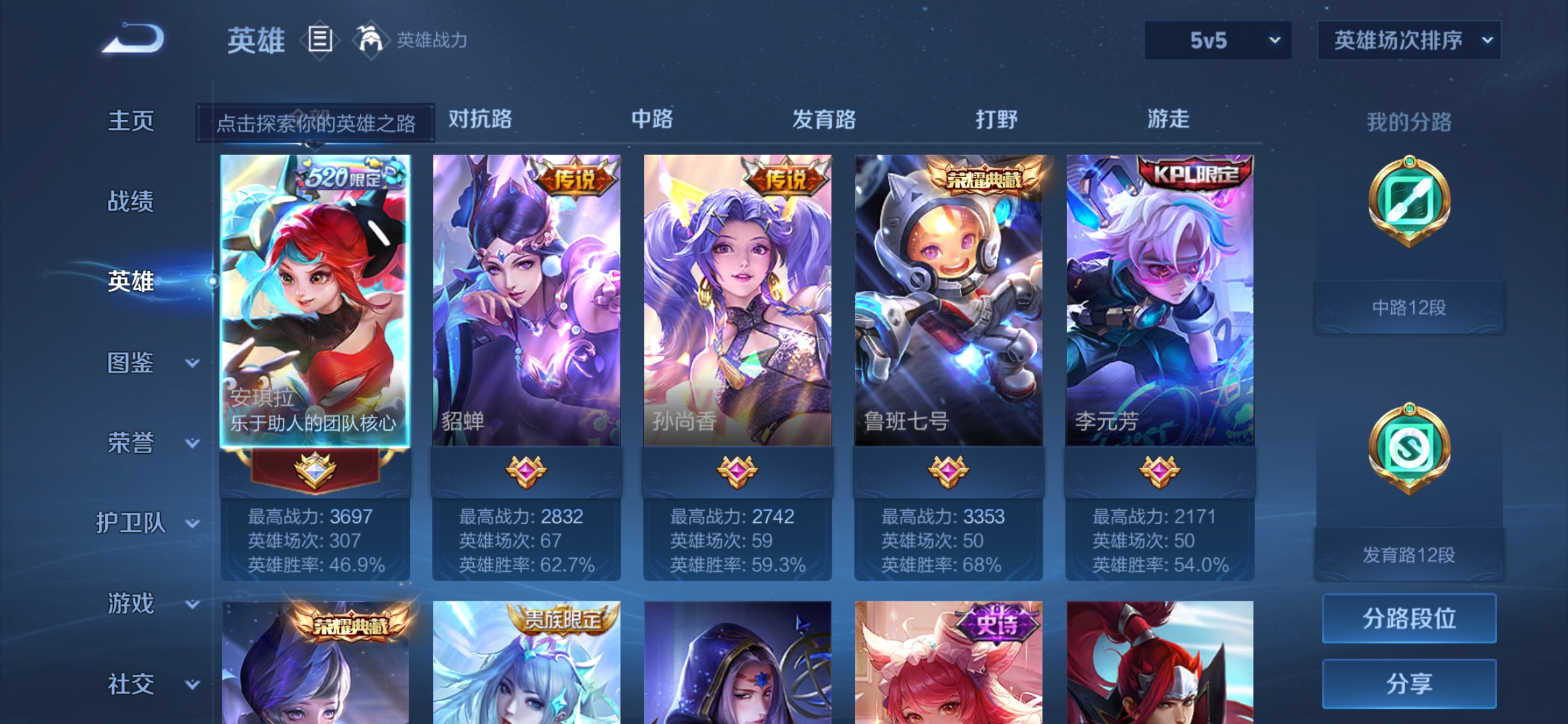 [10210594]实名: 可修改 贵族等级: v8 英雄数: 112 皮肤数: 170 荣耀水晶: 天鹅之梦星空梦想 传说皮: 云霓雀翎仲夏夜之梦乞巧织情音你闪耀追逃游戏安琪拉 限定皮: 云端筑梦师【由于赛季三个月更新一次,段位皆有上号为准,对段位有要求这谨慎下单!!!】