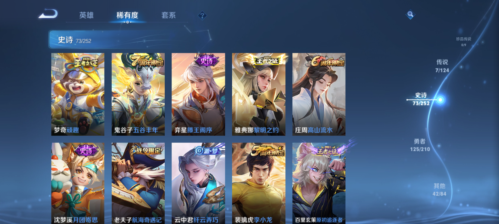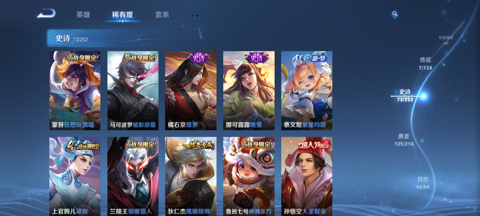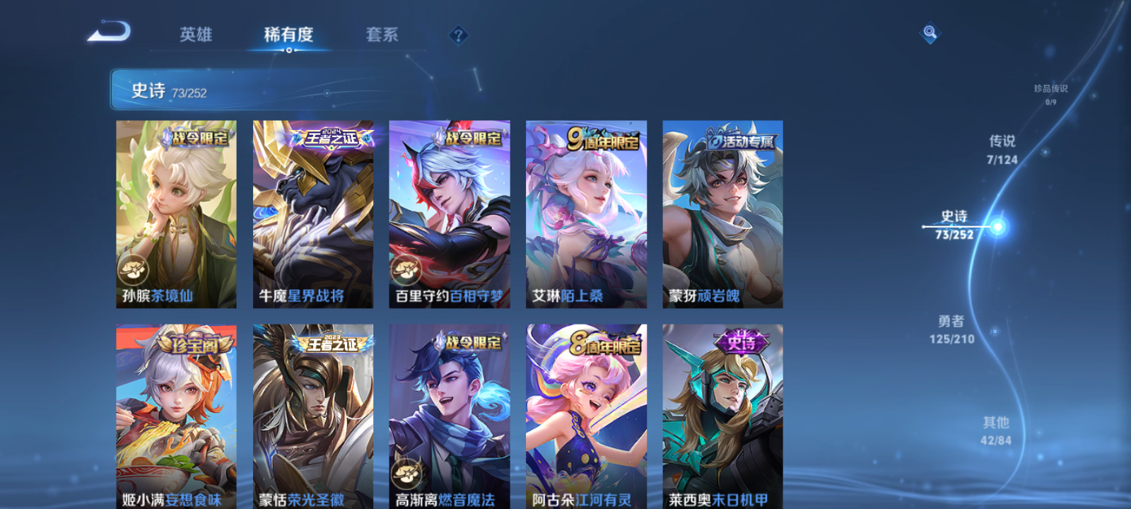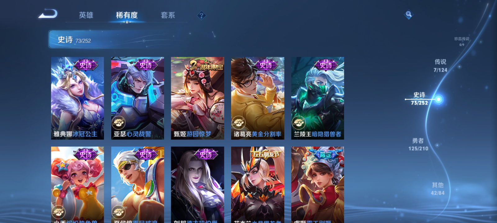 [10210653]【百星印记 发育路42段 金牌艾琳 1典藏 7传说 73史诗 2星元】v7-248皮肤-124英雄【典藏皮肤】 孙尚香-杀手不太冷【传说皮肤】 李白-凤求凰 嬴政-玄雷天君 公孙离-记忆之芯 赵云-淬星耀世 孙尚香-末日机甲 狄仁杰-超时空战士 桑启-鸣野蒿【史诗皮肤】 孙悟空-大圣娶亲 虞姬-霸王别姬 艾琳-陌上桑 马可波罗-暗影游猎 鲁班七号-电玩小子 蔡文姬-繁星吟游 项羽-苍穹之光 露娜-紫霞仙子 甄姬-冰雪圆舞曲 梦奇-顽趣 老夫子-航海奇遇记 橘右京-修罗 阿轲-节奏热浪 白起-星夜王子 程咬金-功夫厨神 李元芳-逐浪之夏 刘禅-天才门将 蔡文姬-舞动绿茵 铠-曙光守护者 百里守约-特工魅影 亚瑟-心灵战警 诸葛亮-黄金分割率 兰陵王-暗隐猎兽者 小乔-缤纷独角兽 夏侯惇-乘风破浪 花木兰-水晶猎龙者 韩信-白龙吟 吕布-末日机甲 李白-千年之狐 曹操-幽灵船长 妲己-魅力维加斯 孙尚香-水果甜心 妲己-女仆咖啡 刘邦-德古拉伯爵 雅典娜-冰冠公主 嬴政-白昼王子 兰陵王-驯魔猎人 沈梦溪-月团寄思 貂蝉-圣诞恋歌 宫本武藏-鬼剑武藏 廉颇-地狱岩魂 吕布-圣诞狂欢 墨子-金属风暴 王昭君-偶像歌手 嬴政-摇滚巨星 赵云-未来纪元 莱西奥-末日机甲 云中君-纤云弄巧 庄周-高山流水 裴擒虎-李小龙 上官婉儿-梁祝 狄仁杰-鹰眼统帅 孙尚香-蔷薇恋人 甄姬-游园惊梦 杨玉环-遇见飞天 蒙犽-狂想玩偶喵 雅典娜-黎明之约 狄仁杰-魔术师 赵云-皇家上将 ky5418 营地id:225936725