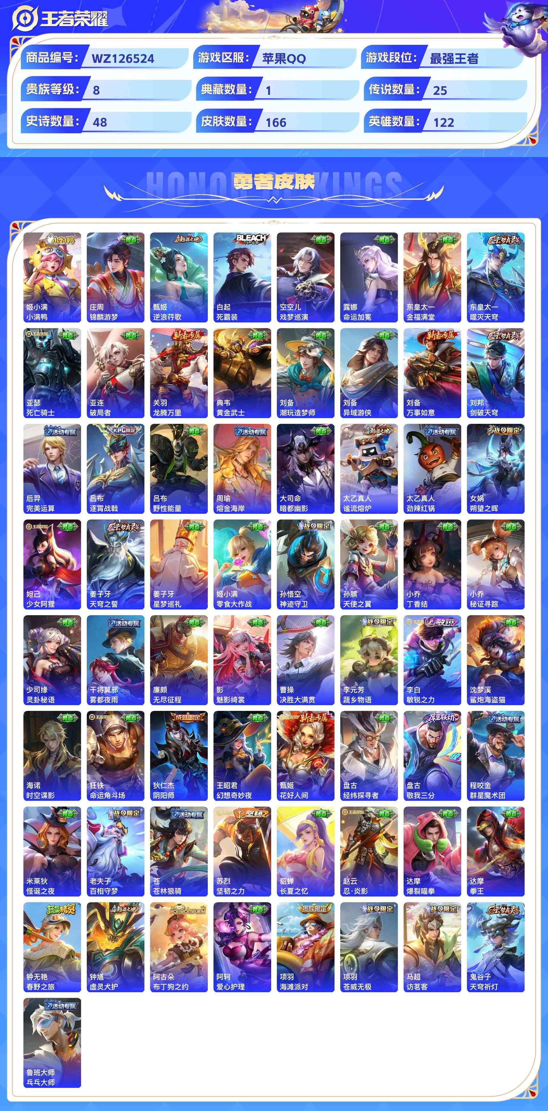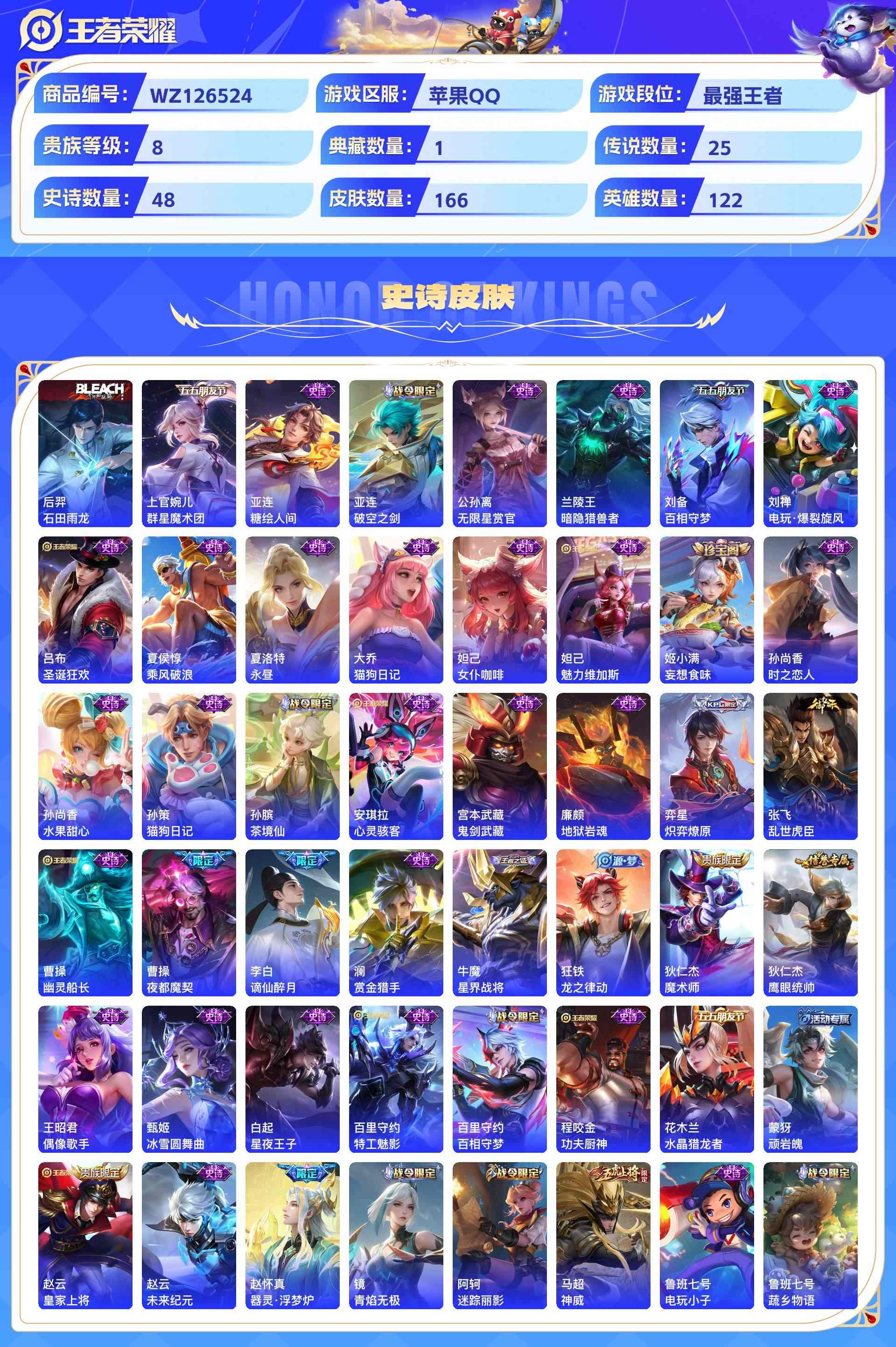 _2077236-苹果qq166皮贵族8级1珍品无双1典藏4珍品传说3无双25传说48史诗【珍品无双】馥梦繁花【荣耀典藏】九霄神辉【珍品传说】器灵·落星盏时之奇旅大耳狗之梦怪盗基德【无双限定】器灵·螭龙剑雪境奇遇群星魔术团【传说皮肤】绯月行群星魔术团幻光神呛落雪白狼祈雪灵祝影龙天霄时之恋人愿照·山河定千劫归真怒海麟威浮生妄愿照·千秋盛愿照·众生和乘龙·淬吴钩挚爱之约地狱之眼百相守梦星之鸣奏鸣野蒿愿照·九州拓愿照·福禄聚启明星使愿照·岁时盈祥瑞亨通黄金狮子座【史诗皮肤】石田雨龙群星魔术团糖绘人间破空之剑无限星赏官暗隐猎兽者百相守梦电玩·爆裂旋风圣诞狂欢乘风破浪永昼猫狗日记女仆咖啡魅力维加斯妄想食味时之恋人水果甜心猫狗日记茶境仙心灵骇客鬼剑武藏地狱岩魂炽弈燎原乱世虎臣幽灵船长夜都魔契谪仙醉月赏金猎手星界战将龙之律动魔术师鹰眼统帅偶像歌手冰雪圆舞曲星夜王子特工魅影百相守梦功夫厨神水晶猎龙者顽岩魄皇家上将未来纪元器灵·浮梦炉青焰无极迷踪丽影神威电玩小子蔬乡物语【勇者皮肤】小满鸭锦麟游梦逆浪荇歌死霸装戏梦巡演命运加冕金福满堂噬灭天穹死亡骑士破局者龙腾万里黄金武士潮玩造梦师异域游侠万事如意剑破天穹完美运算逐霄战戟野性能量熔金海岸暗都幽影谧流熔炉劲辣红锅朔望之晖少女阿狸天穹之誓星梦巡礼零食大作战神迹守卫天使之翼丁香结秘证寻踪灵卦秘语雾都夜雨无尽征程魅影绮裳决胜大满贯蔬乡物语敏锐之力鲨炮海盗猫时空谍影命运角斗场阴阳师幻想奇妙夜花好人间经纬探寻者敬我三分群星魔术团怪诞之夜百相守梦苍林狼骑坚韧之力长夏之忆忍·炎影爆裂喵拳拳王春野之旅虚灵犬护布丁狗之约爱心护理海滩派对苍威无极访茗客天穹祈灯乓乓大师【其他皮肤】赤焰之缨午夜歌剧院启蛰海军大将战争骑士海之征途占星师碧珀绯影超能战警埃及法老画中游年年有余潮流仙人剑舞者维京掠夺者秩序猎龙将龙域领主冰刃幻境金属狂潮