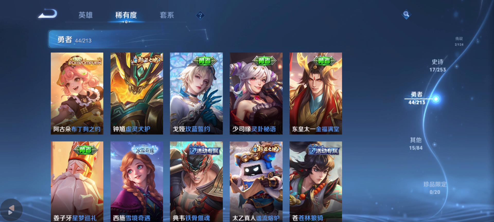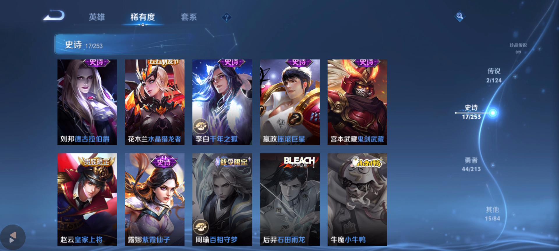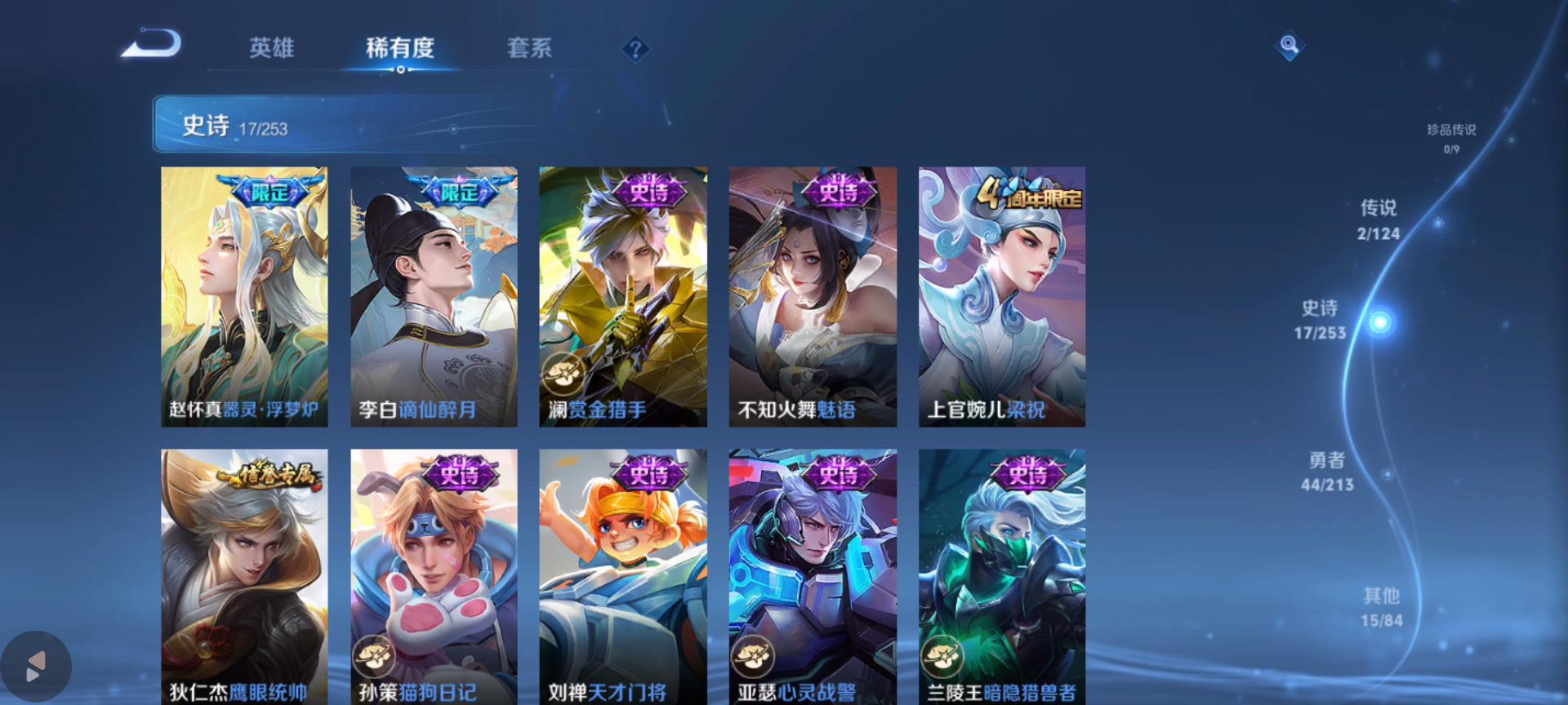 [10235212]【v5 1800场次 虞姬蛇限 17史诗】78皮肤-105英雄【传说皮肤】 虞姬-愿照·岁时盈 桑启-鸣野蒿【史诗皮肤】 李白-谪仙醉月 盘古-敬我三分 露娜-紫霞仙子 孙策-猫狗日记 不知火舞-魅语 刘禅-天才门将 亚瑟-心灵战警 兰陵王-暗隐猎兽者 花木兰-水晶猎龙者 李白-千年之狐 刘邦-德古拉伯爵 宫本武藏-鬼剑武藏 嬴政-摇滚巨星 上官婉儿-梁祝 狄仁杰-鹰眼统帅 赵云-皇家上将 ky5450 营地id:1664912746