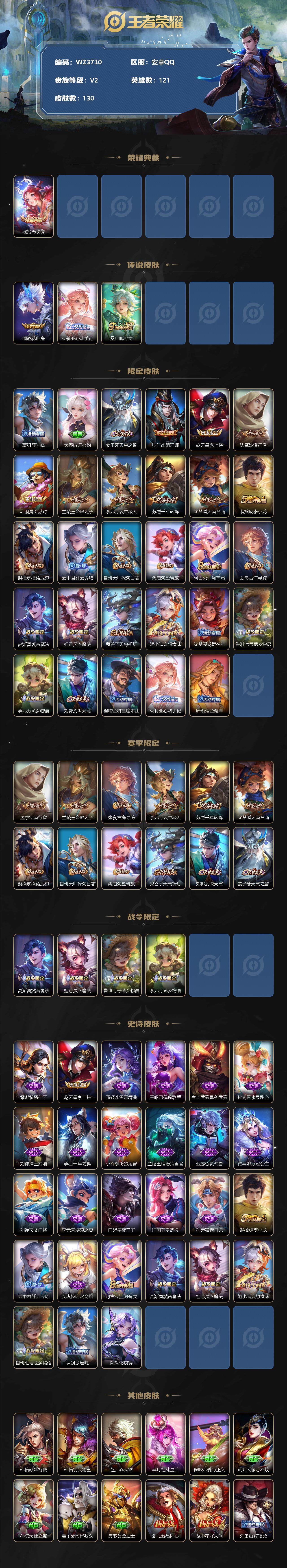 【wz3730】贵族2/皮肤130/典藏1/传说3/史诗26/英雄121/瑶拾光映像/澜逐花归海/朵莉亚心动手记/桑启鸣野蒿/蒙犽顽岩魄/大乔绒语心约/姜子牙天穹之誓/狄仁杰阴阳师/赵云皇家上将/达摩沙漠行僧/项羽海滩派对/兰陵王金庭之子/李元芳云中旅人/苏烈千军破阵/沈梦溪大漠名商/裴擒虎李小龙/裴擒虎擒涛扼浪/云中君纤云弄巧/鲁班大师探海日志/桑启海盐诗旅/阿古朵江河有灵/张良古海寻踪/高渐离燃音魔法/妲己灵卜魔法/鬼谷子天穹祈灯/姬小满妄想食味/沈梦溪龙舞盛年/鲁班七号蔬乡物语/李元芳蔬乡物语/刘邦剑破天穹/程咬金群星魔术团/朵莉亚心动手记/周瑜熔金海岸/达摩沙漠行僧/兰陵王金庭之子/张良古海寻踪/李元芳云中旅人/苏烈千军破阵/沈梦溪大漠名商/裴擒虎擒涛扼浪/鲁班大师探海日志/桑启海盐诗旅/鬼谷子天穹祈灯/刘邦剑破天穹/姜子牙天穹之誓/高渐离燃音魔法/妲己灵卜魔法/鲁班七号蔬乡物语/李元芳蔬乡物语/露娜紫霞仙子/赵云皇家上将/甄姬冰雪圆舞曲/王昭君偶像歌手/宫本武藏鬼剑武藏/孙尚香水果甜心/刘禅绅士熊喵/李白千年之狐/小乔缤纷独角兽/兰陵王暗隐猎兽者/亚瑟心灵战警/雅典娜冰冠公主/刘禅天才门将/李元芳逐浪之夏/白起星夜王子/阿轲节奏热浪/孙策猫狗日记/裴擒虎李小龙/云中君纤云弄巧/安琪拉时之奇旅/阿古朵江河有灵/妲己灵卜魔法/高渐离燃音魔法/姬小满妄想食味/鲁班七号蔬乡物语/蒙犽顽岩魄/阿轲化蝶舞/项羽海滩派对/韩信教廷特使/韩信街头霸王/赵云忍炎影/芈月红桃皇后/程咬金爱与正义/武则天东方不败/孙膑天使之翼/姜子牙时尚教父/典韦黄金武士/张飞五福同心/甄姬花好人间/狄仁杰阴阳师/刘备纽约教父/关羽龙腾万里/老夫子功夫老勺/孙尚香沉稳之力/诸葛亮掌控之力/李白敏锐之力/大乔守护之力/明世隐虹云星官/孙膑归虚梦演/沈梦溪鲨炮海盗猫/哪吒次元突破/刘禅秘密基地/露娜瓷语鉴心/鲁班大师乓乓大师/苏烈千军破阵/达摩沙漠行僧/兰陵王金庭之子/刘禅唤灵魔甲/沈梦溪大漠名商/李元芳云中旅人/桑启海盐诗旅/猪八戒潮玩探月行/裴擒虎擒涛扼浪/鲁班大师探海日志/李元芳妄想特派/张良古海寻踪/后羿完美运算/鬼谷子天穹祈灯/妲己灵卜魔法/海诺时空谍影/廉颇功夫炙烤/沈梦溪龙舞盛年/钟无艳春野之旅/李元芳蔬乡物语/刘邦剑破天穹/程咬金群星魔术团/姜子牙天穹之誓/周瑜熔金海岸/大乔绒语心约/盘古敬我三分/东皇太一噬灭天穹/苍苍林狼骑/太乙真人谧流熔炉/典韦铁骨偃魂/西施雪境奇遇/姜子牙星梦巡礼/明世隐景韶洛都/戈娅玫蓝誓约/刘备浪漫序章/钟馗虚灵犬护/张良灵野札记/阿古朵布丁狗之约/露娜命运加冕/姬小满小满鸭/白起死霸装/甄姬逆浪荇歌/庄周锦麟游梦/露娜绯红之刃/貂蝉异域舞娘/狄仁杰锦衣卫/孙膑未来旅行/孙悟空西部大镖客/周瑜海军大将/后羿精灵王/兰陵王隐刃/李白范海辛/李元芳特种部队/夏侯惇战争骑士/马可波罗激情绿茵/苍维京掠夺者/百里守约绝影神呛/梦奇美梦成真/明世隐占星师/公孙离花间舞/杨玉环霓裳曲/元歌午夜歌剧院/沈梦溪棒球奇才/猪八戒年年有余/瑶森/曜归虚梦演/马超幸存者/鲁班大师归虚梦演/澜孤猎/云缨赤焰之缨/金蝉前尘/暃碧珀绯影/桑启画中游