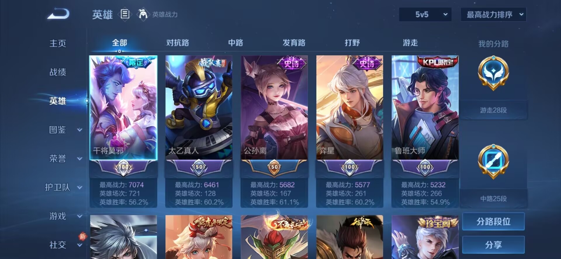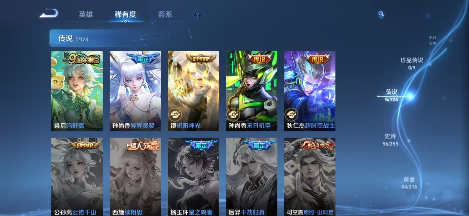 v7 5传说 124英雄 186皮肤 可修改实名 传说皮:末日机甲-孙尚香绿蚂蚱炽阳神光超时空战士-狄仁杰 珍宝阁皮:优雅恋人玩趣恶龙 限定皮:鸣野蒿异界灵契白毛香寅虎·展翼孙膑年限神威电光马子遇见飞天高山流水五谷丰年冰锋战神天狼运算者游园惊梦冰霜恋舞曲匿