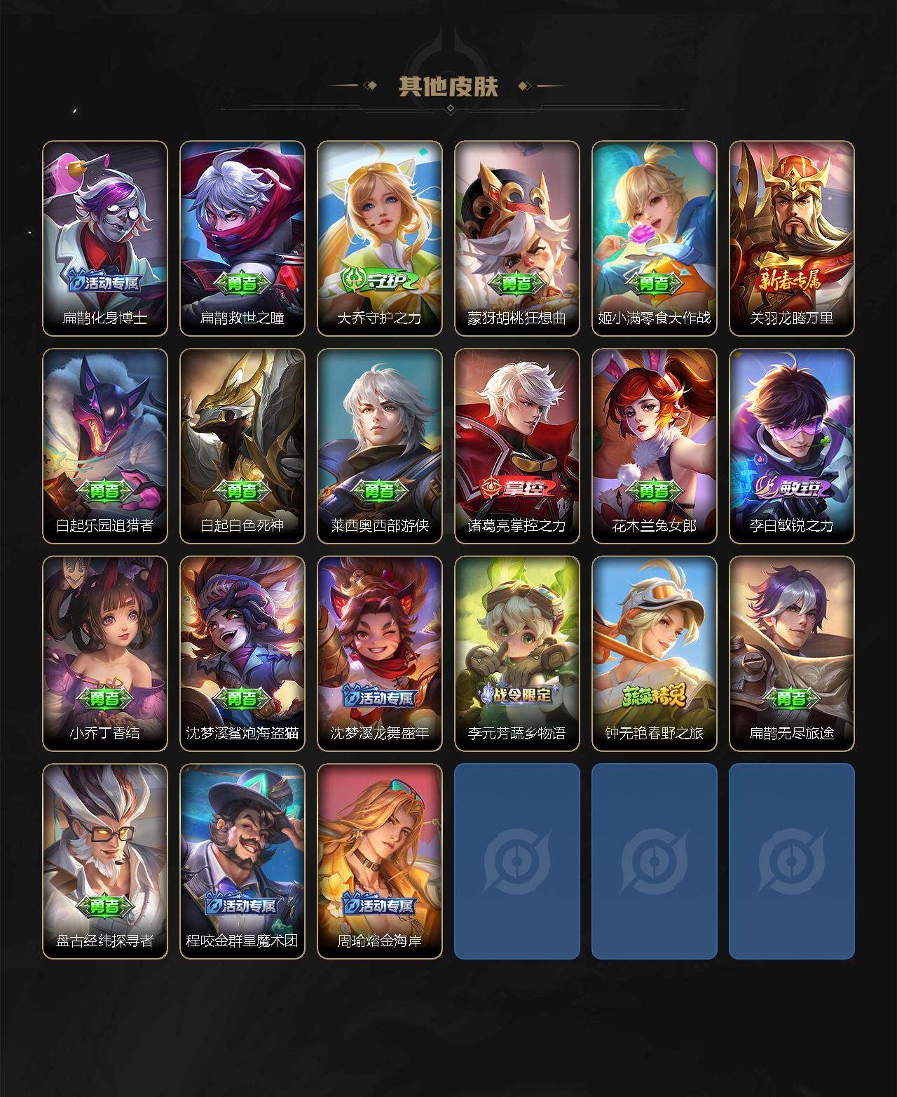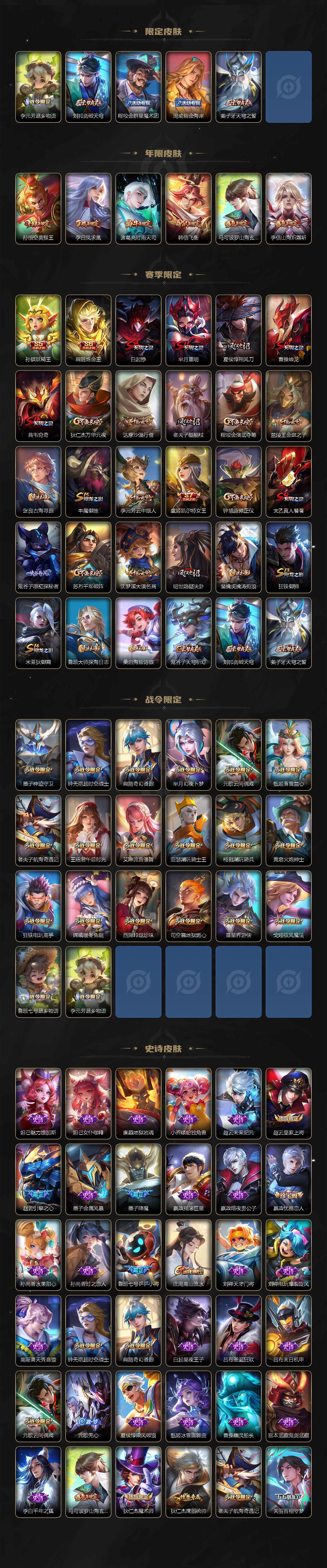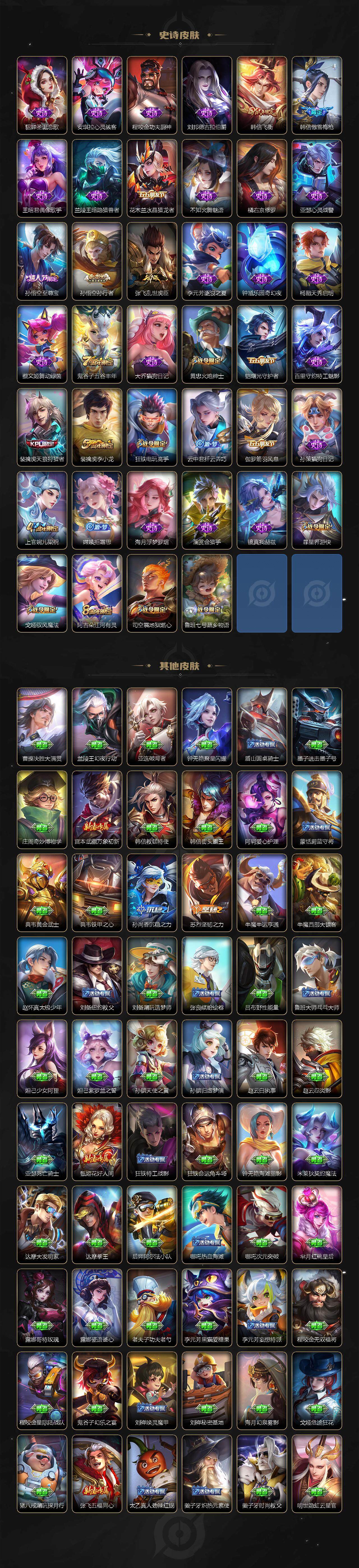 308皮,v8 【王者荣耀】无双0 典藏0 传说18 史诗49 英雄122 皮肤308 贵族8级 贵族等级:贵族8级__传说皮肤:鸣野蒿|无双飞将|绛天战甲|启明星使|地狱之眼|地狱火|久胜战神|猫影幻舞|一念神魔|云鹰飞将|冠军飞将|鹤羽星尊|齐天大圣|凤求凰|怒海麟威|时雨天司|山海·炽霜斩|幻光神呛__稀有限定:至尊宝|引擎之心|飞衡|乒乒小将|孙行者|傲雪梅呛|李小龙|梁祝|山海·玄木吟|拒霜思|大漠名商|地狱燃心|电玩高手|高山流水|古海寻踪|海滩派对|海盐诗旅|航海奇遇记|幻夜卜梦|皇家上将|火炮绅士|剑破天穹|江河有灵|降魔|金庭之子|镜-真我赫兹|凯尔特女王|炼金王|美猴王|魔术师|奇幻香踪|千军破阵|擒涛扼浪|穷奇|驱傩正仪|沙漠行僧|朔风刀|探海日志|饕餮|醍醐杖|天狼狩猎者|天穹祈灯|玩趣恶龙|万华元夜|无心|五谷丰年|午后时光|纤云弄巧|星界游侠|演武夺筹|妖精王|疑决卦|阴阳师|优雅恋人|驭风魔法|御旌|御狮|云间偶戏|暗夜贵公子|暗隐猎兽者|缤纷独角兽|冰雪圆舞曲|乘风破浪|大乔-猫狗日记|德古拉伯爵|地狱岩魂|电玩·爆裂旋风|浮梦罗烟|功夫厨神|鬼剑武藏|箭羽风息|金属风暴|乐园奇幻夜|李元芳-蔬乡物语|吕布-末日机甲|魅力维加斯|魅语|女仆咖啡|偶像歌手|赏金猎手|圣诞狂欢|圣诞恋歌|鲁班七号-蔬乡物语|水果甜心|水晶猎龙者|孙策-猫狗日记|天才门将|天秀·启明|天秀·音浪|赵云-未来纪元|星夜王子|摇滚巨星|幽灵船长|钟无艳-超时空战士|逐浪之夏|噬灭天穹|敬我三分|天穹之誓|修罗|曙光守护者|心灵战警|千年之狐|关羽-百相守梦|孙尚香-时之恋人|舞动绿茵|特工魅影|心灵骇客|谧流熔炉|万物之道|御霄|狰|烛龙|原初探秘者|重明|云中旅人|玲珑珍味|流音漫舞|暖冬·兔眠|墨子-神迹守卫|落雪兰心__王者段位:最强王者__优质皮肤:暗都幽影|功夫炙烤|暖冬絮语|幻夜行动|聚星闪耀|潮玩探月行|瓷语鉴心|秘密基地|次元突破|鲨炮海盗猫|野性能量|丁香结|奇妙博物学|虹云星官|守护之力|坚韧之力|幻乐之宴|功夫老勺|海滩丽影|黑猫爱糖果|阿尔法小队|兔女郎|死亡骑士|黄金武士|少女阿狸|天使之翼|红桃皇后|忍·炎影|爱心护理|街头霸王|教廷特使|时空谍影|决胜大满贯|破局者|零食大作战|西部游侠|太极少年|乐园追猎者|牛运亨通|幻泉雾影|潮玩造梦师|危途狂花|胡桃狂想曲|契约魔法|紫罗兰之誓|铁甲之心|进击墨子号|拳王|救世之瞳|白色死神|程咬金-星际陆战队|白执事|大发明家|哥特玫瑰|西施-雪境奇遇|星梦巡礼|缤纷绘卷|掌控之力|雾都夜雨|铁骨偃魂|纽约教父|龙腾万里|乱世虎臣|经纬探寻者|敏锐之力|牛魔-西部大镖客|热血海滩|龙舞盛年|乓乓大师|五福同心|盾山-圆桌骑士|唤灵魔甲|沉稳之力|程咬金-群星魔术团|化身博士|花好人间|熔金海岸|春野之旅|潮玩骑士王|无尽旅途|万象初新|潮玩骑兵|苍林狼骑|蔚蓝守将|劲辣红锅|特工战影|炽热元素使|妄想特派|无双福将