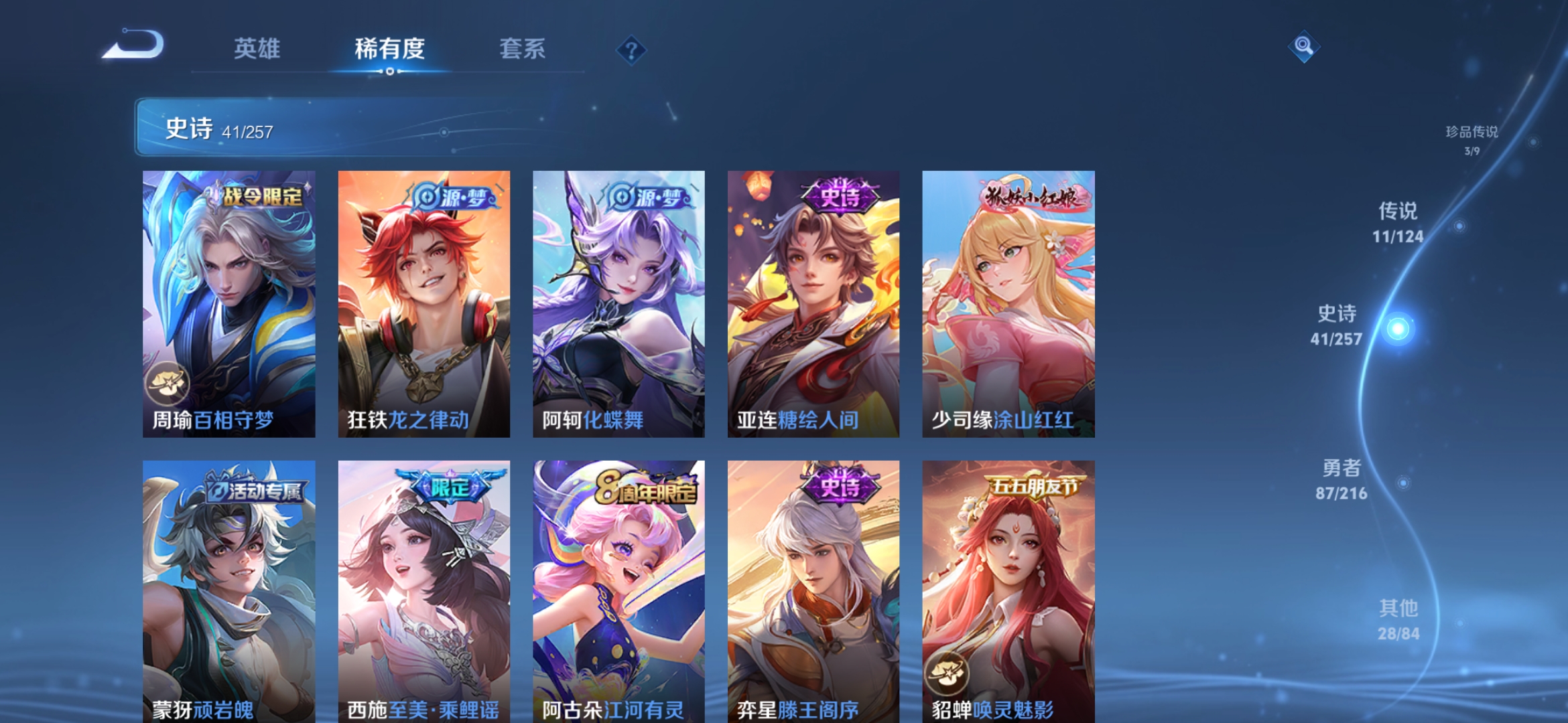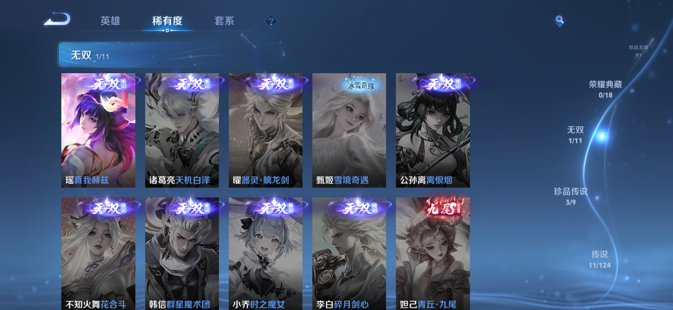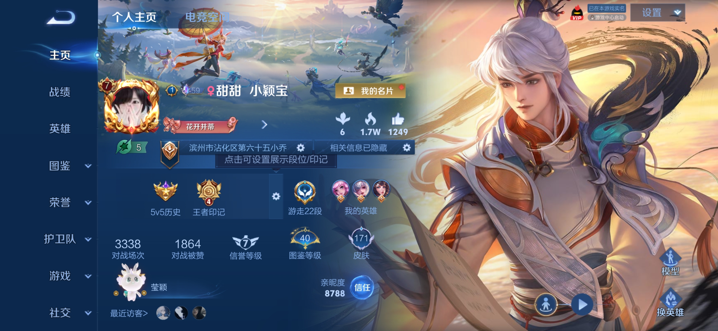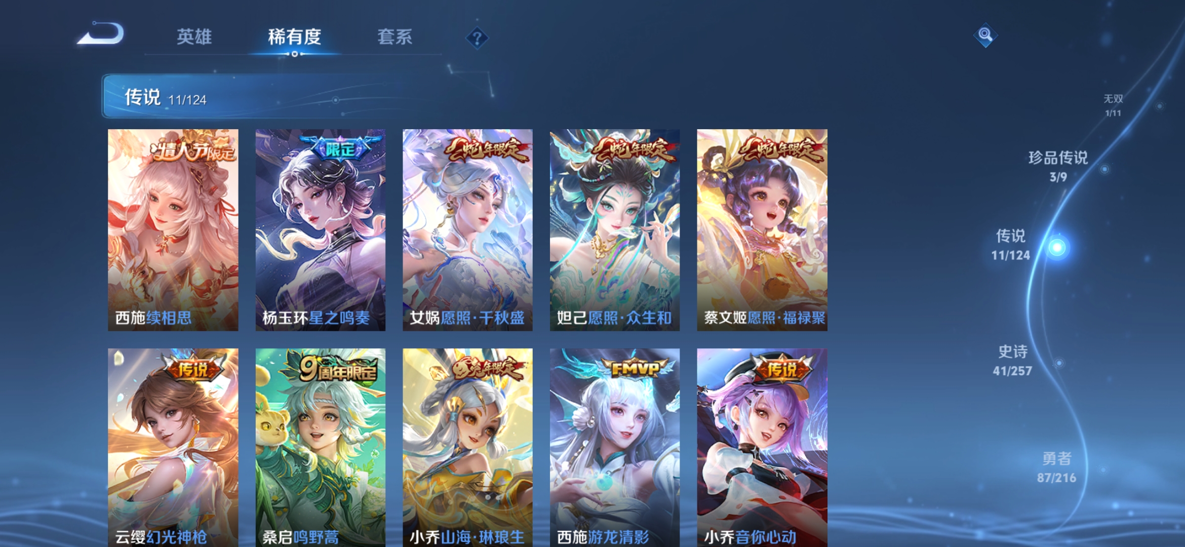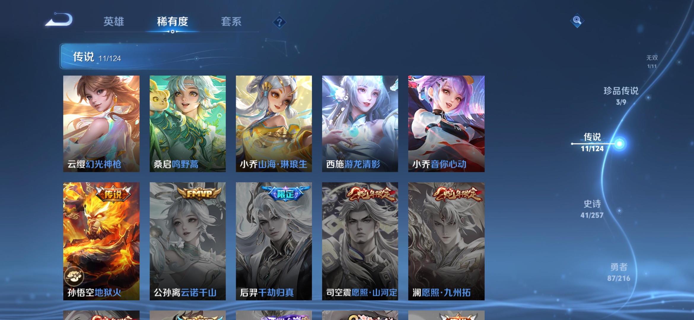 [10305596]实名: 可修改 贵族等级: v7 英雄数: 123 皮肤数: 171 无双皮: 真我赫兹瑶 珍品传说: 怪盗基德器灵·落星盏大耳狗之梦 传说皮: 地狱火音你心动-小乔游龙清影山海·琳琅生幻光神呛星之鸣奏续相思 限定皮: 梁祝至美·乘鲤谣鸣野蒿愿照·千秋盛愿照·众生和愿照·福禄聚【由于赛季三个月更新一次,段位皆有上号为准,对段位有要求这谨慎下单!!!】