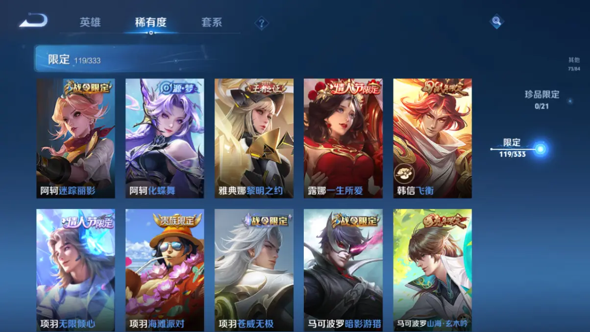lc614121 【万站阿离大桥金标小乔虞姬45中路44段发育路v8-2水晶1星元23传说10按键355皮肤数量4金标】 营地id369169524 英雄数量125 皮肤数量355 传说皮肤数量23 水晶数量2 【安卓qq】 【可二次实名】 【v8】 当前段位1 荣耀典藏2 内测皮肤3 星元皮肤1 传说皮肤23 当前段位:星耀; 荣耀典藏:花木兰_九霄神辉,孙尚香_杀手不太冷; 内测皮肤:姬小满_妄想食味,艾琳_女武神,嬴政_优雅恋人; 星元皮肤:孙尚香_未来机甲; 传说皮肤:不知火舞_绯月行,云缨_幻光神呛,澜_愿照九州拓,女娲_愿照干秋盛,桑启_鸣野蒿,铠_冥王哈迪斯,宫本武藏_地狱之眼,孙尚香_末日机甲,公孙离_记忆之芯,马超_无双飞将,裴擒虎_寅虎赤拳,澜_逐花归海,露娜_霜月吟,虞姬_无限倾心,项羽_无限倾心,小乔_山海琳琅生,曜_山海苍雷引,虞姬_启明星使,镜_炽阳神光,百里玄策_白虎志,李信_一念神魔,貂蝉_猫影幻舞,张良_黄金白羊座;