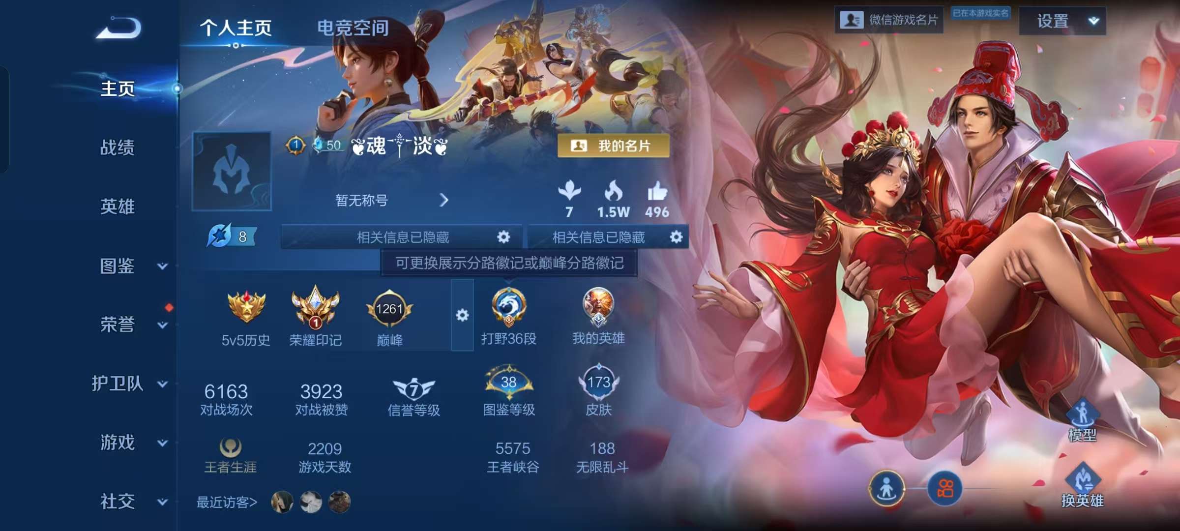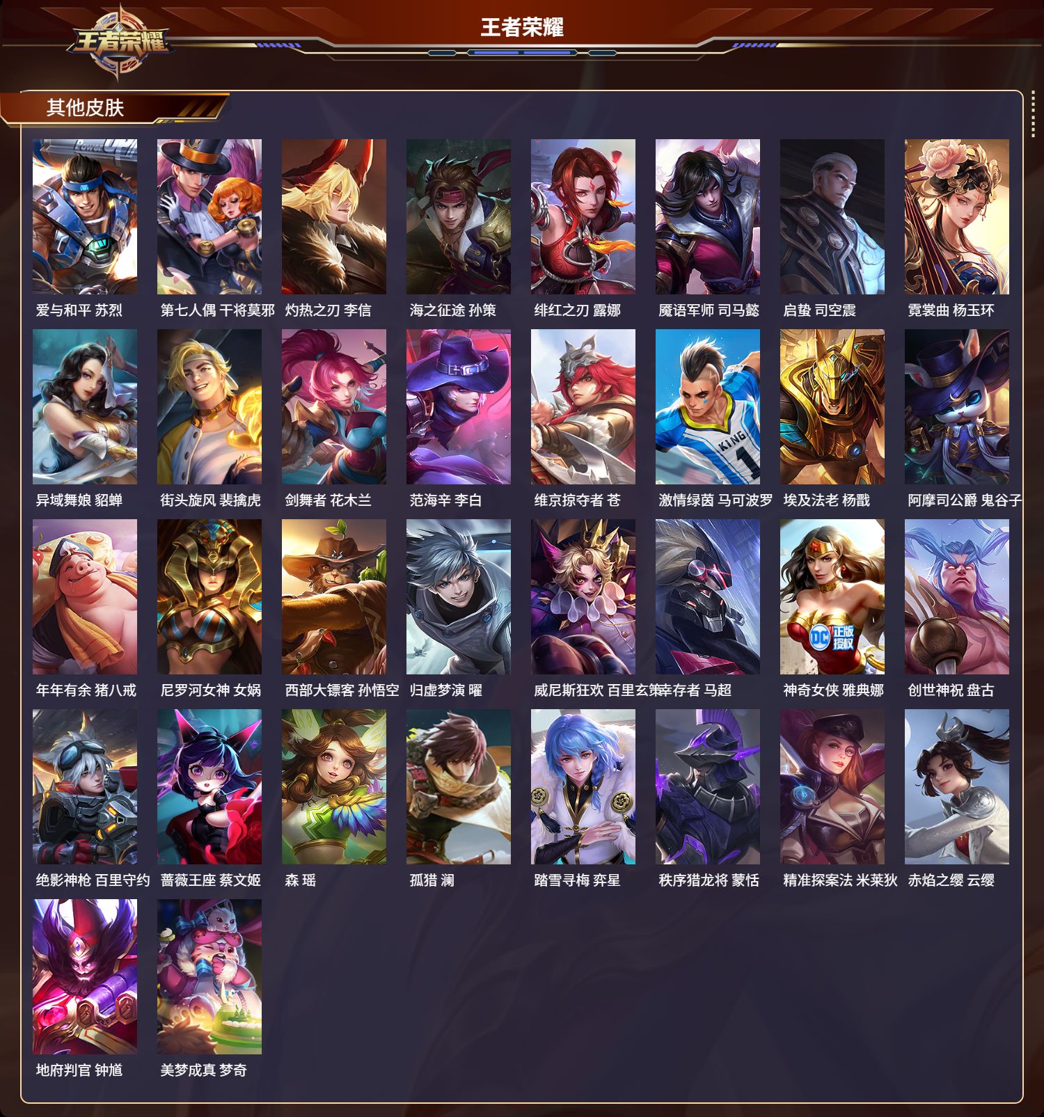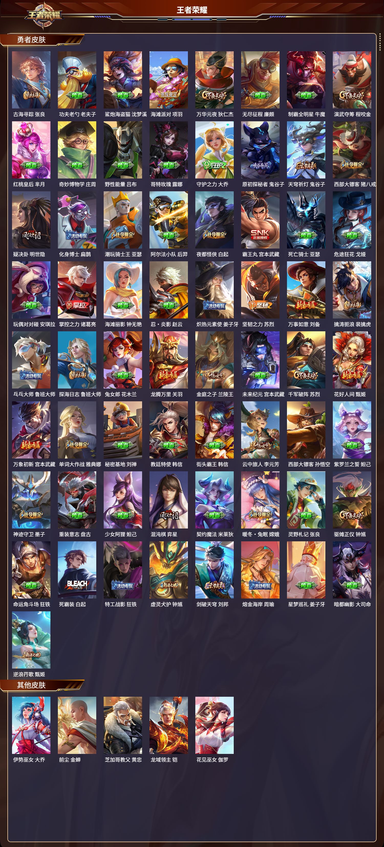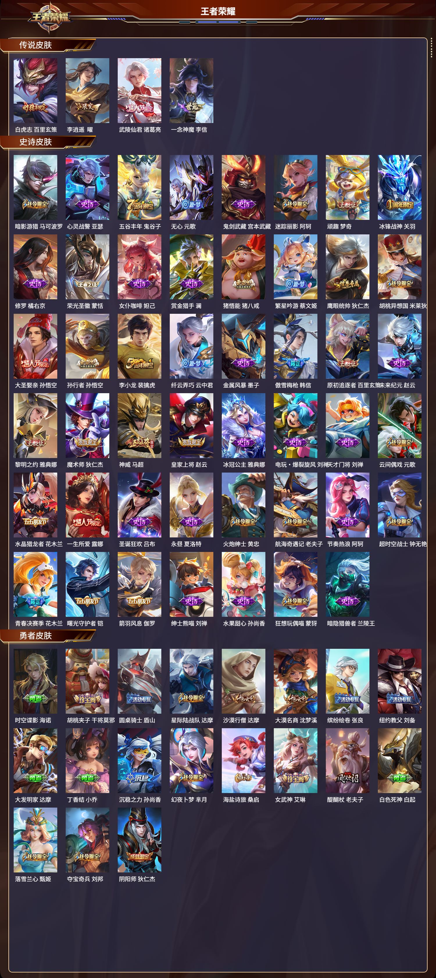 hswz11164 安卓微信/最强王者/173皮肤/123英雄/0典藏/0珍品无双/0无双/0珍品传说/4传说/47史诗/7稀有英雄