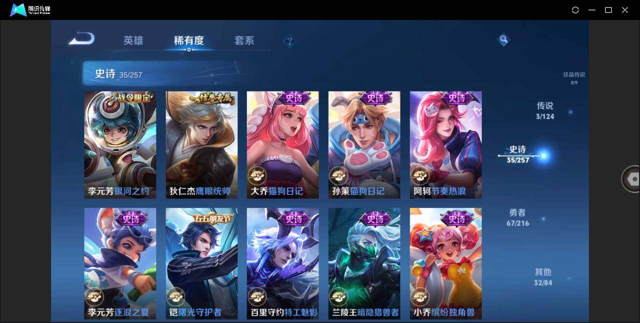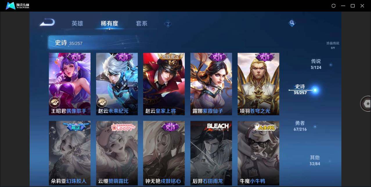贵族6/皮肤137/传说3/史诗35/英雄120/高渐离玩趣恶龙/曜李 /桑启鸣野蒿/澜愿照九州拓/狄仁杰阴阳师/赵云皇家上将/高渐离玩趣恶龙/元歌云间偶戏/夏侯惇朔风刀/狄仁杰魔术师/狄仁杰万华元夜/项羽海滩派对/老夫子醍醐杖/程咬金演武夺筹/亚瑟潮玩骑士王/李元芳银河之约/钟馗驱傩正仪/鬼谷子原初探秘者/弈星混沌棋/沈梦溪星空之诺/明世隐疑决卦/裴擒虎李小龙/曜李 /鬼谷子天穹祈灯/夏侯惇朔风刀/狄仁杰万华元夜/老夫子醍醐杖/程咬金演武夺筹/钟馗驱傩正仪/鬼谷子原初探秘者/弈星混沌棋/明世隐疑决卦/鬼谷子天穹祈灯/元歌云间偶戏/亚瑟潮玩骑士王/李元芳银河之约/沈梦溪星空之诺/项羽苍穹之光/露娜紫霞仙子/赵云皇家上将/赵云未来纪元/王昭君偶像歌手/狄仁杰魔术师/宫本武藏鬼剑武藏/孙尚香水果甜心/妲己魅力维加斯/妲己女仆咖啡/曹操幽灵船长/李白千年之狐/张飞乱世虎臣/刘邦德古拉伯爵/夏侯惇乘风破浪/小乔缤纷独角兽/兰陵王暗隐猎兽者/百里守约特工魅影/铠曙光守护者/李元芳逐浪之夏/阿轲节奏热浪/孙策猫狗日记/大乔猫狗日记/狄仁杰鹰眼统帅/李元芳银河之约/裴擒虎李小龙/元歌云间偶戏/杨戬天秀启明/孙膑茶境仙/赵怀真器灵浮梦炉/阿轲化蝶舞/刘禅鸭鸭历险记/狂铁龙之律动/周瑜百相守梦/黄忠百相守梦/项羽海滩派对/韩信教廷特使/韩信街头霸王/露娜哥特玫瑰/阿轲爱心护理/达摩大发明家/赵云白执事/赵云忍炎影/芈月红桃皇后/白起白色死神/扁鹊化身博士/庄周鲤鱼之梦/宫本武藏未来纪元/安琪拉玩偶对对碰/孙膑天使之翼/姜子牙时尚教父/妲己少女阿狸/典韦黄金武士/亚瑟死亡骑士/达摩拳王/花木兰兔女郎/刘备万事如意/宫本武藏万象初新/狄仁杰阴阳师/刘备纽约教父/钟无艳海滩丽影/苏烈坚韧之力/大乔守护之力/小乔丁香结/高渐离玩趣恶龙/夏侯惇朔风刀/沈梦溪星空之诺/弈星混沌棋/鲁班七号黑桃队长/明世隐疑决卦/老夫子醍醐杖/鬼谷子原初探秘者/狄仁杰万华元夜/亚瑟潮玩骑士王/刘禅秘密基地/露娜瓷语鉴心/程咬金演武夺筹/张良缤纷绘卷/钟馗驱傩正仪/鲁班大师乓乓大师/马可波罗潮玩牛仔/后羿完美运算/鬼谷子天穹祈灯/廉颇功夫炙烤/苍苍林狼骑/太乙真人谧流熔炉/马超访茗客/西施雪境奇遇/姜子牙星梦巡礼/东皇太一金福满堂/明世隐景韶洛都/戈娅玫蓝誓约/钟馗虚灵犬护/沈梦溪鸭鸭历险记/露娜命运加冕/雅典娜潮玩士官长/姬小满小满鸭/白起死霸装/甄姬逆浪荇歌/孙策百相守梦/庄周锦麟游梦/鲁班七号木偶奇遇记/露娜绯红之刃/貂蝉异域舞娘/曹操超能战警/孙悟空西部大镖客/刘禅英喵野望/李白范海辛/钟馗地府判官/李元芳特种部队/刘邦圣殿之光/诸葛亮星航指挥官/黄忠芝加哥教父/干将莫邪第七人偶/百里守约绝影神呛/明世隐占星师/公孙离花间舞/裴擒虎街头旋风/米莱狄精准探案法/元歌午夜歌剧院/孙策海之征途/司马懿魇语军师/伽罗花见巫女/沈梦溪棒球奇才/李信灼热之刃/猪八戒年年有余/盘古创世神祝/瑶森/云中君荷鲁斯之眼/曜归虚梦演/蒙犽归虚梦演/蒙恬秩序猎龙将/澜孤猎