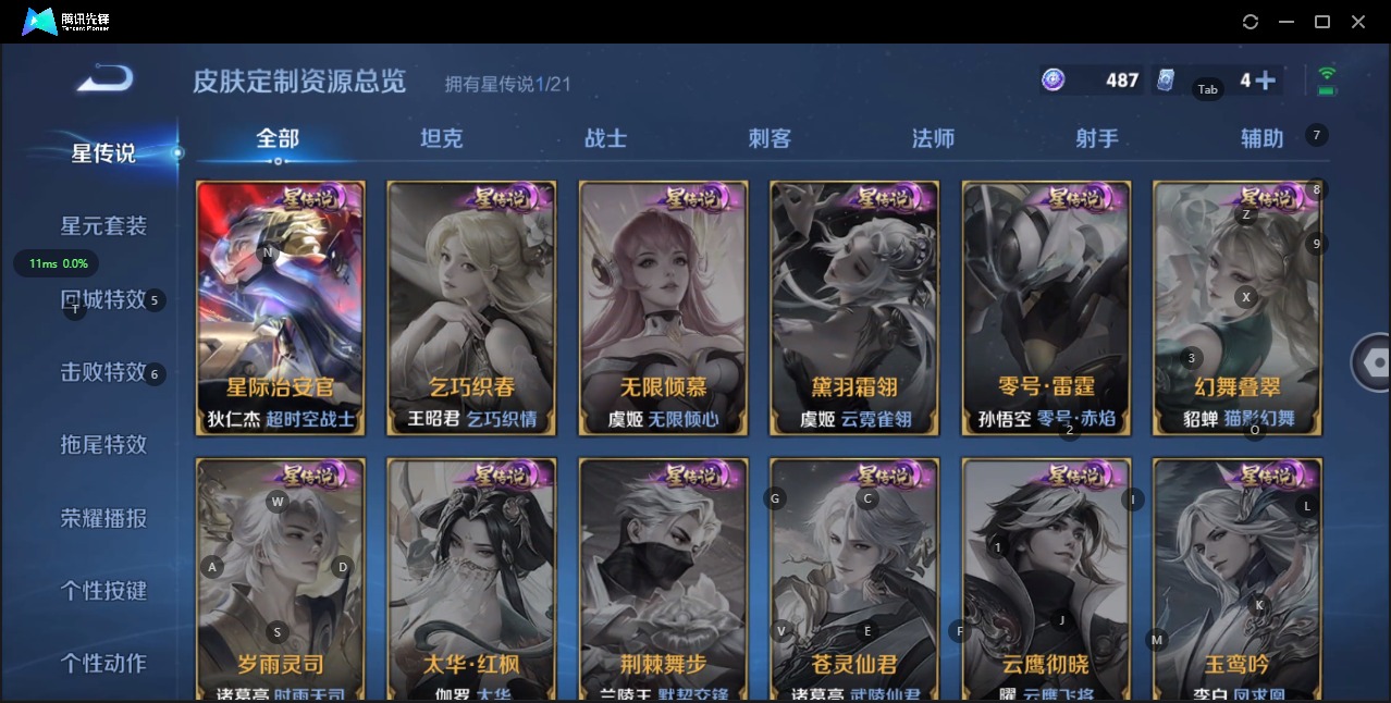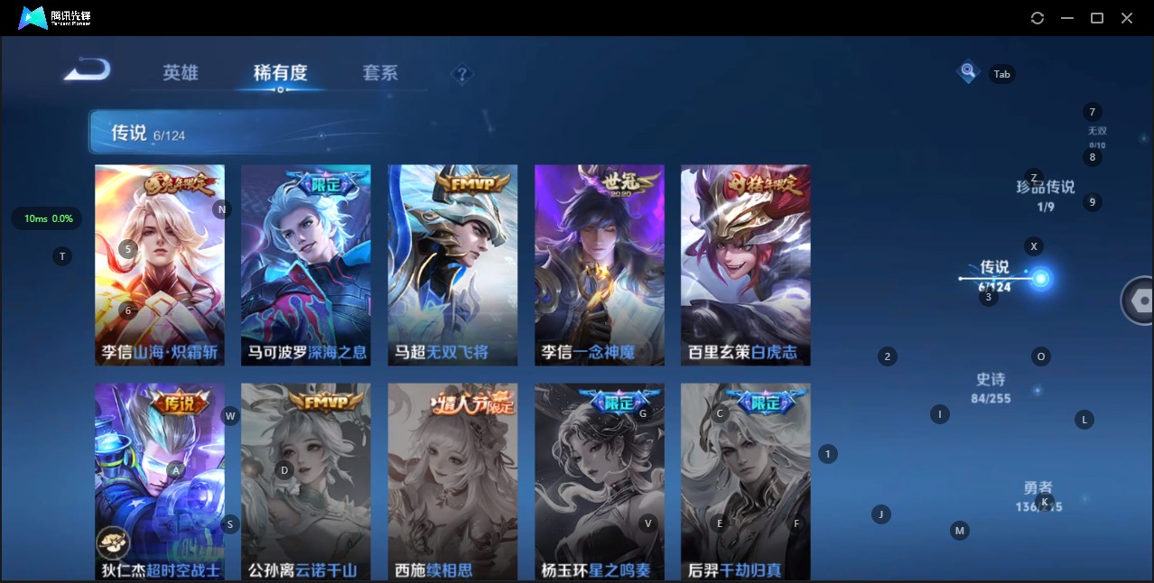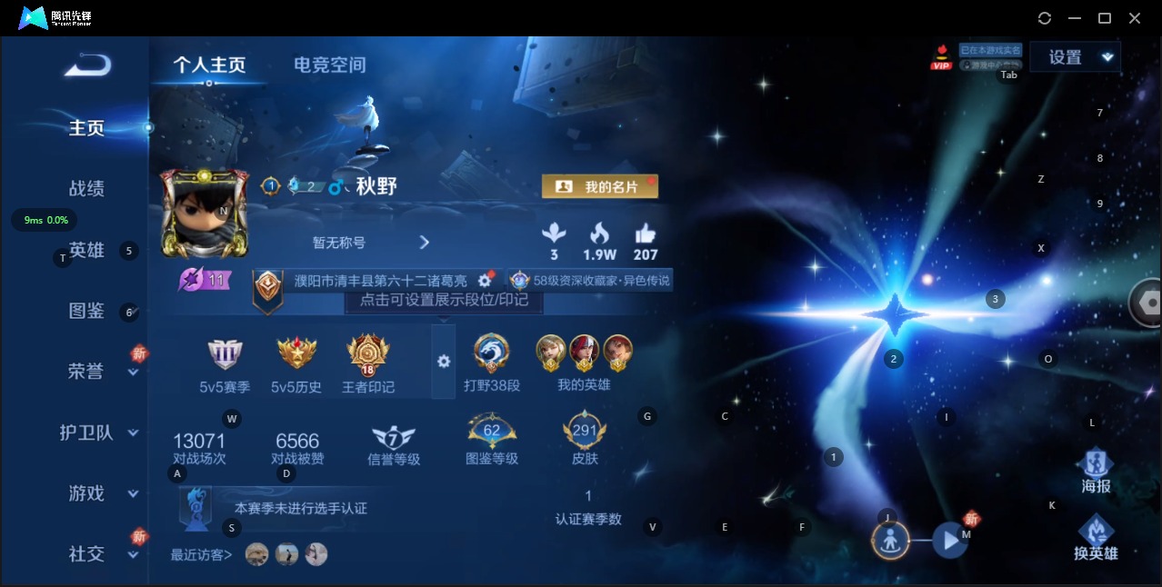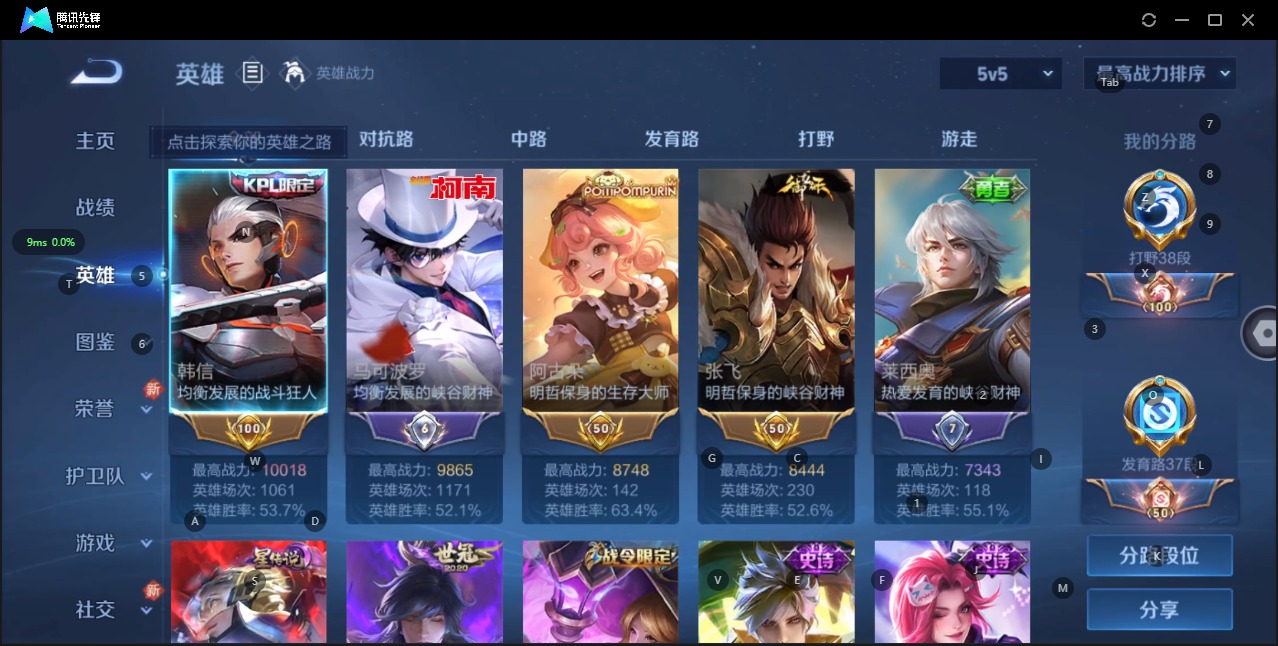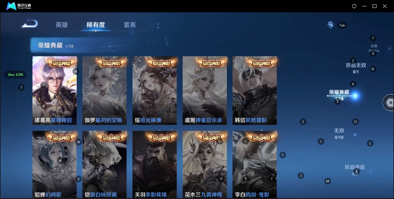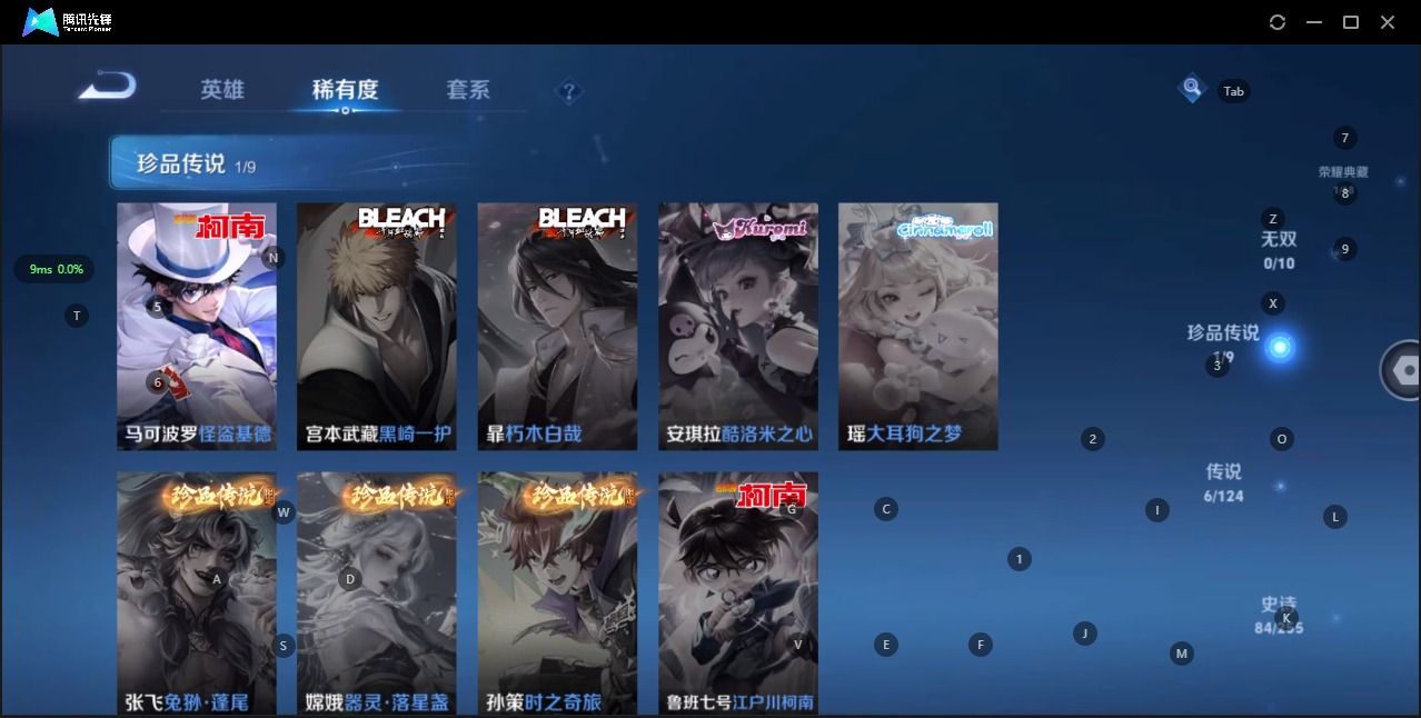 v7 1典藏 1珍品传说 6传说 123英雄 291皮肤 可修改实名 荣耀水晶:星域神启倪克斯贼亮 珍品传说:怪盗基德 传说皮:山海·炽霜斩李信年限一念神魔无双飞将超时空战士-狄仁杰 珍宝阁皮:蔷薇恋人女武神 限定皮:白虎志电光耗子高山流水五谷丰年天狼运算者梁祝天狼溯光