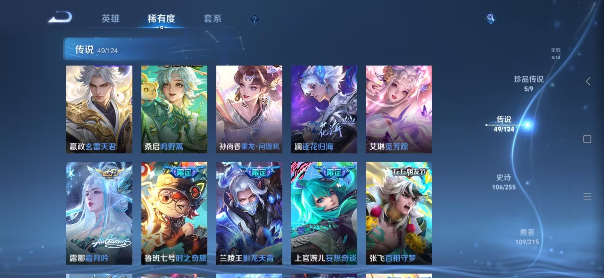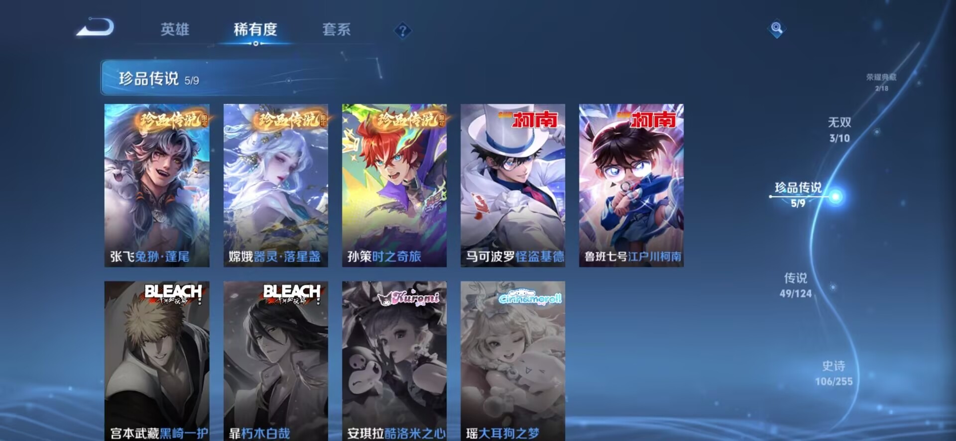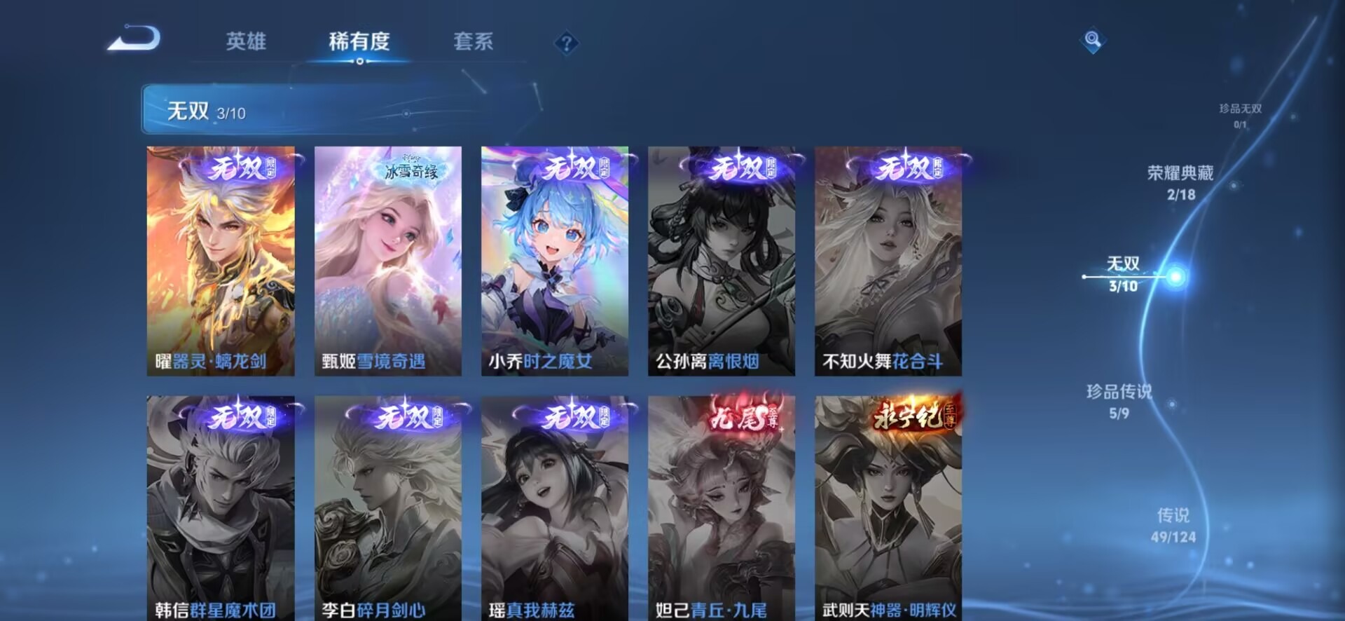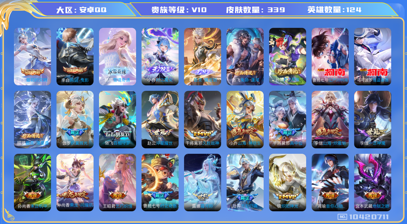 [10420711]v10 2典藏 3无双 5珍品传说 49传说 124英雄 339皮肤 可修改实名 荣耀水晶:最初的交响伽罗典藏鸣剑·曳影 无双皮:雪境奇遇-甄姬器灵·螭龙剑小乔时之魔女小乔无双 珍品传说:江户川柯南怪盗基德时之奇旅-孙策器灵·落星盏兔狲·蓬尾 传说皮:乘龙·问璇玑孙尚香年限祥瑞亨通千劫归真星之鸣奏幻光神呛玄雷天君山海·炽霜斩李信年限山海·琳琅生小乔年限地狱火地狱之眼末日机甲-孙尚香绿蚂蚱一念神魔淬星耀世久胜战神云鹰飞将小将军炽阳神光无双飞将音你心动-周瑜乞巧织情超时空战士-狄仁杰山海·苍雷引电光曜子炽翼辉光娃娃菜牛角包燃星之曲画中仙浮生妄记忆之芯机甲兔百相守梦张飞妄想奇谈鲁班七号-时之奇旅霜月吟澜逐花归海艾琳觅芳踪 珍宝阁皮:蔷薇恋人女武神 限定皮:愿照·九州拓澜年限愿照·福禄聚蔡文姬年限愿照·岁时盈虞姬年限愿照·山河定司空震年限愿照·众生和妲己年限愿照·千秋盛女娲年限陌上桑鸣野蒿至尊宝傲雪梅呛前尘镜绯月行神威电光马子飞衡韩信年限山海·碧波行瑶年限瑞麟志木兰年限影龙天霄遇见飞天高山流水诗剑行齐天大圣五谷丰年冰锋战神梁祝天狼狩猎者逐梦之翼逐梦之星烈魂逐梦之音祈雪灵祝雪兔子李小龙逐梦之影引擎之心冰霜恋舞曲匿光追影者寅虎·心曲虎婆寅虎·赤拳老虎年限启示之音枫霜尽神器·万象笔山海·玄木吟马可年限冰霜神祇 史诗皮:百相守梦-百里守约星界战将茶境仙飞车小橘子苍鳞隐世器灵·浮梦炉糖绘人间战舞者谪仙醉月埋骨钱海诺心动手记撼地雄心超元猎域乘龙·聚宝船安琪拉年限破空之剑紫霞仙子电玩小子小书包白龙吟特工魅影千年之狐永昼百相守梦刘备真我赫兹镜末日机甲-莱西奥匿光侦查者江河有灵百解令蒙犽蒙恬荣光圣徽偶像歌手银翎春语晚萤魅语龙骑士小龙虾末日机甲-吕布猫狗日记-孙策修罗女仆咖啡摇滚巨星水果甜心绅士熊喵天才门将星夜王子心灵骇客暗隐猎兽者幽灵船长鬼剑武藏心灵战警乐园奇幻夜地狱岩魂纤云弄巧缤纷独角兽乘风破浪逐浪之夏月团