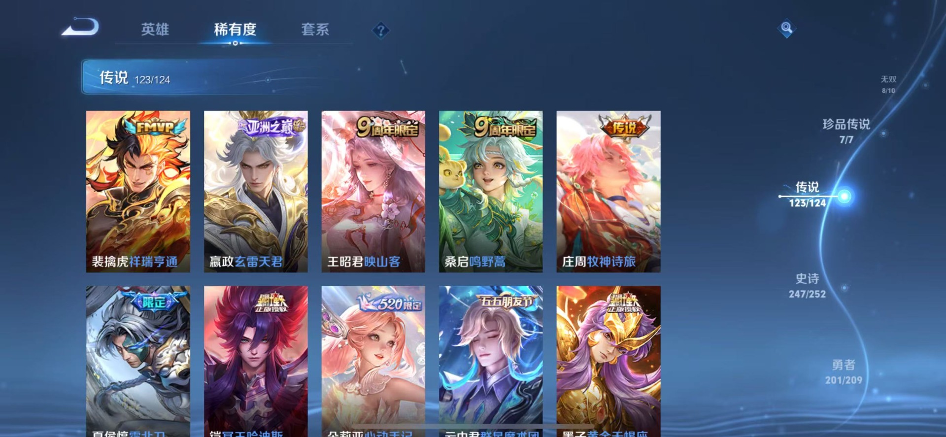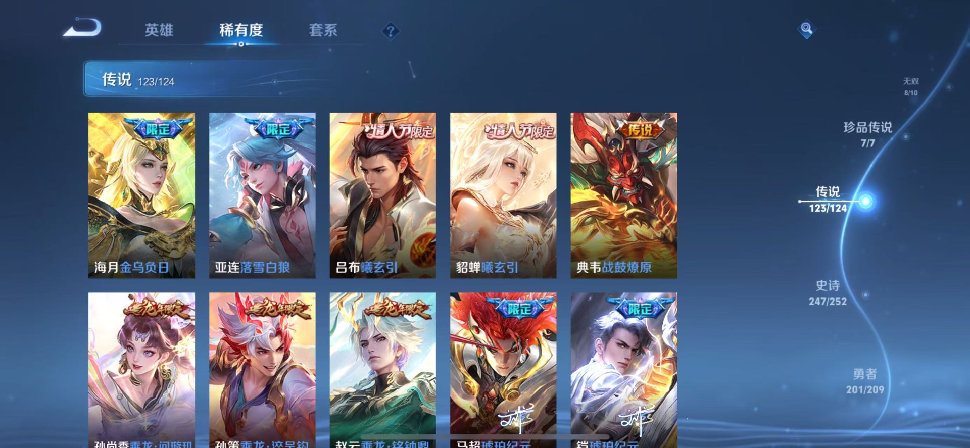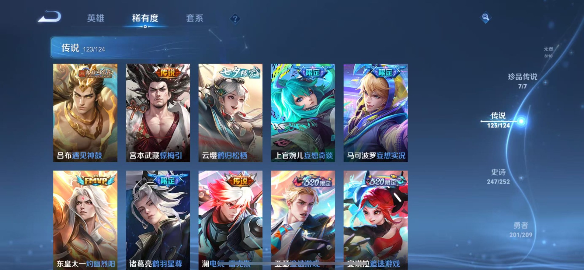 无双贵族 15典藏 1珍品无双 8无双 7珍品传说 123传说 125英雄 686皮肤 典藏英雄武则天 可修改实名 鲁班小国标 荣耀水晶:最初的交响伽罗典藏神鉴启示录鸣剑·曳影九霄神辉木兰典藏弑呛猎影韩信典藏赤影疾锋全息碎影猴子典藏杀手不太冷天鹅之梦小乔典藏无限